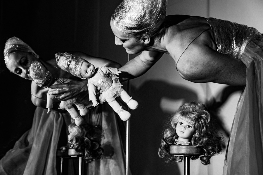 As an artist, Lauren Cremer has always gravitated towards vibrancy & bursts of colour. In this shoot, the goal from the start was to strip away her usual style, using an abstract concept to experiment with and to have a visual focus primarily on lighting & composition in black & white. Some of the references for this shoot include Aegidius Sadeler, The Poughkeepsie Tapes, & Le Théâtre Du Mouvement. To achieve this outcome, the team cast a contortionist & a ballet dancer that would be able to pose in the ways necessitated by the concept. A KALTBLUT exclusive.