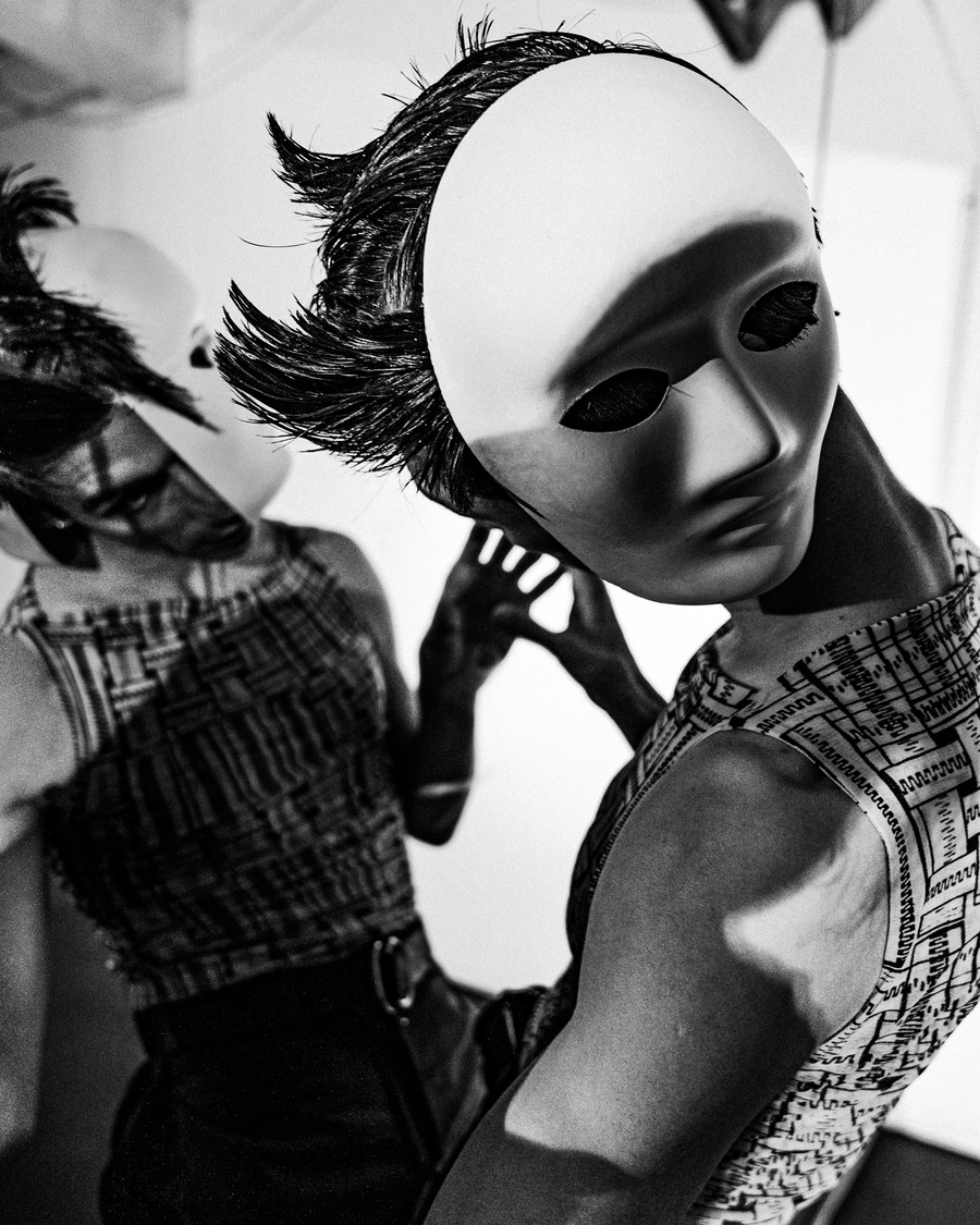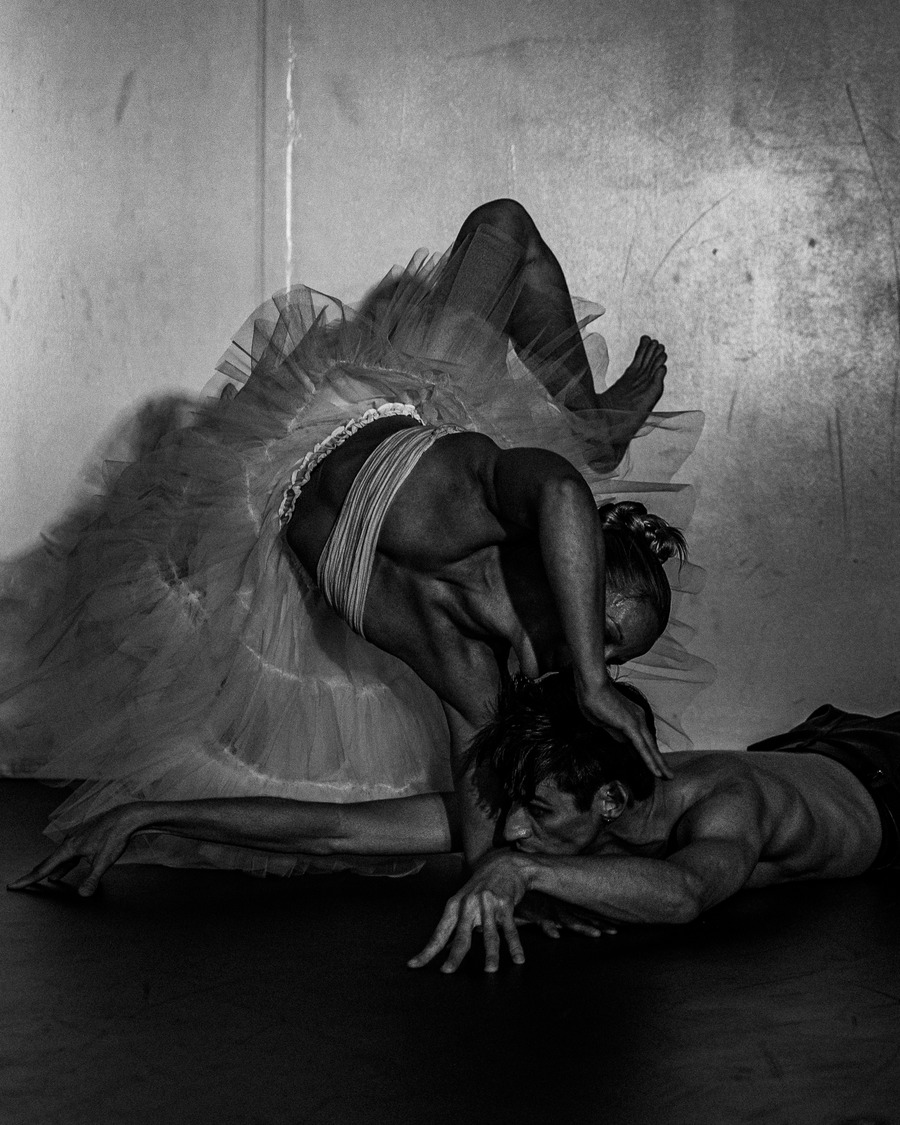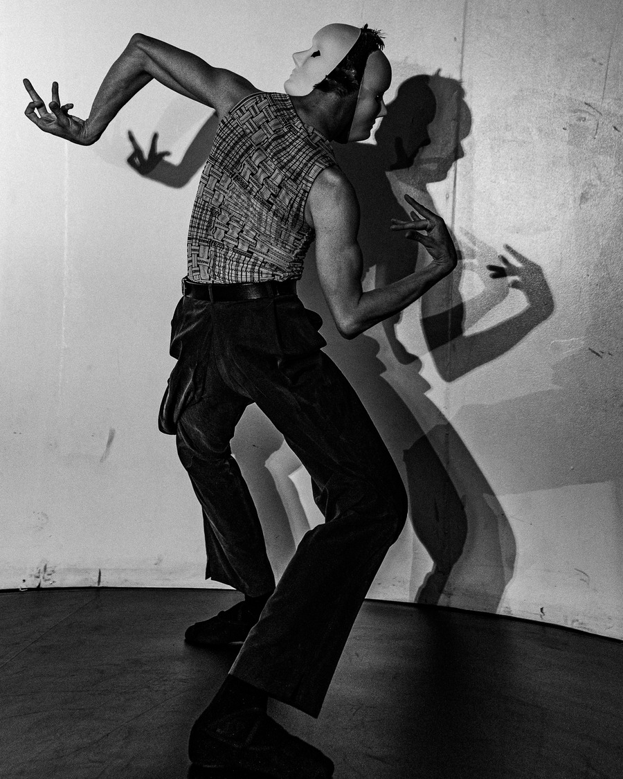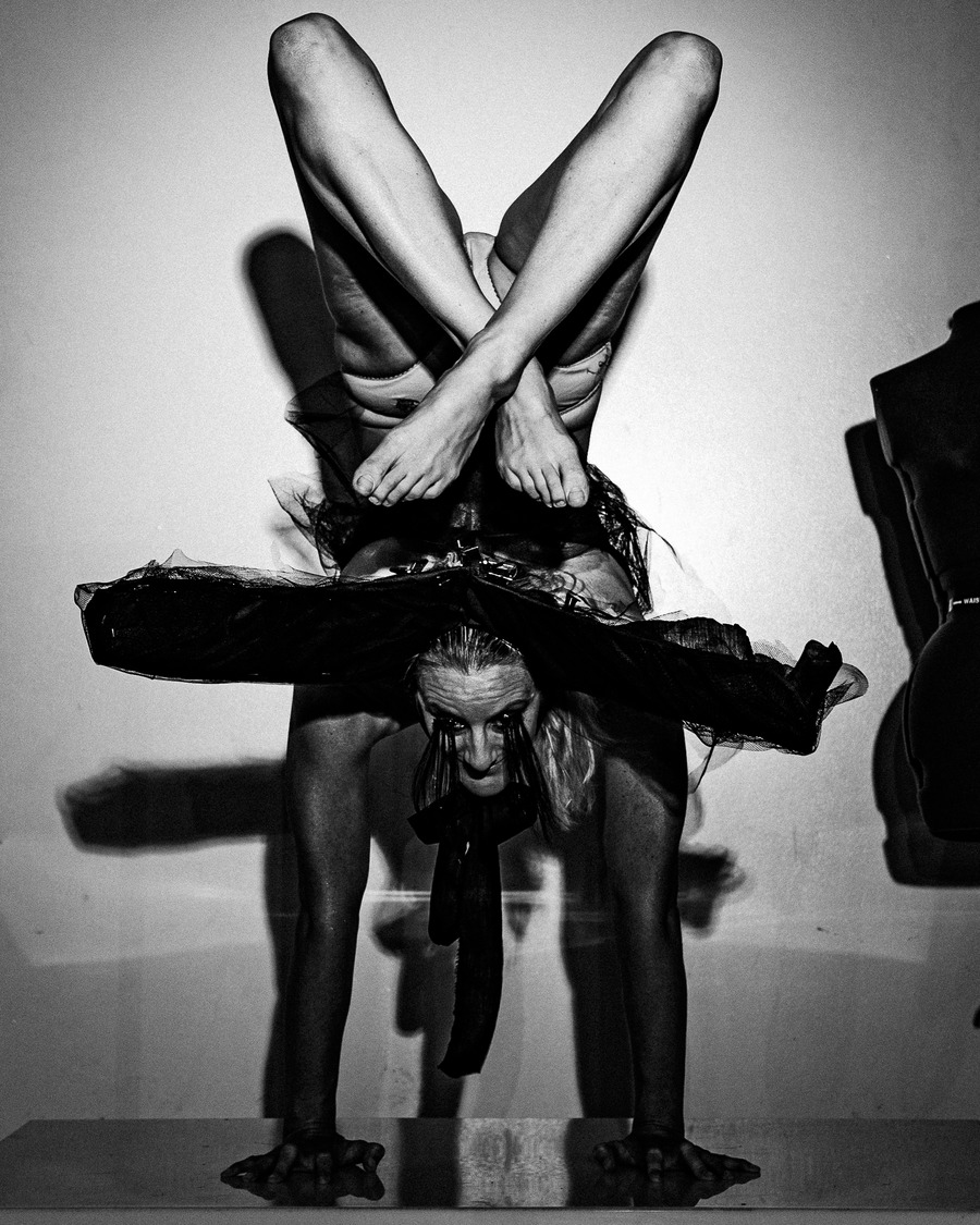 As an artist, Lauren Cremer has always gravitated towards vibrancy & bursts of colour. In this shoot, the goal from the start was to strip away her usual style, using an abstract concept to experiment with and to have a visual focus primarily on lighting & composition in black & white. Some of the references for this shoot include Aegidius Sadeler, The Poughkeepsie Tapes, & Le Théâtre Du Mouvement. To achieve this outcome, the team cast a contortionist & a ballet dancer that would be able to pose in the ways necessitated by the concept. A KALTBLUT exclusive.