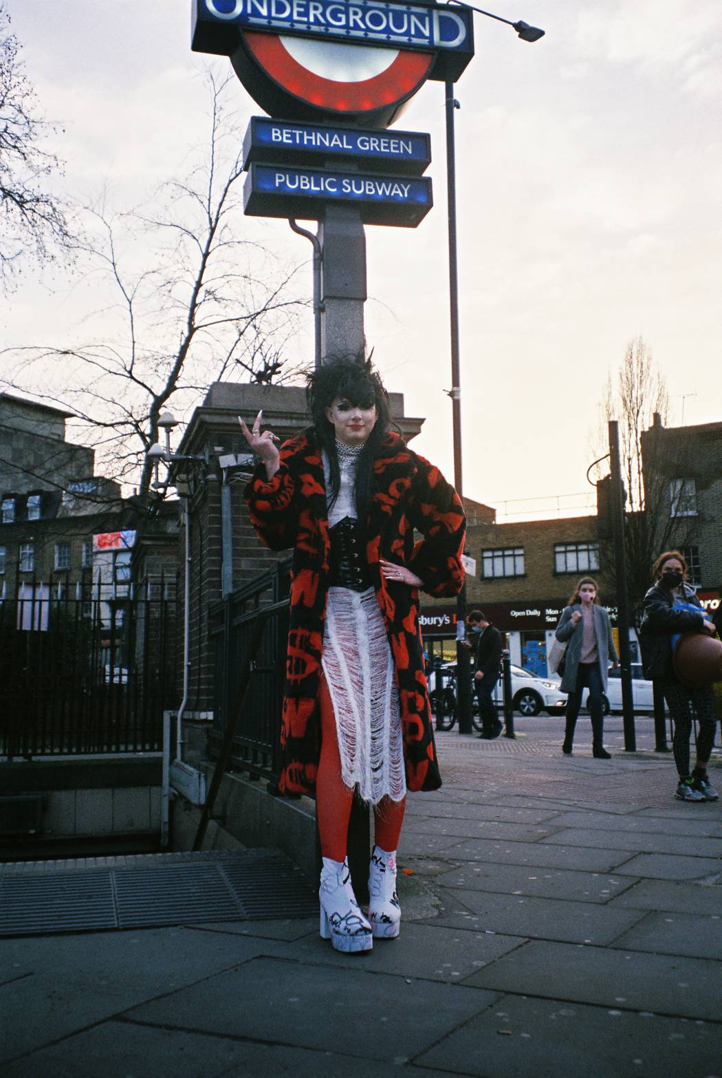 “Strong, confident, and loving herself embracing her story, body, and experience in order to create something unique and flourish. She is moving with ease in her own personal space, changing outfits and trying to decide which one is expressing her mood and style. Which one is a clearer depiction of her persona. Through the styling of Ally Lux and the designs of Cygan, Derek Lawlor, Natacha Marro, Oliver F. Jones, Eden, Keshia via Fashioncrossover London, and Aleksandra Lalic via I. Dea Pr; Chai is going through a fashion journey in which she incorporates her style through fashion. And thus, we are approaching the fashion dialogue which evolves during the film. A dialogue between the drag queen scene and fashion trends/shapes and inspiration. In a world full of young creatives, unique personalities and hard-working individuals the drag queen scene is not credited as they should as much for their inspiration, as well as for the technical contribution in the fashion industry.”