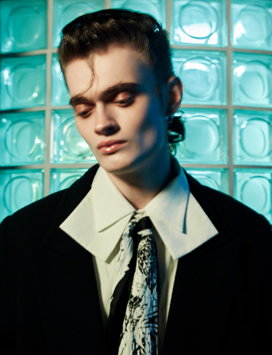 Photographer Samuel Stephenson captured Harry Kitcher for a KALTBLUT exclusive editorial. Styled by Aurelie Mason-Perez. Make up by Bobana Parojcic. Hair by Pål Berdahl. Brands are Alexander McQueen, Fendi, Beau Scarlett-Pitt, Clementine Hocking, Ben Sherman, Rada Rada, Wood Wood, Toga, Grenson, Preen By Thornton Bregazzi.