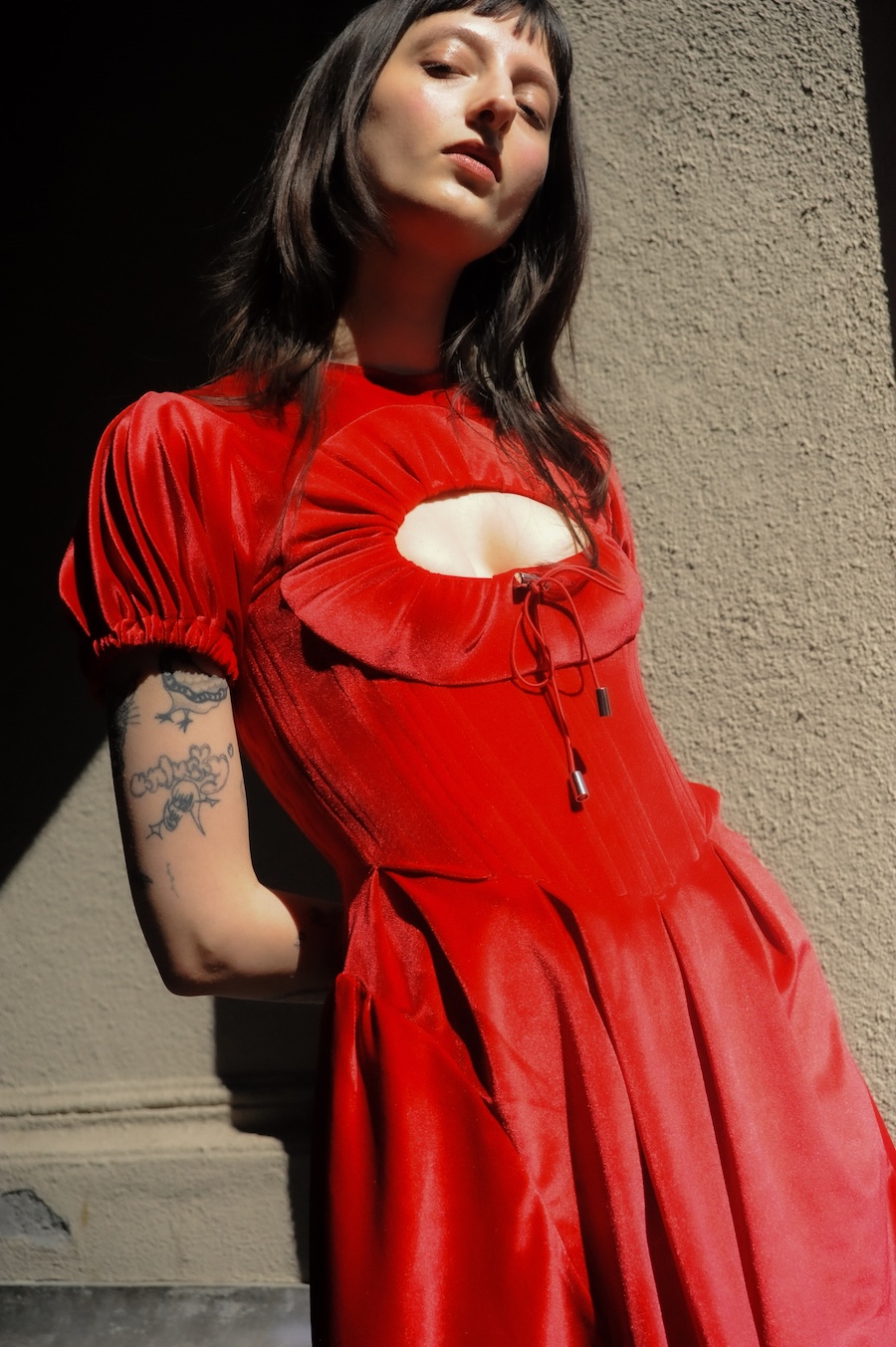 There’s an emotional intensity and subversive elegance in her designs that I felt compelled to capture. Her designs speak of histories undone, of power reshaped, and this aligned effortlessly with my desire to capture what lives in the in-between: rawness, identity, and rebellion wrapped in quiet grace.”