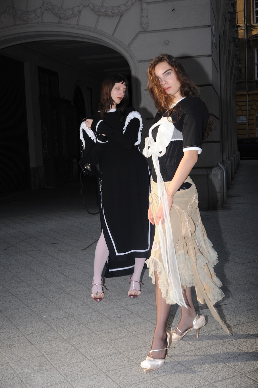 A KALTBLUT exclusive. Photography by Kayra Atasoy. Models are Karol Müller and Borbely Maria. Styling and all fashion by Fabian Kis Juhasz. Produced by İrem Aysin Deprem. “I was drawn to collaborate with Fabian because her work resonates deeply with the themes I explore in my photography, identity, transformation, and the tension between power and vulnerability. Her distorted yet delicate approach to femininity, rooted in both horror and historical reference, aligns beautifully with my raw visual language.