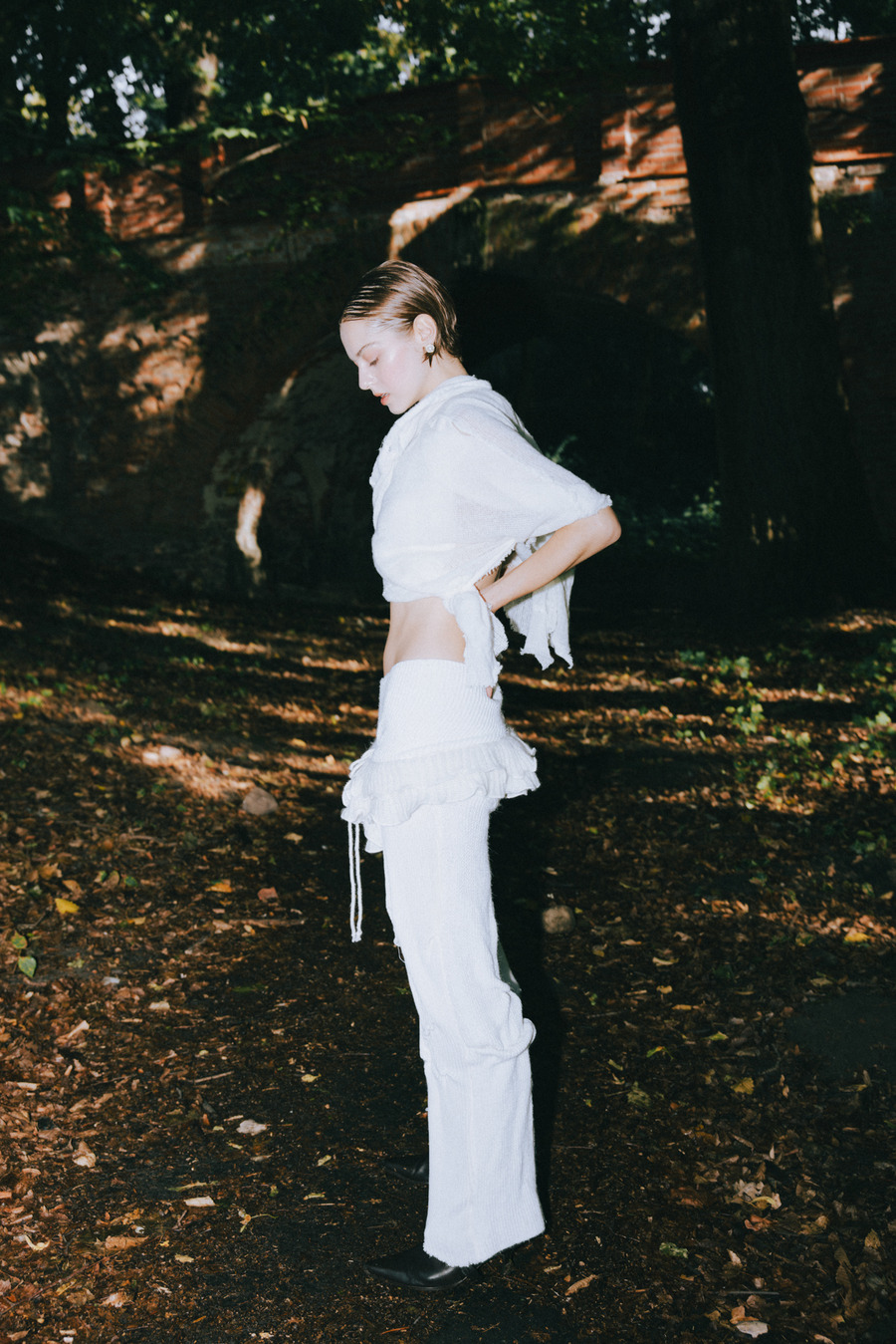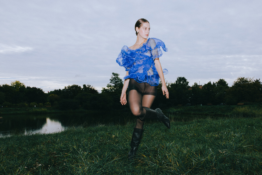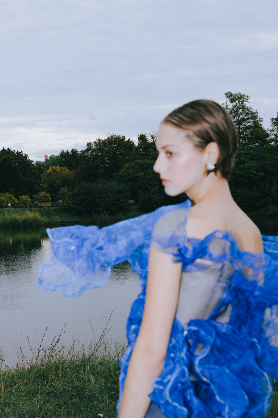 A KALTBLUT exclusive. Photography by Zuzanna Czaplak. The stylist and costume designer is Maryia Tratsiakova. The model is Aniela. “I am a fashion designer from Warsaw (Poland), who works in both commercial and artistic fields. The “Afterimage” project results from collaborating with young designer Maryia Tratsiakova, a student at the Academy of Fine Arts, fashion department. This collaboration resulted in a photo shoot in Arcadia Park. The delicate and ethereal character of the styling was partially broken by strong flash, which gave the photos a unique atmosphere.” *Maryia Tratsiakova