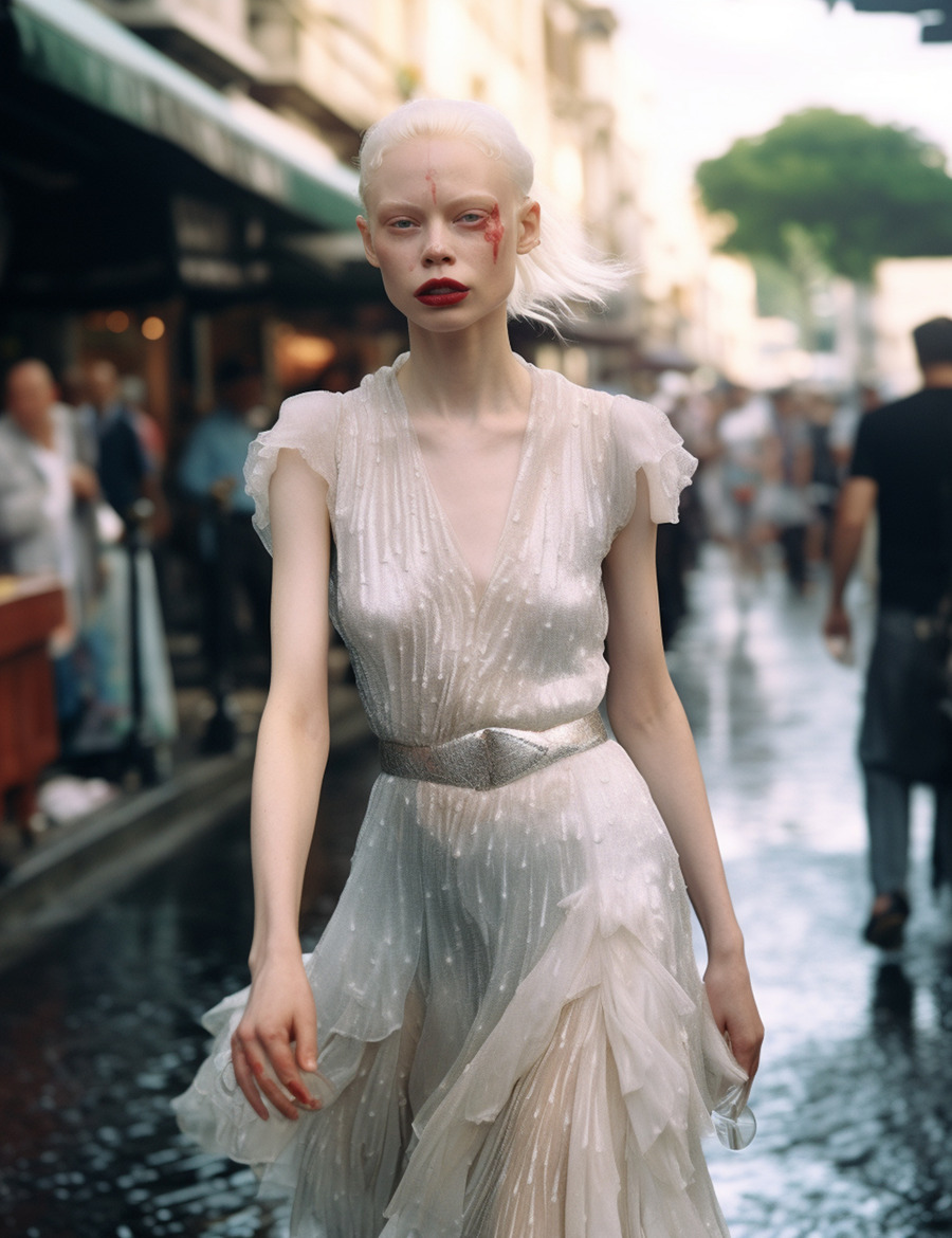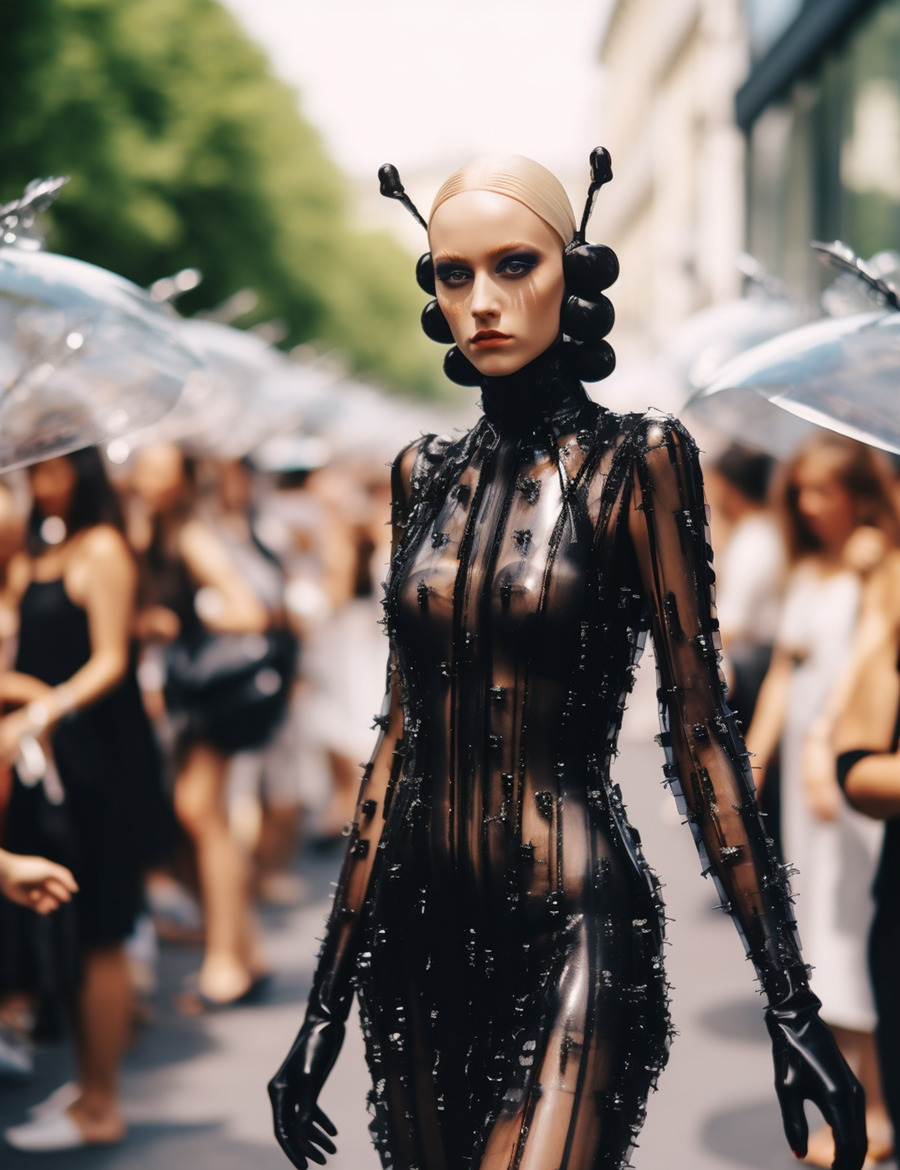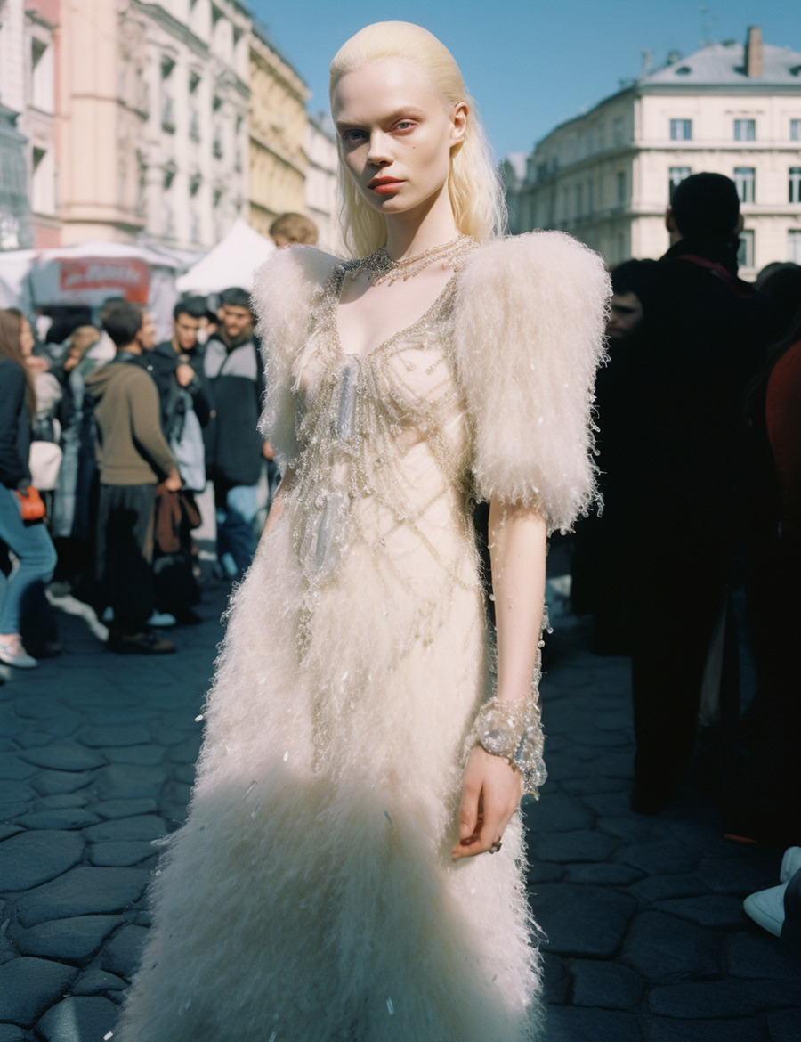 PARIS HAUTE COUTURE WEEK-STREE STYLE – AI (Midjourney) generated content by Yulia Reznikov. The moments were “captured” with Midjourney on the streets of Paris during Haute Couture Week 2023. The fashion is inspired by labels like Dries Van Noten, Balenciaga, Alexander McQueen, Dior, Yves Saint Laurent and Margiela. A KALTBLUT exclusive.