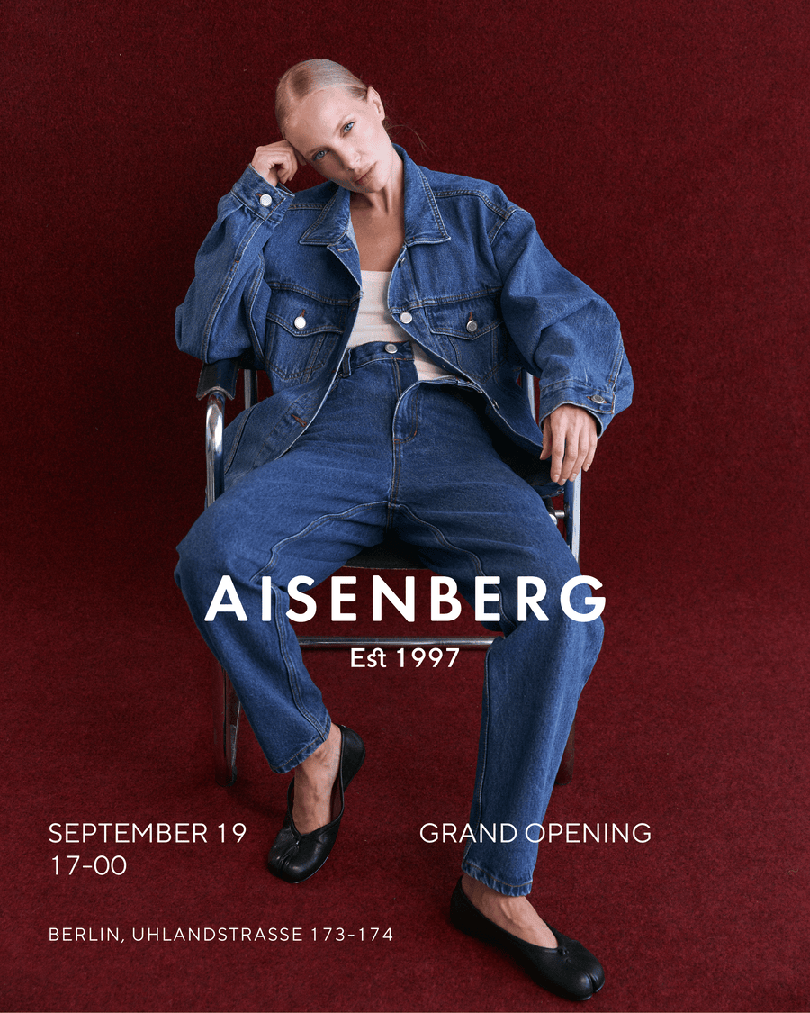 #Savethedate Berlin: The Ukrainian brand AISENBERG is opening its first denim store in Berlin. This fall, the Ukrainian denim brand AISENBERG from Odesa is set to open its first flagship store in Europe. Since the onset of the full-scale invasion, the brand’s visionary designer, Tanya Fedoseeva, relocated to Berlin with her children and has been dynamically working between Ukraine and Germany for the past three years, curating new AISENBERG collections.