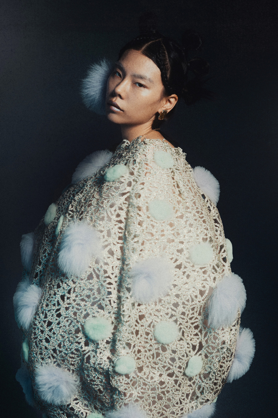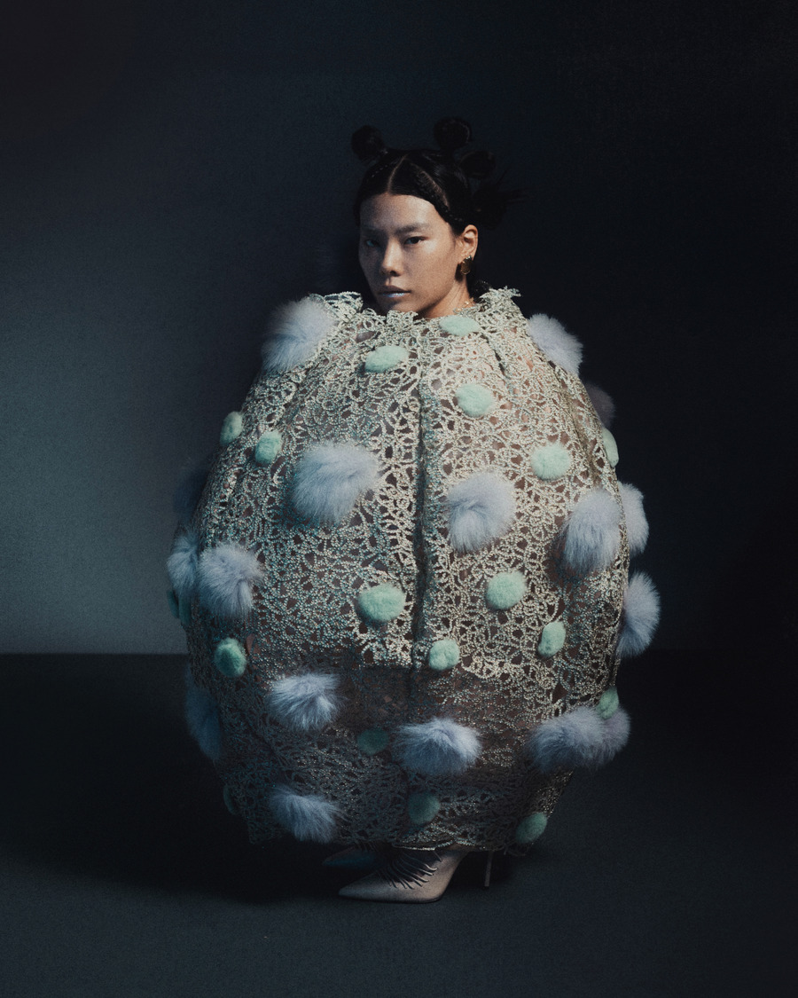 A KALTBLUT exclusive. Photography by Dalila Slimani. Creative Direction and Fashion by Giada Paluzzi DESIGNERAI. The model is Poppy Ping Ping. Styling by Chiara Campanozzi. Make-up by Nicole Dallanoce. Hair Styling by Giorgia Giommoni. Set Location is Istituto Italiano di Fotografia (IFF). Fashion Brands used are DESIGNERAI, Aneis Jewerly, Objectini, Studio Umido, Giuseppe Magnano, Chiara Campanozzi Archive, and Paolo Frezza Archive. Thanks to SAGA FURS, the official sponsor of the ÄITI project. AI designer is Daniel Salvi.