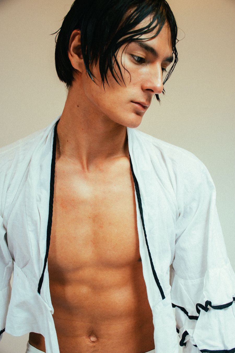 A KALTBLUT exclusive by Simon Karlsson. A photographer based in Stockholm, educated in both modern art and photography, that likes to explore a playful narrative that goes beyond the expected. Raised in a very conservative village, he likes to take elements of several worlds into creation. Model is Neo Tedds. Make up by Jacqueline Roos.