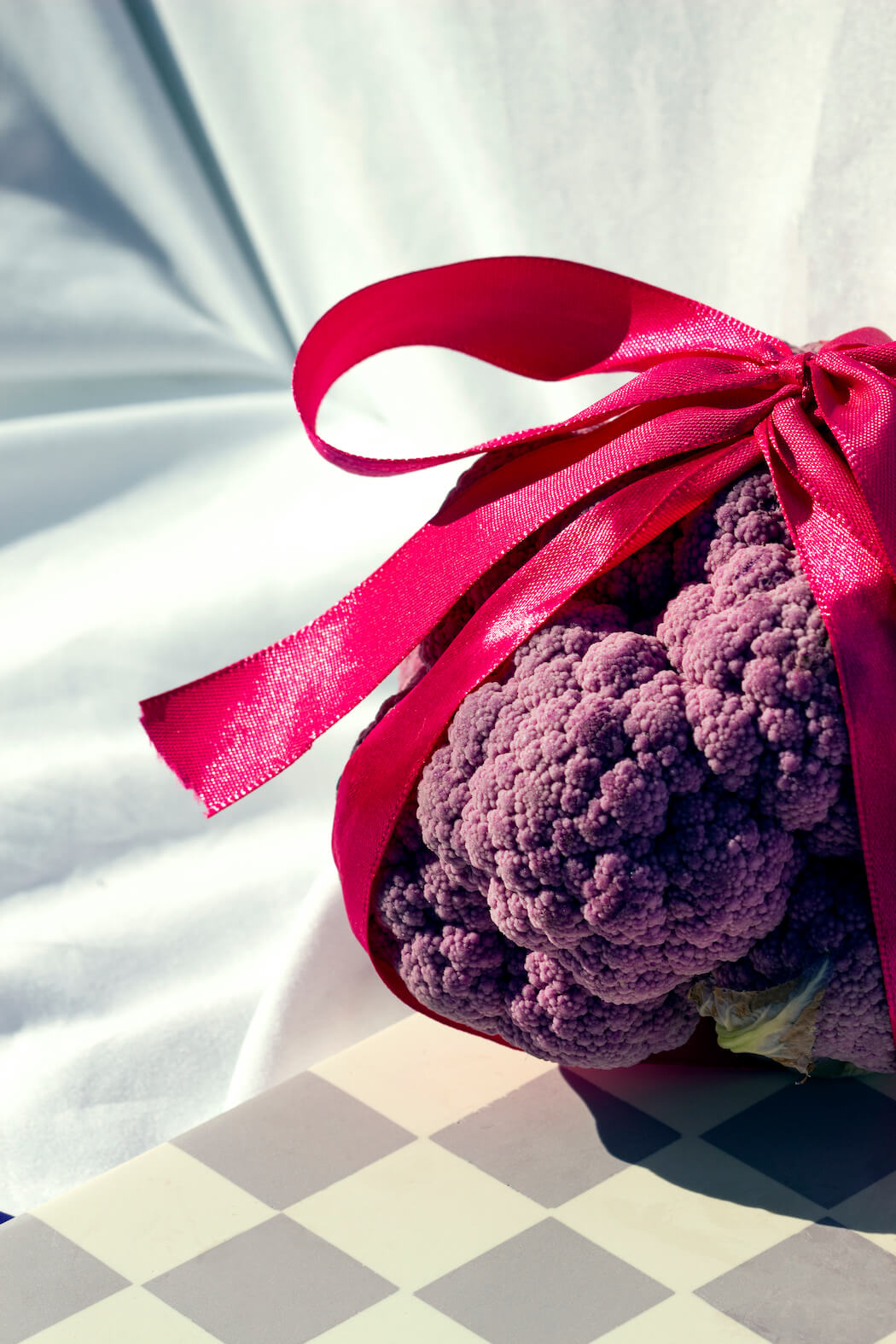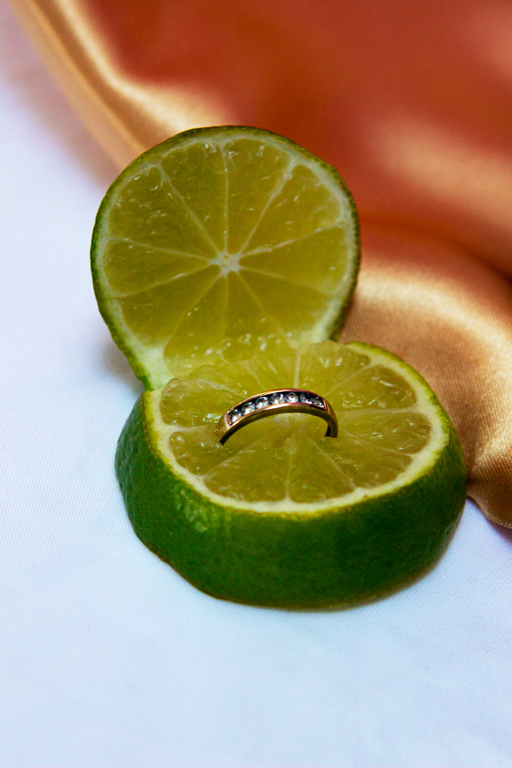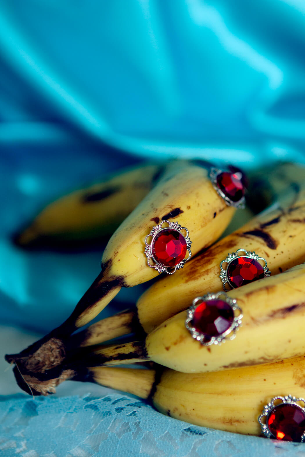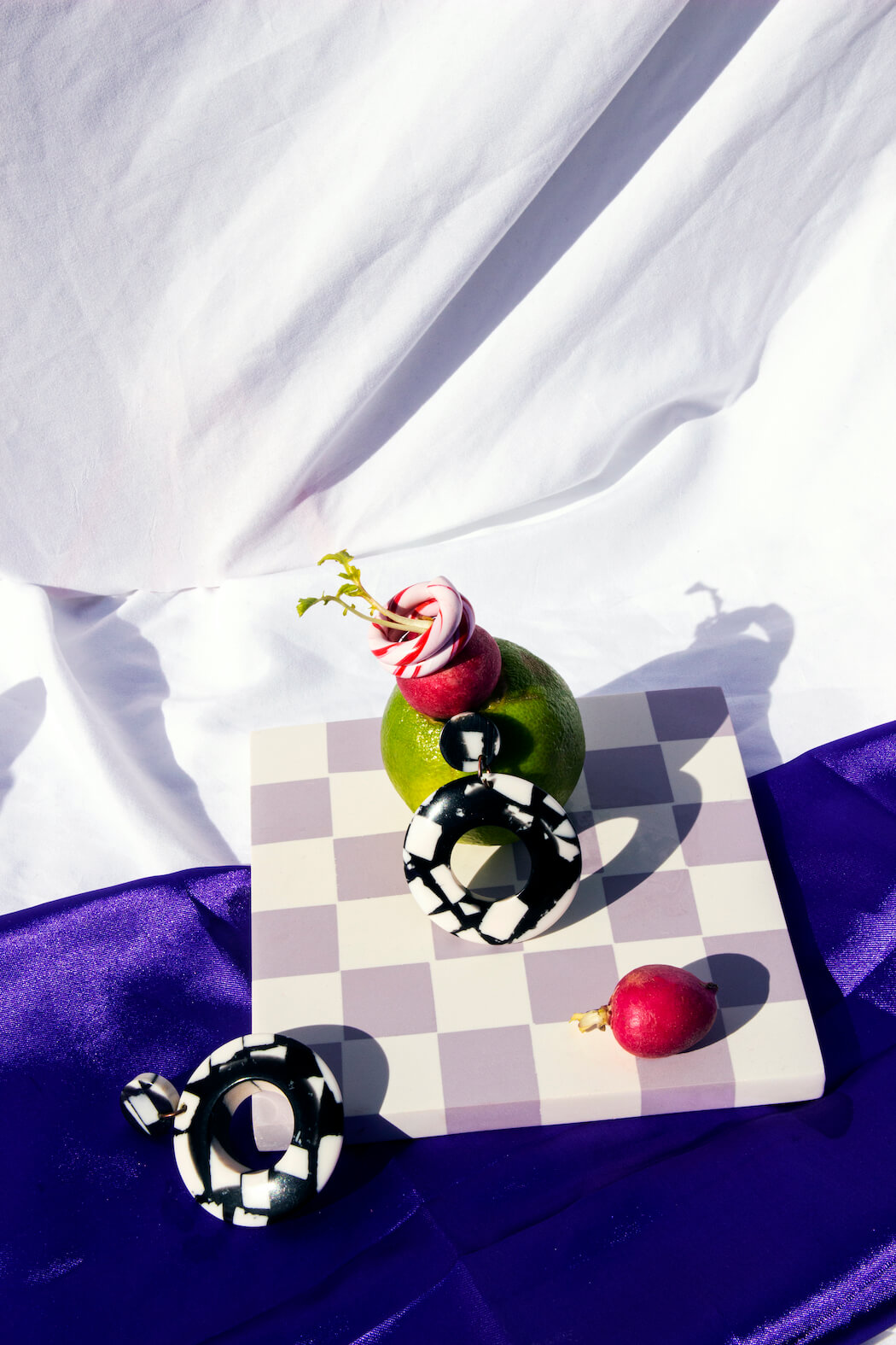 “This still life series features my deepest love and respect for women and fashion. Lockdown prevented me from photographing models so I began to dress fruit as if they were women and the idea of objectification