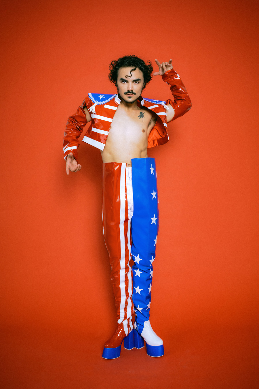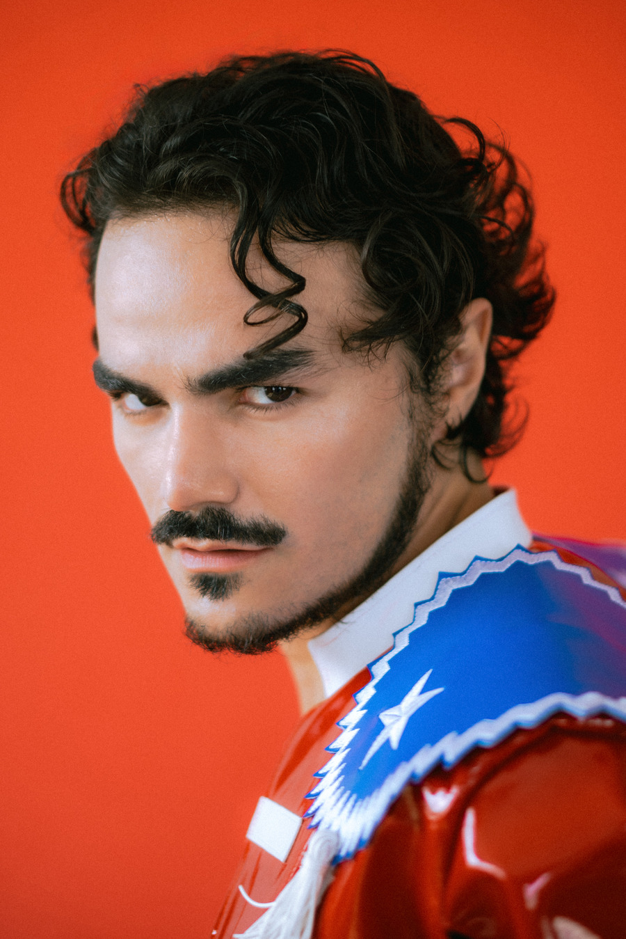 A KALTBLUT exclusive menswear editorial starring Queer Latin artist Baby Yors! Photography by Trevor Paul. Clothes designed by Marco Palou (Baby Yors) and custom-made by Jo Vera. Born in Argentina and currently based in Los Angeles, Baby Yors is an accomplished artist renowned for his unique blend of soul, pop, rock, and Latin music.