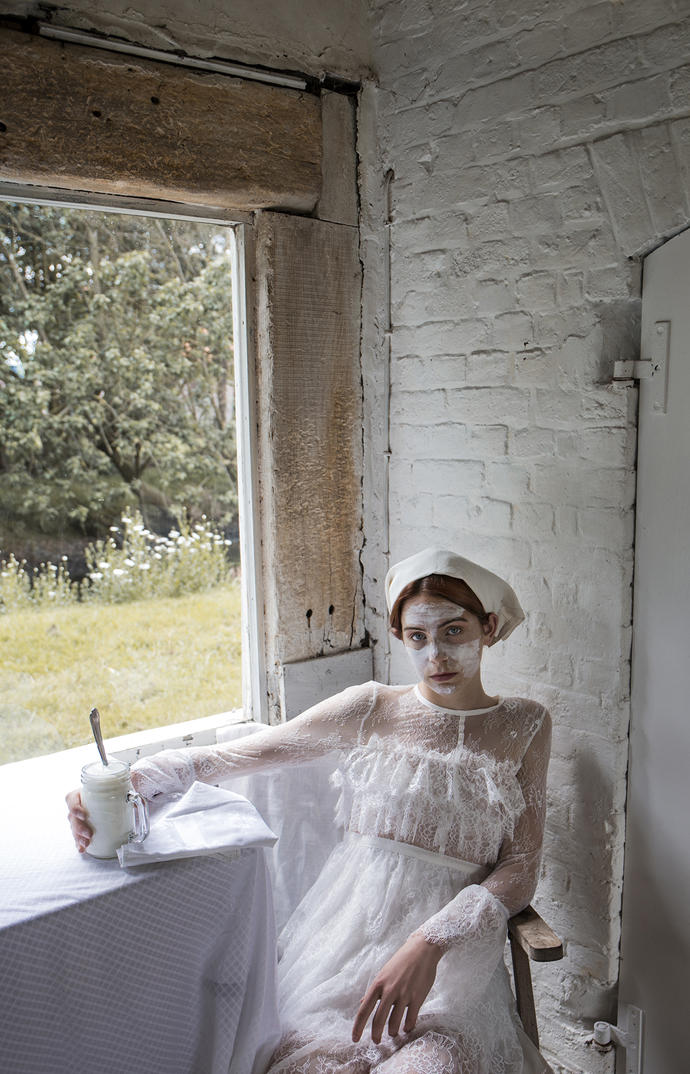 London-based Belgian creative director and stylist Marie-Lou Duvillier, created a story based on home made beauty remedies. She got inspired by her Belgian heritage together with its natural elements coming from the country side where she grew up.