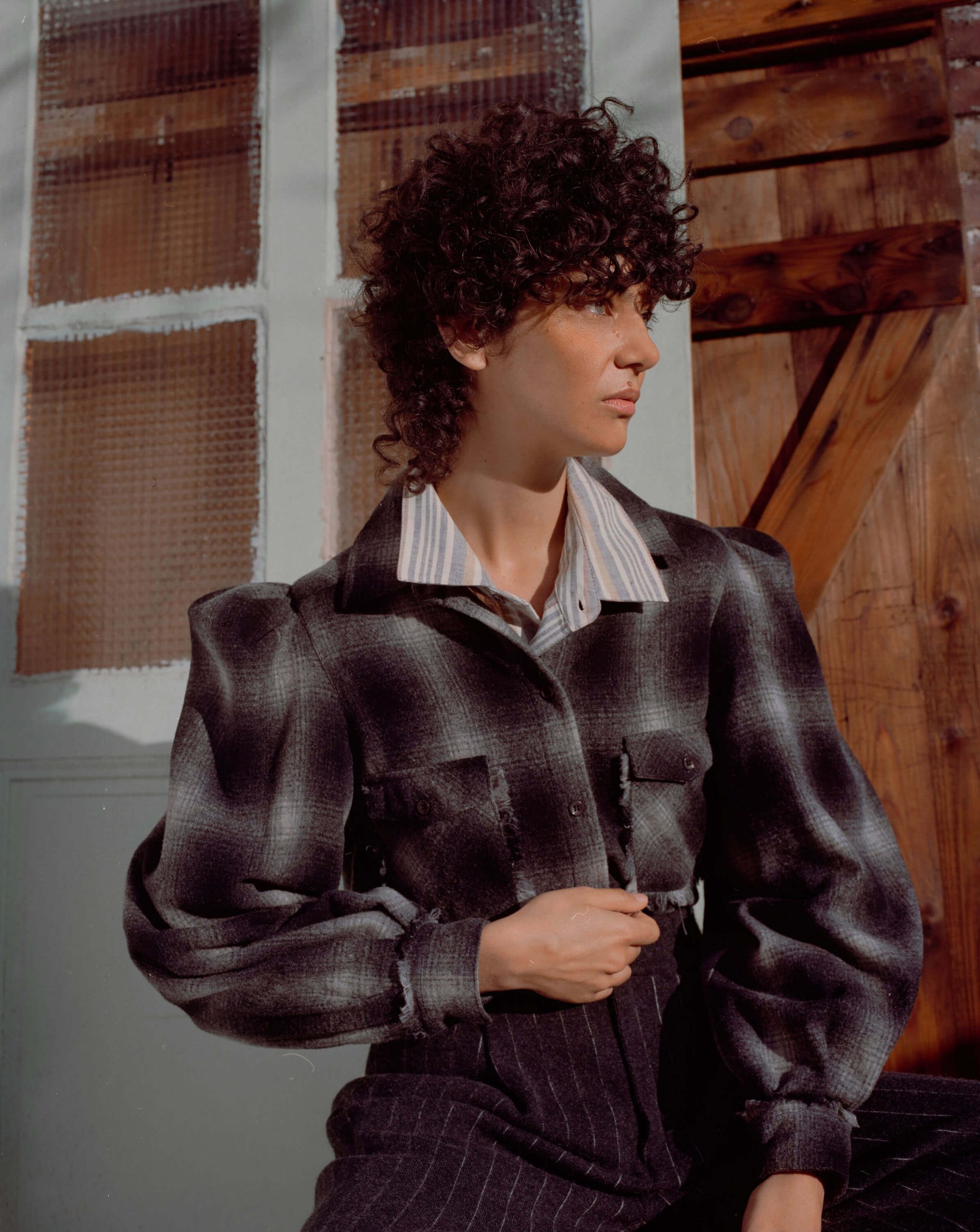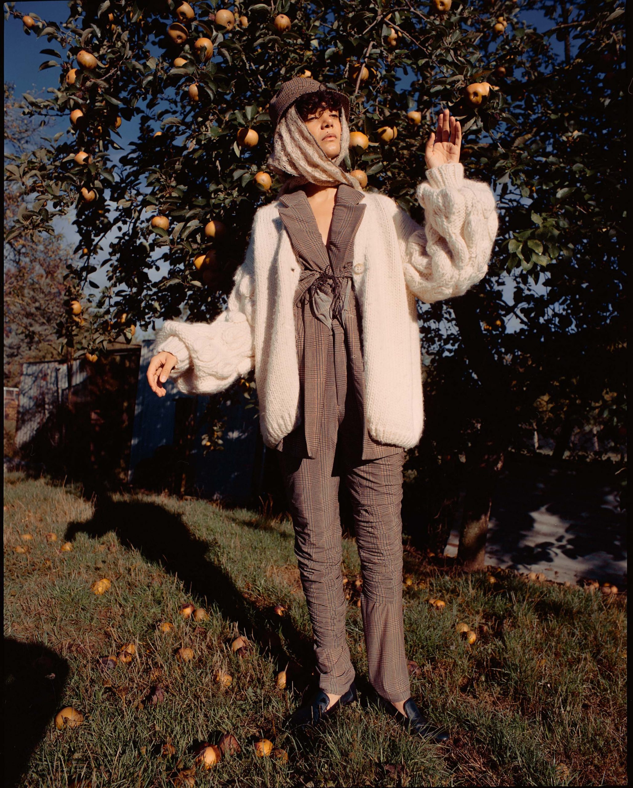 Wool scarf, Andrea Crews Wool jumper, Stella Pardo Cotton jacket, Y/ Project Cotton trousers, Y/ Project Leather shoes, Michel Vivien