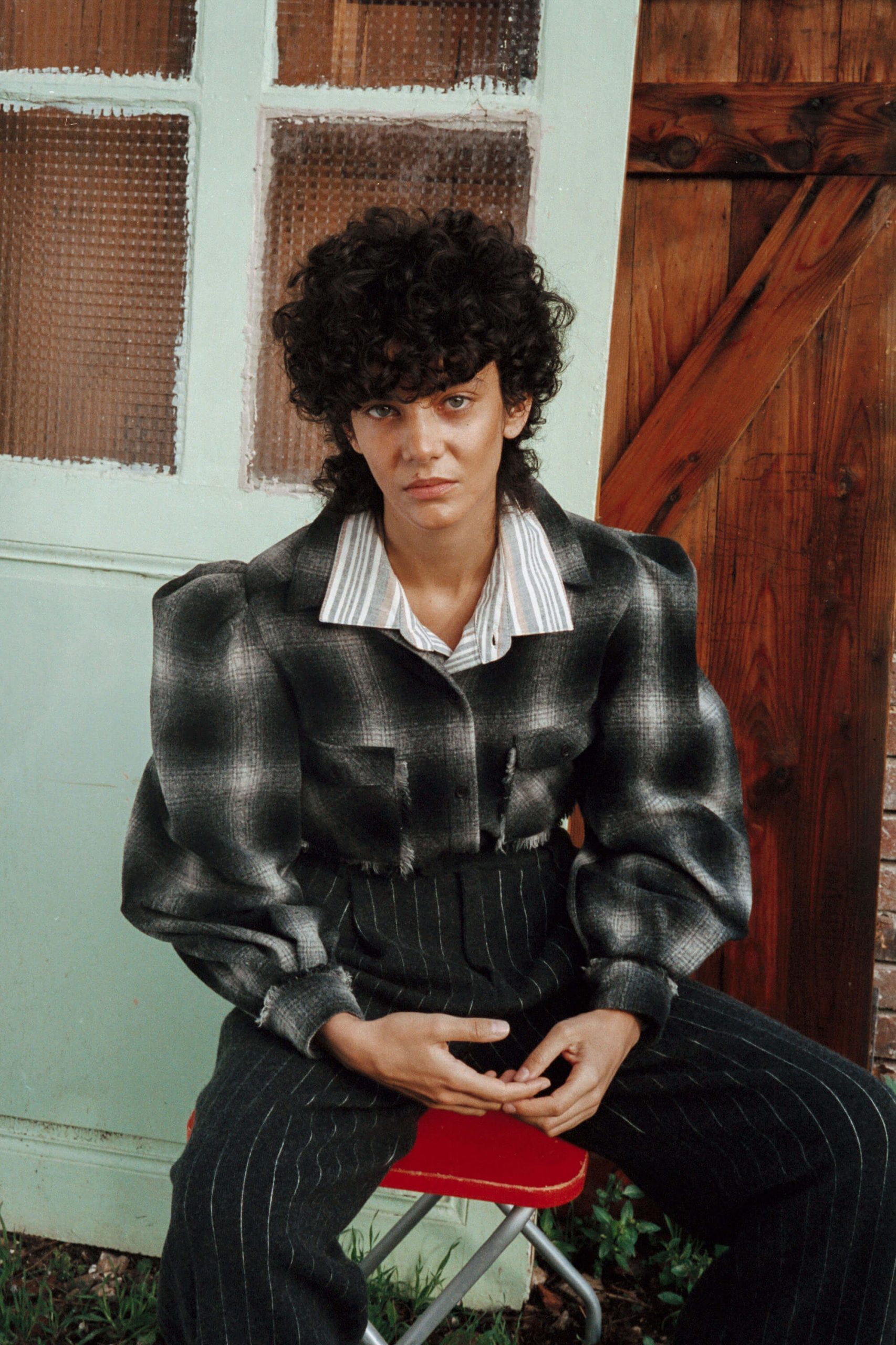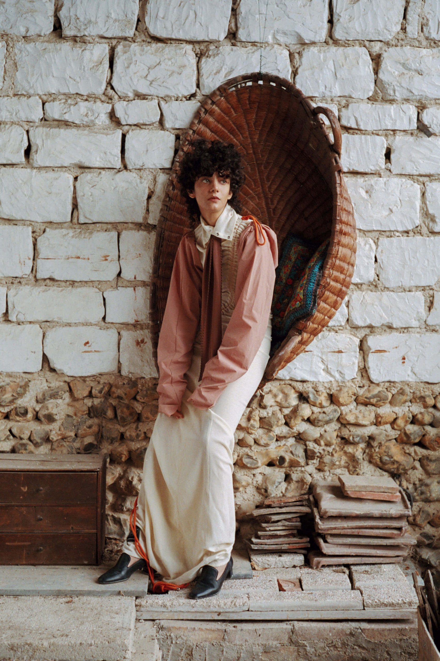 Wool scarf, Andrea Crews Wool jumper, Stella Pardo Cotton jacket, Y/ Project Cotton trousers, Y/ Project Leather shoes, Michel Vivien