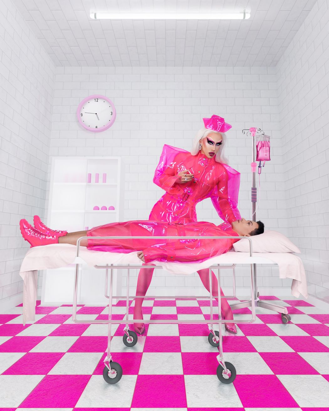 A KALTBLUT exclusive by photographer Allan Patrick. This work combines the drag queen Jazmine’s vision of a beautiful and creepy nurse and the fashion designer Trocades debut collection named Life in Plastic – a Little bit Dramatic. This editorial is also a manifesto: it doesn’t celebrate or discriminate against plastic surgery or body modifications, but instead, it acknowledges that we all crave perfection in some kind of way. And it’s nothing wrong with that! Love, success, or faith are some of the ways humans pursue happiness and perfection. All is Vanity. Creative Direction, Model and Makeup by Jazmine (Renato Moreira).