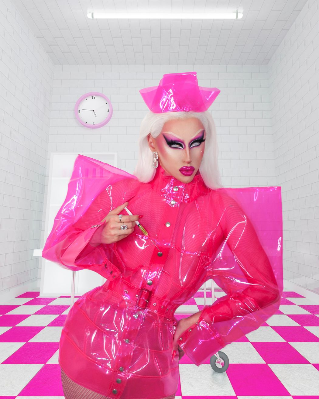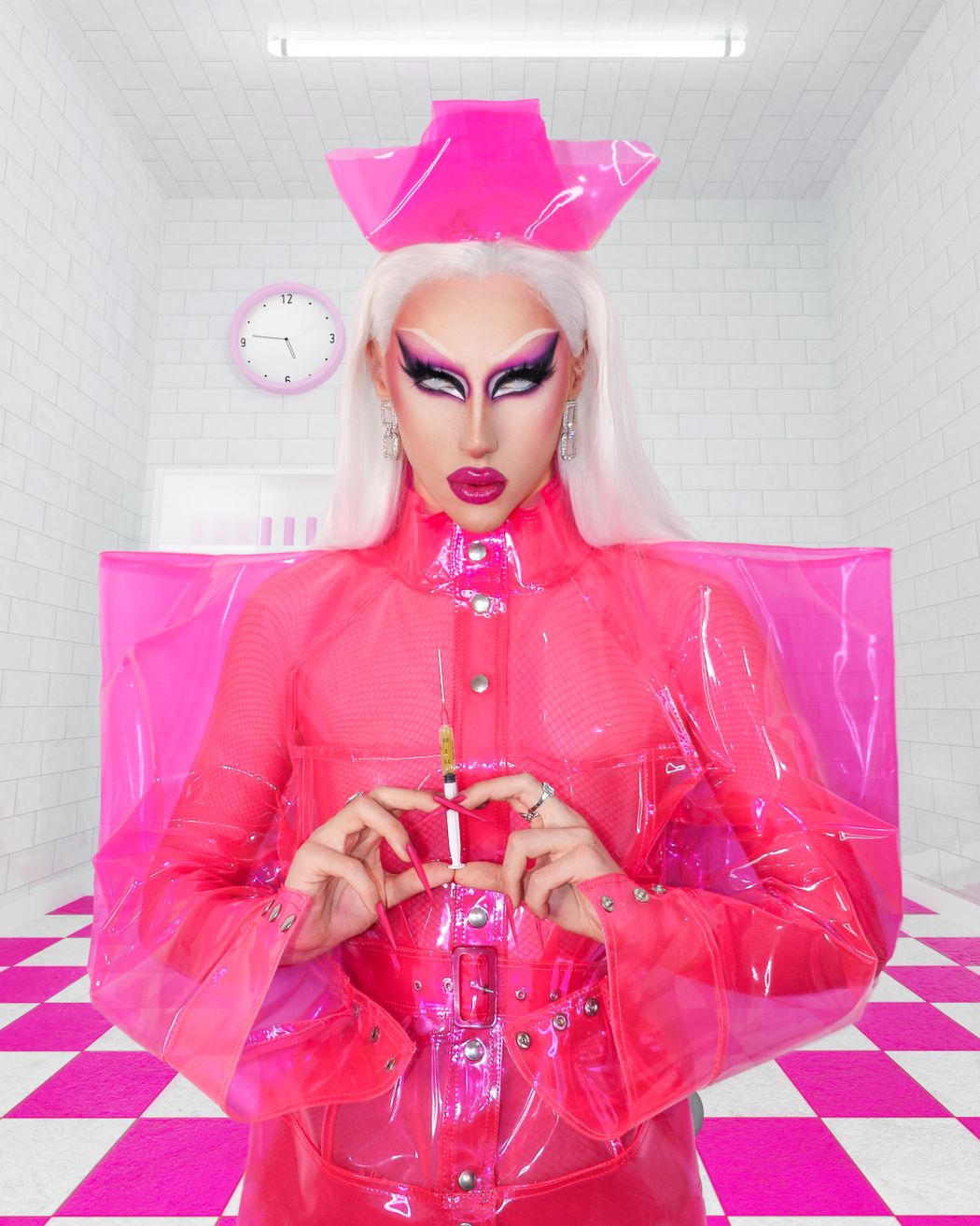 A KALTBLUT exclusive by photographer Allan Patrick. This work combines the drag queen Jazmine’s vision of a beautiful and creepy nurse and the fashion designer Trocades debut collection named Life in Plastic – a Little bit Dramatic. This editorial is also a manifesto: it doesn’t celebrate or discriminate against plastic surgery or body modifications, but instead, it acknowledges that we all crave perfection in some kind of way. And it’s nothing wrong with that! Love, success, or faith are some of the ways humans pursue happiness and perfection. All is Vanity. Creative Direction, Model and Makeup by Jazmine (Renato Moreira).