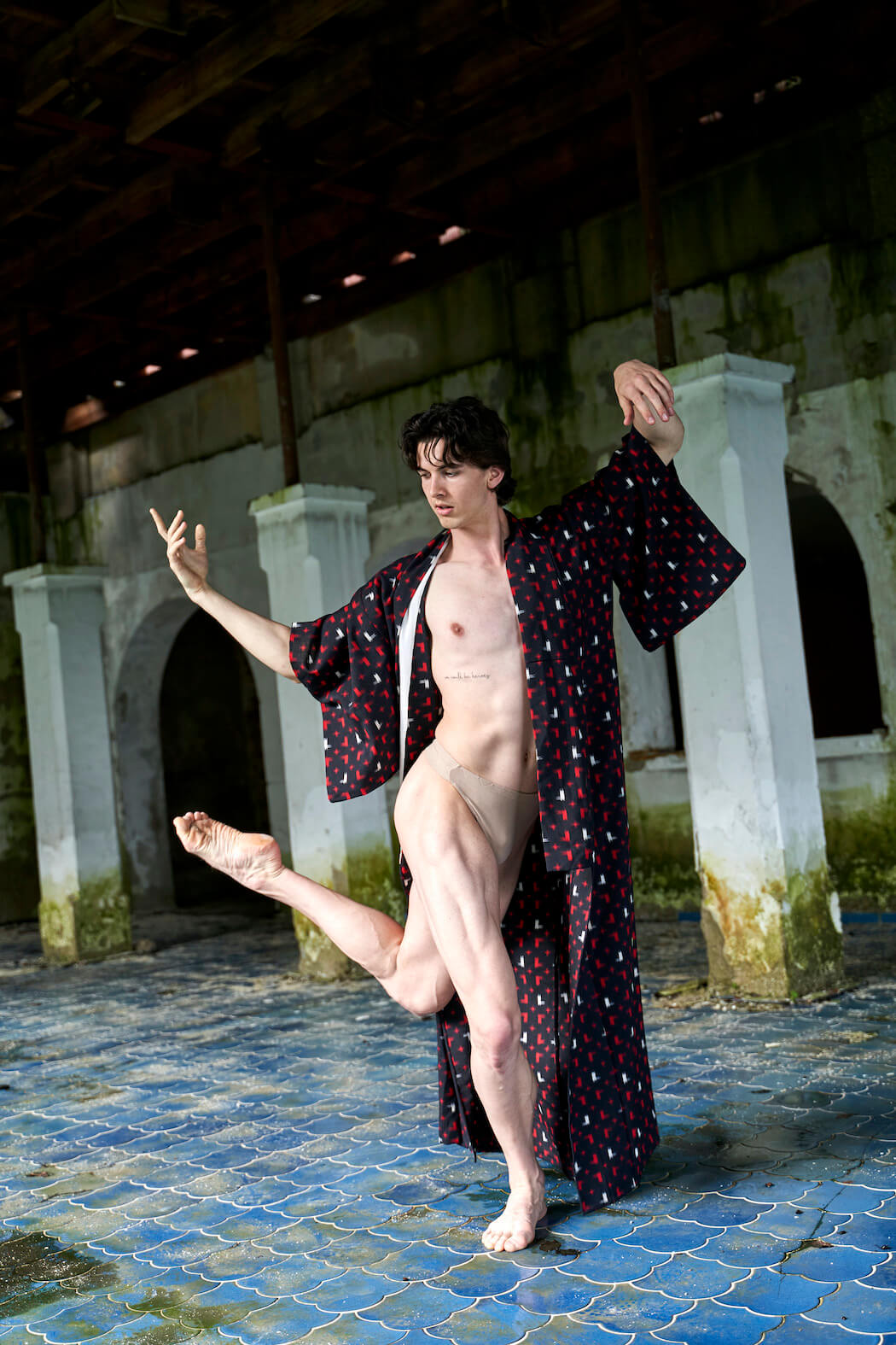 A KALTBLUT exclusive. Photography by Alexander Courtman. Model is the first soloist of the Finnish National Ballet Henry Grey. Fashion Brands are Loewe, Burberry, Saint Laurent, Armani.
