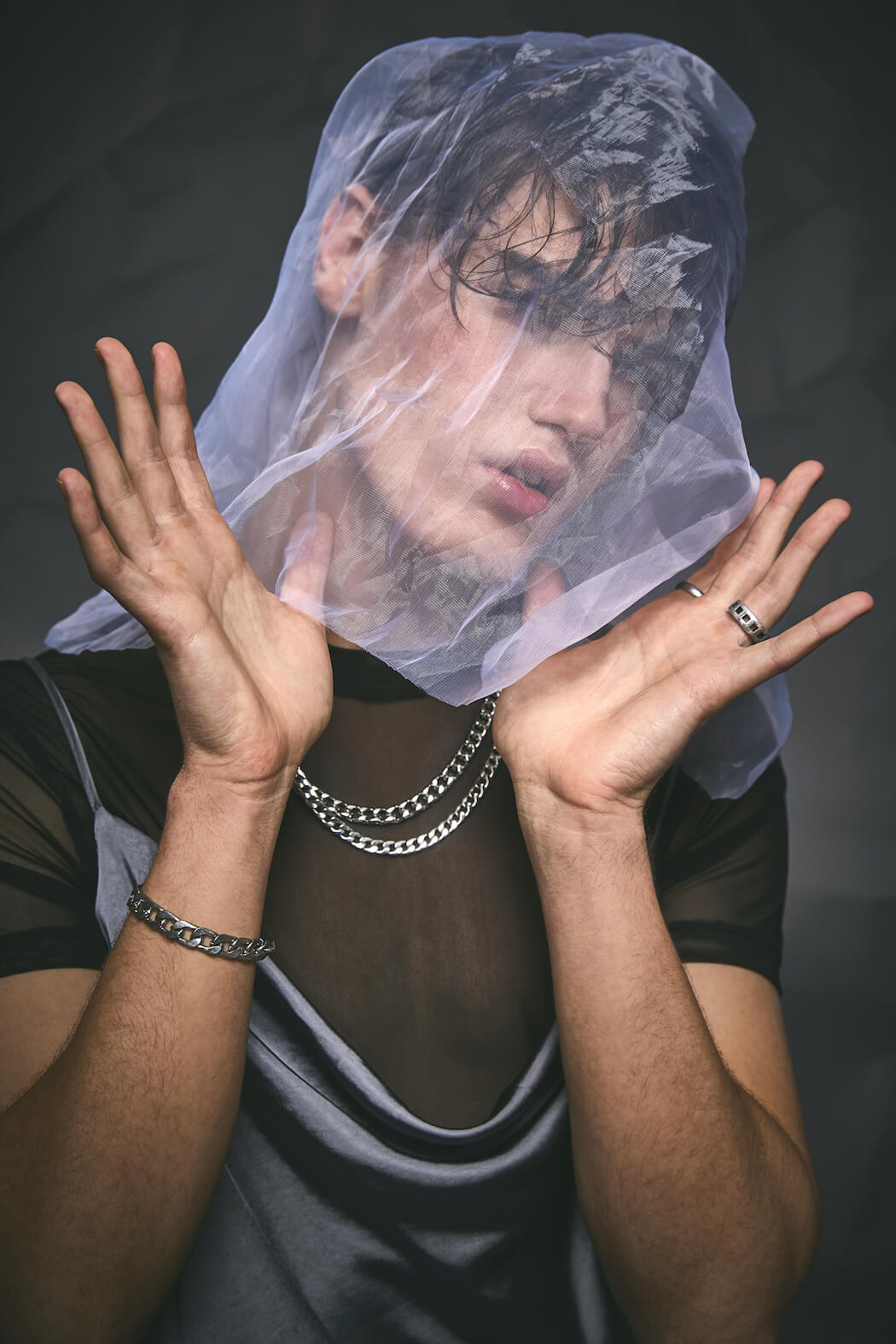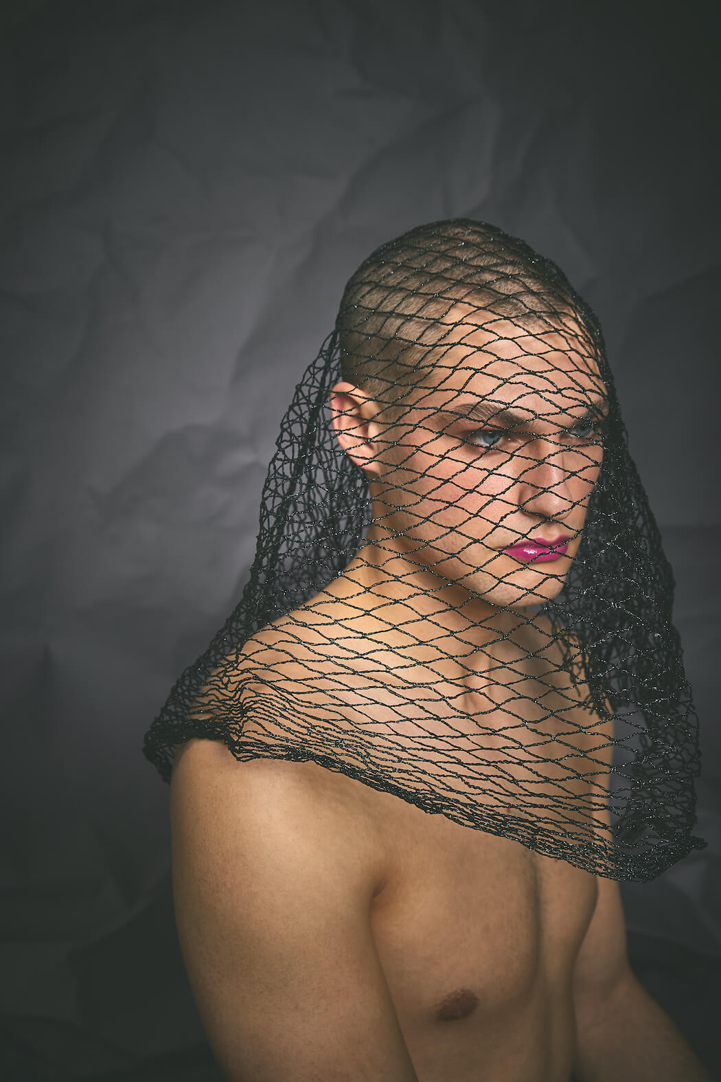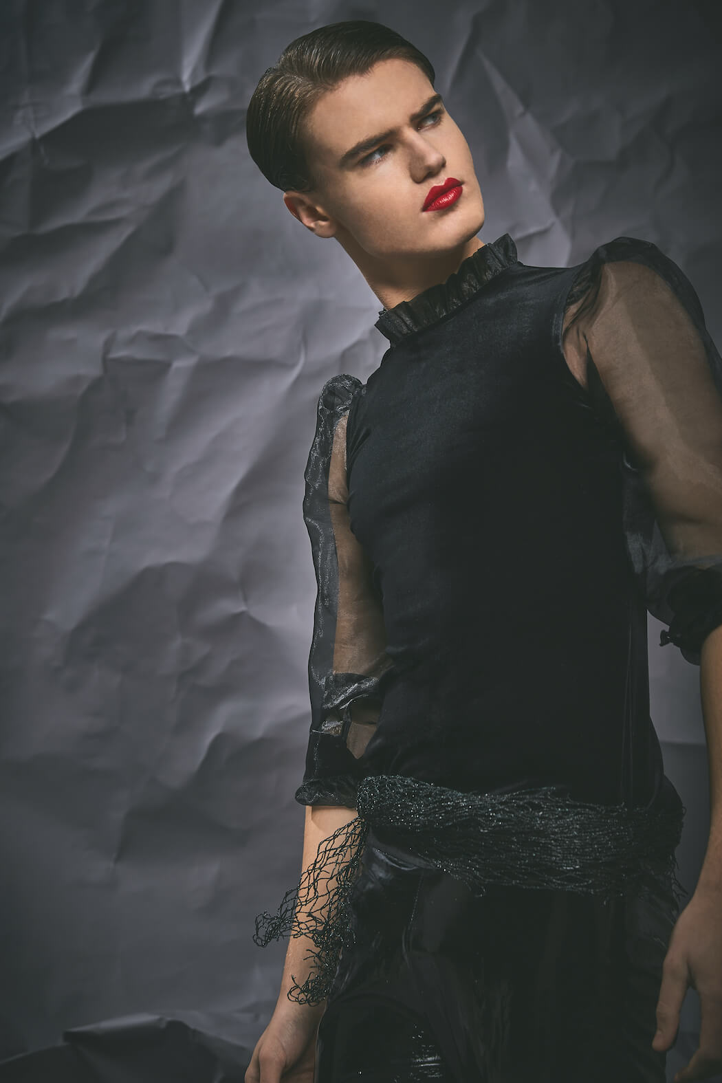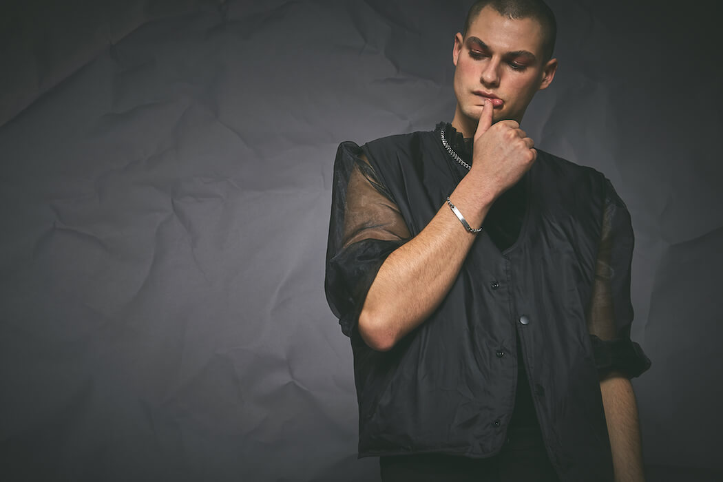 The series ALPHA breaks up the masculine side of men and moves between androgynous and feminine elements. It is meant to counteract the prevailing image of the masculine alpha male, showing a more fragile side in an alpha-male-ruled world.