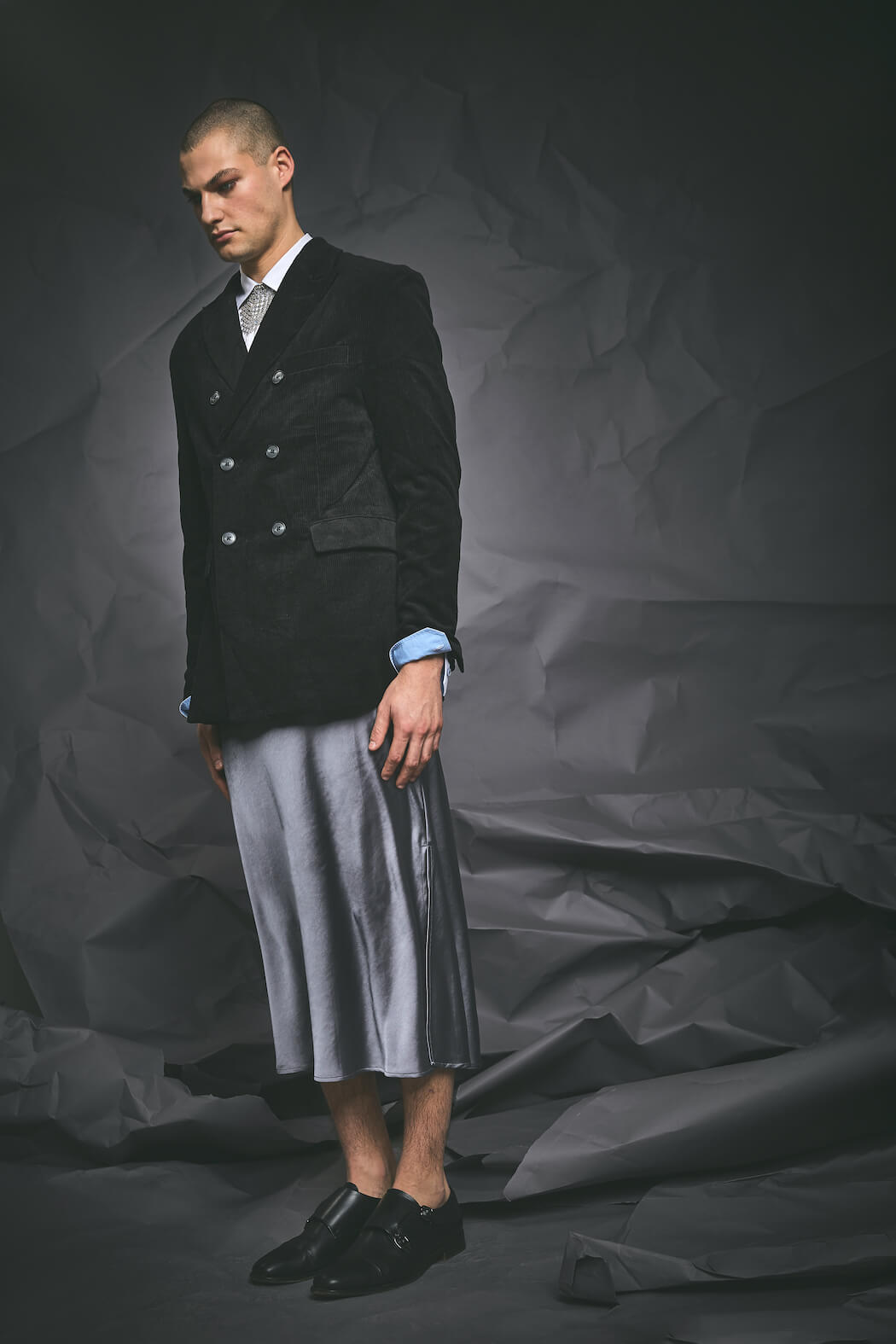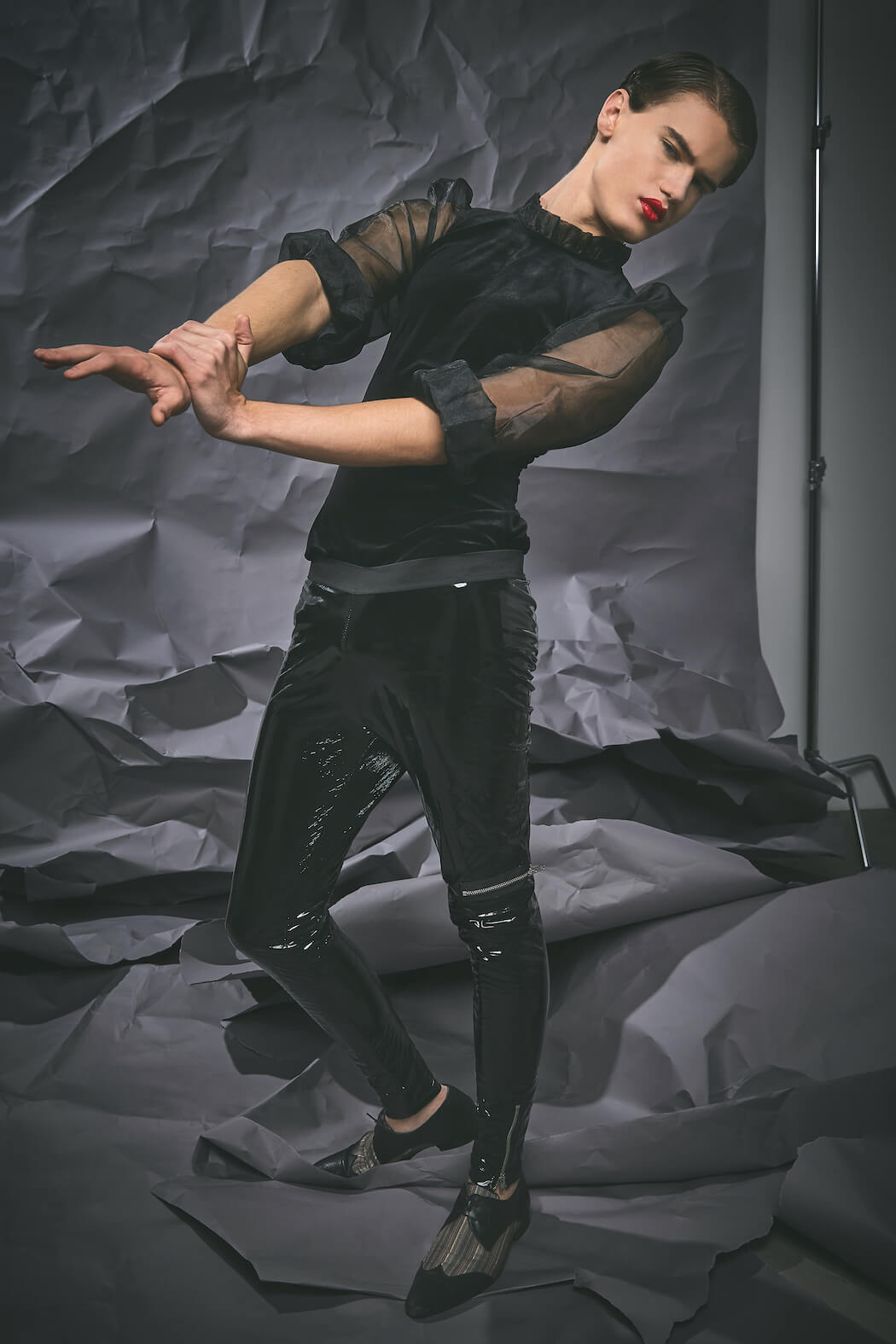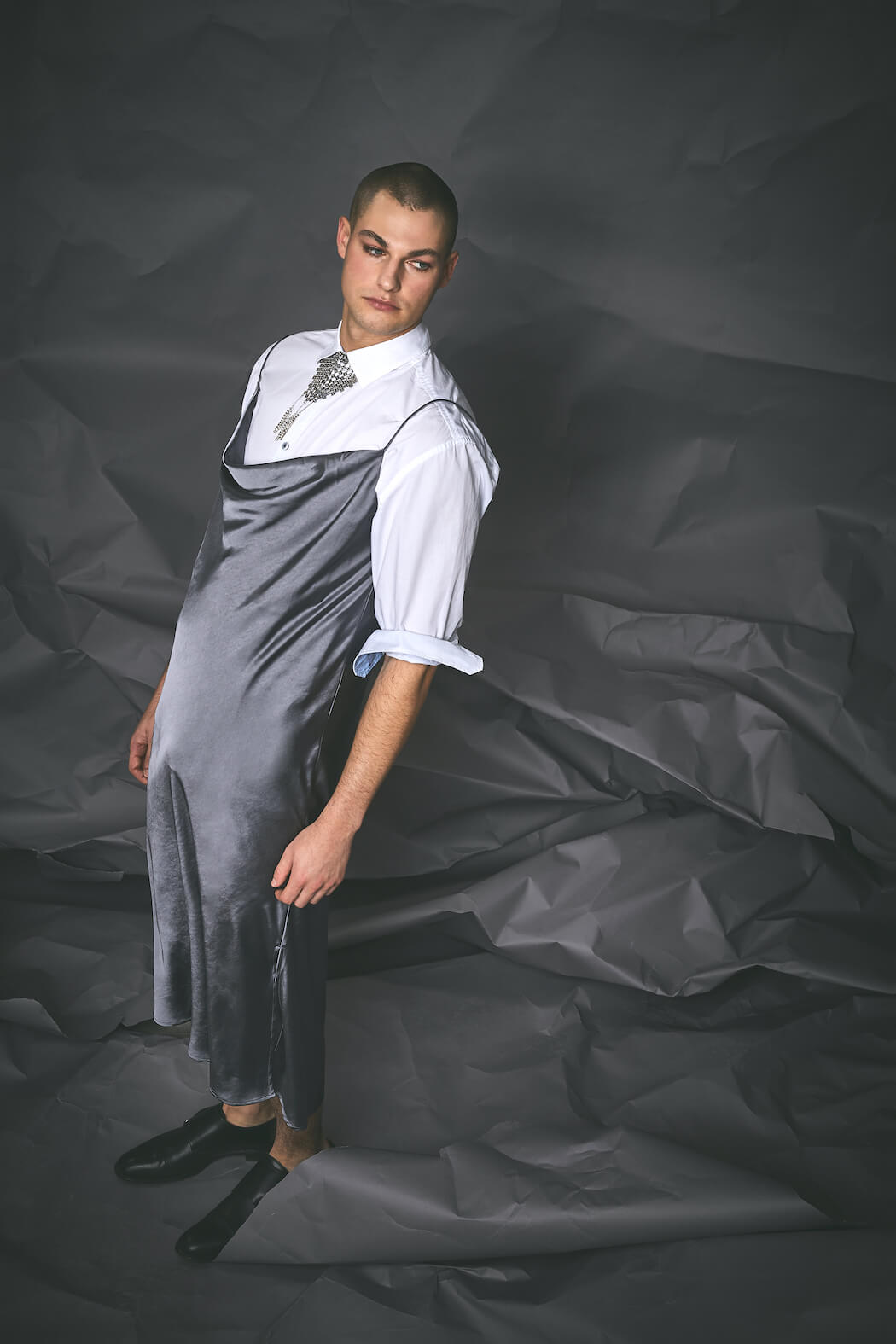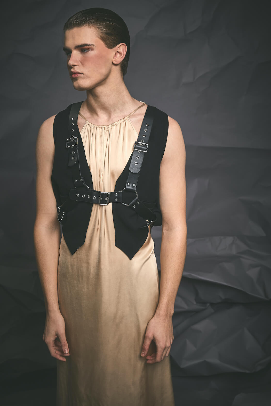 The series ALPHA breaks up the masculine side of men and moves between androgynous and feminine elements. It is meant to counteract the prevailing image of the masculine alpha male, showing a more fragile side in an alpha-male-ruled world.