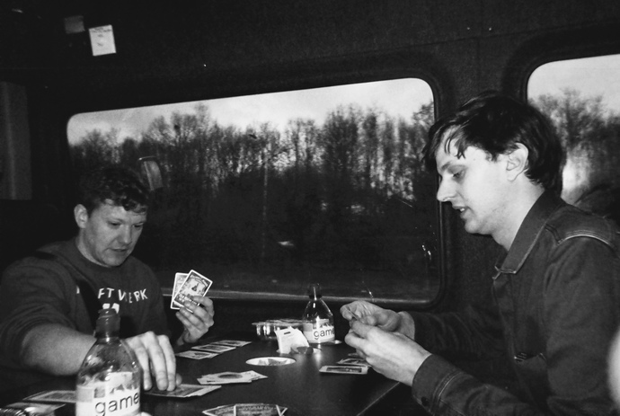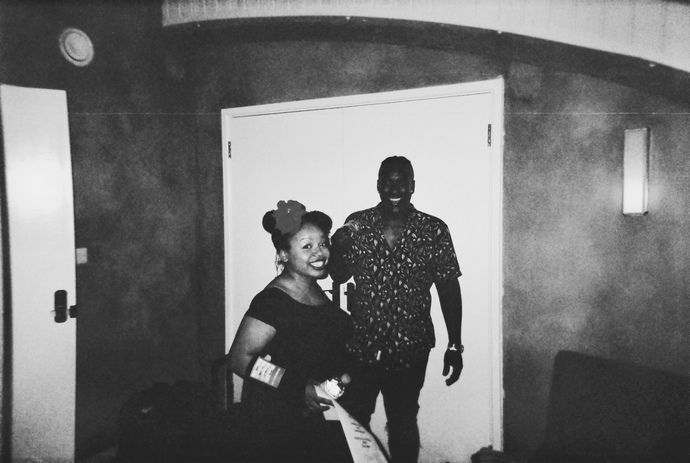 We both love analogue photos and the joy you get from developing film, not knowing what photos are going to come out of the process! What is great with a disposable camera is that you don’t have to be too precious with it! Touring can be a bit frantic as you are constantly on the move, so it is easy to throw it in your bag and share around with other members of the band. It can become a communal item with everyone taking photos on it which is nice too. This also makes collecting the photos once they are developed even more enjoyable. As we took most of our photos on our phones, these photos are a more random assortment of shots from one of our first shows on our European tour in Leeds (the shot of us standing in the street) to our headline show in London (the crowd photo) and also our show supporting The xx at Motorpoint Arena in Cardiff (the sofa photo also featuring Anna from Metronomy).
