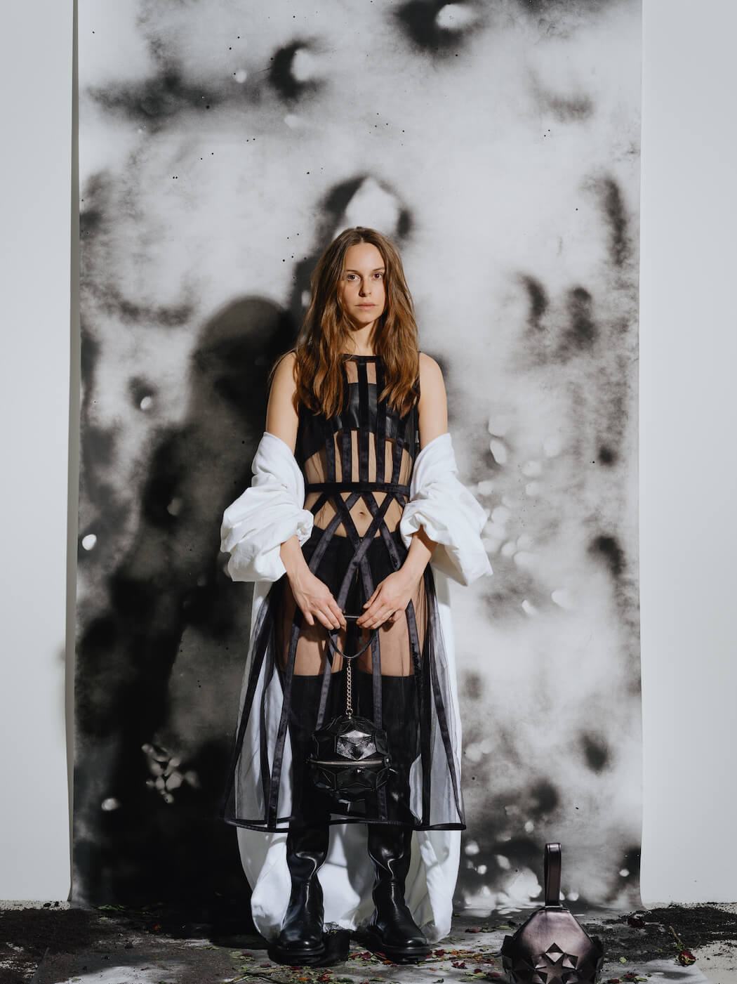 Meeting some of the designers represented at STUDIO183 made me see different ways of getting into fashion and brought me great inputs. I got to learn more about some of them who are taking their inspirations from their own paintings or other types of media. I have been taught that I should better choose one specific thing to do in order to be good at it and to not get too dispersed. It took me a while to be comfortable with the fact that I am doing different things, working on different types of media, pursuing different jobs and that is totally fine. I see it more as a strength now and can’t stop pushing my limits. We shouldn’t be put into boxes that define ourselves. Let’s highlight multidisciplinary artists, double-faced talents. Let’s exchange roles. What if the creative director was a young woman, an artist and a model too?“.