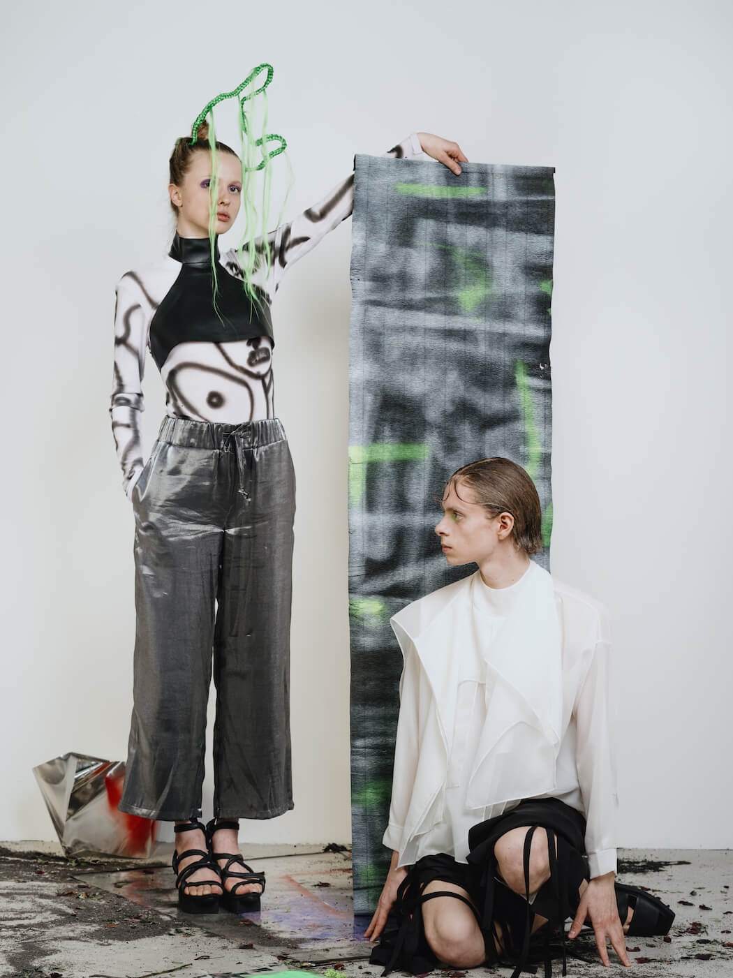 A KALTBLUT exclusive. Creative direction by Cille Sch. Photography by Shai Levy. Styling by Veronika Hopponen. Models are Natalie Golubenko signed at Agency Viva Models, Benji Wohlrab, Lucas Ngo, Cille Sch. Makeup by Sara Grötsch. Hair by Mariane Michel. Fashion by Reza Nadimi, Assembled half, Zmai Successories, Sinuous sisters, Luna Morgaciova, Ariga Toroslan, Kiss the future and Trippen.