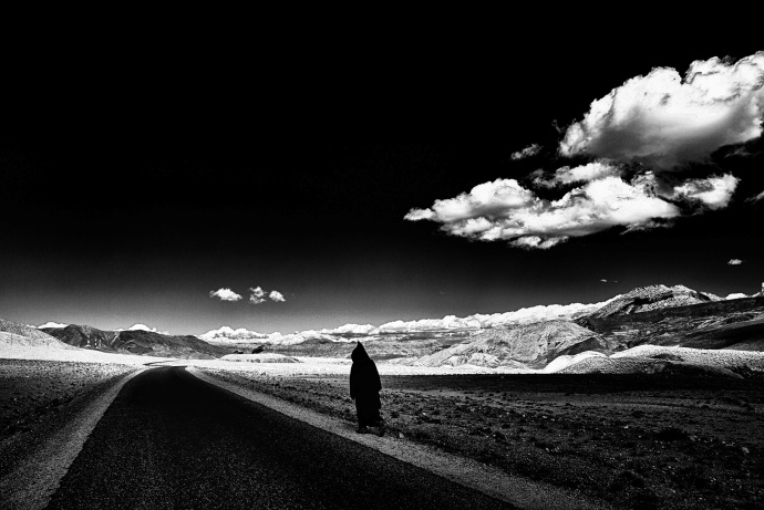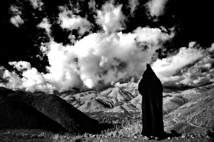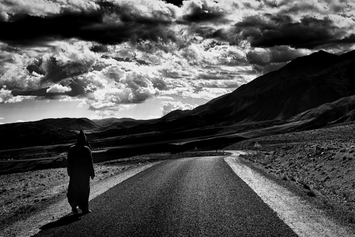 “This series is called “Amarg,” which is the Amazigh/Berber word for nostalgia. The djellaba is a typical outfit worn in North Africa, principally in Morocco, Algeria and Tunisia. The series focuses on the aura created around this mystical figure found in the desolated landscapes of the Atlas range and Sahara. These lonely places bring an almost metaphysical feeling, in some ways, and forces the viewer to conjure up meaning or answers that are going to remain as elusive as the very own nature of the places itself. Quoting a famous Berber writer: “Deserts and mountains take us closer to the cosmos, and make us feel such a mystery.””