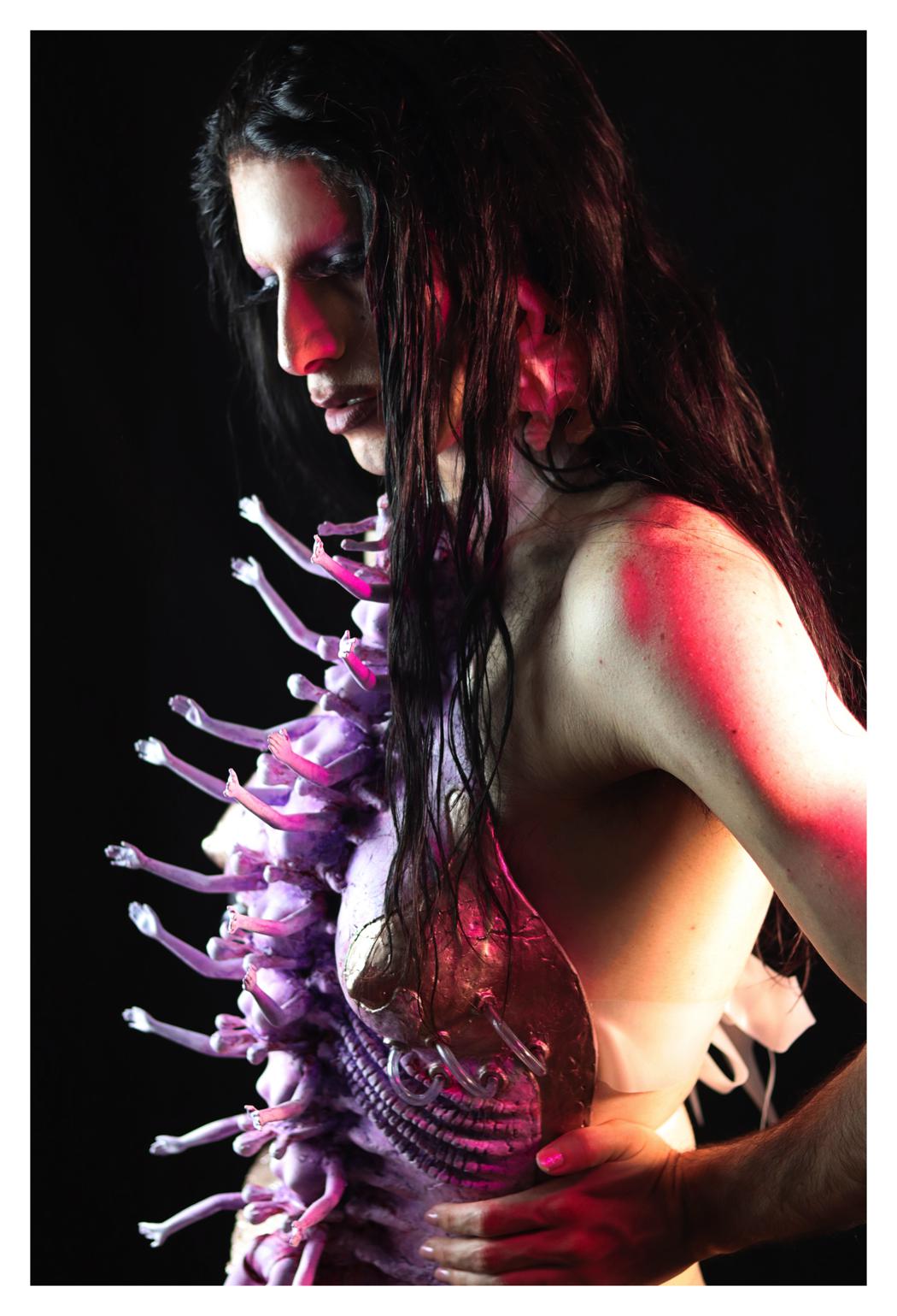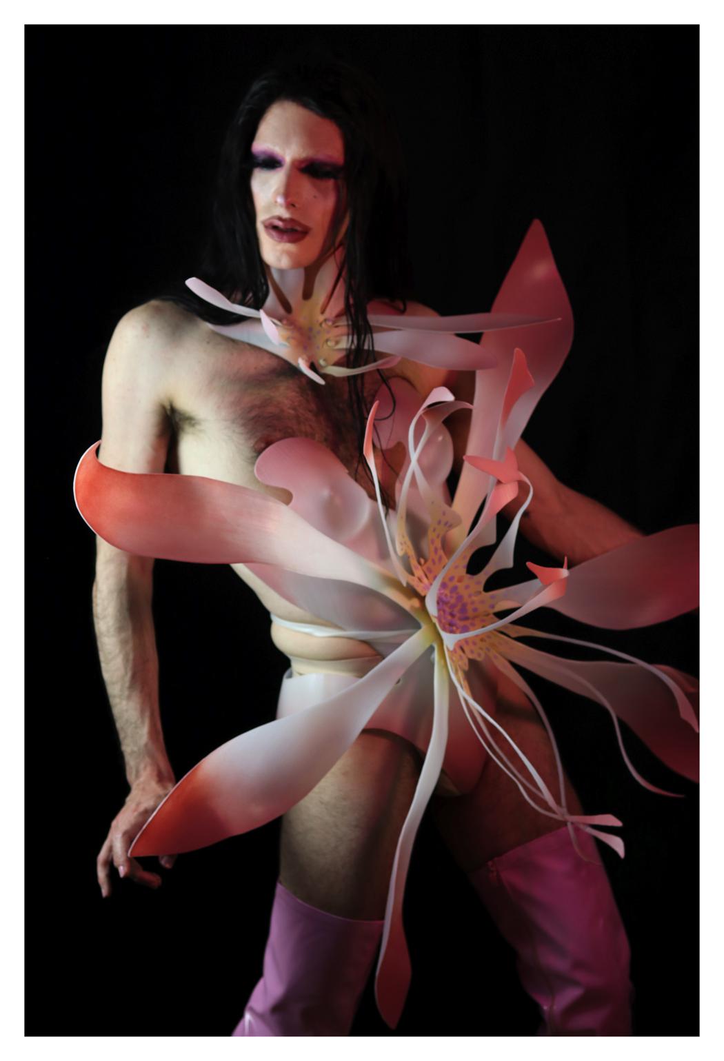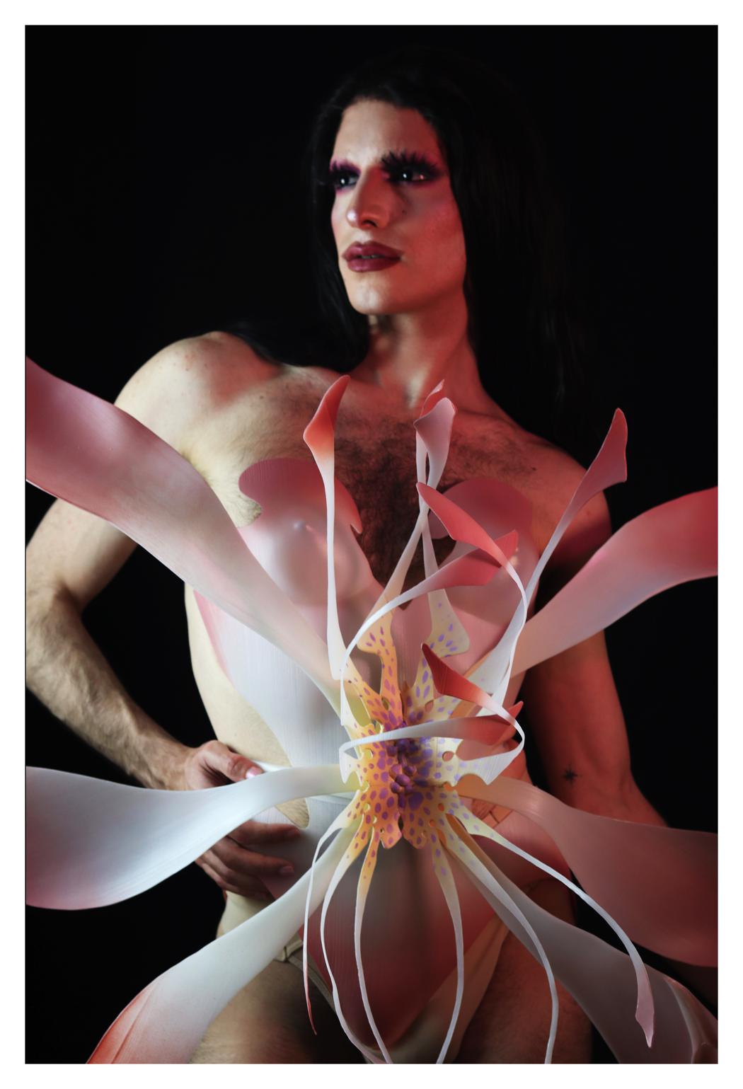 Charlie Mintson is an LGBTQIA+ photographer and costume designer who is trying to show his models as creatures living in magical union with themselves. The main inspiration is nature and metamorphoses among children of mother nature. We are all longing for the union inside of us. Balance in those creations is the core. “Amber phantom” is a story of true beauty, of non-binary creation in nature. It is the child of a Butterfly.