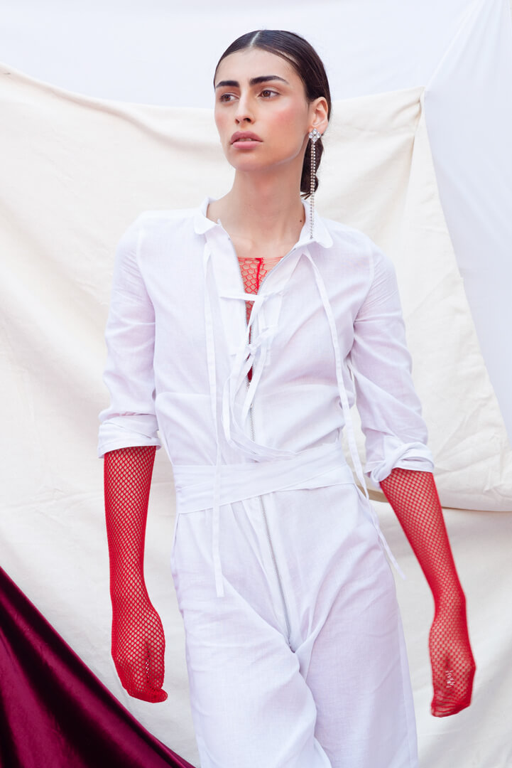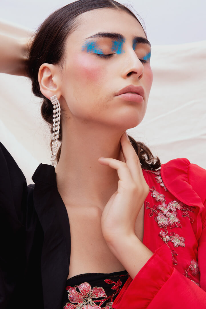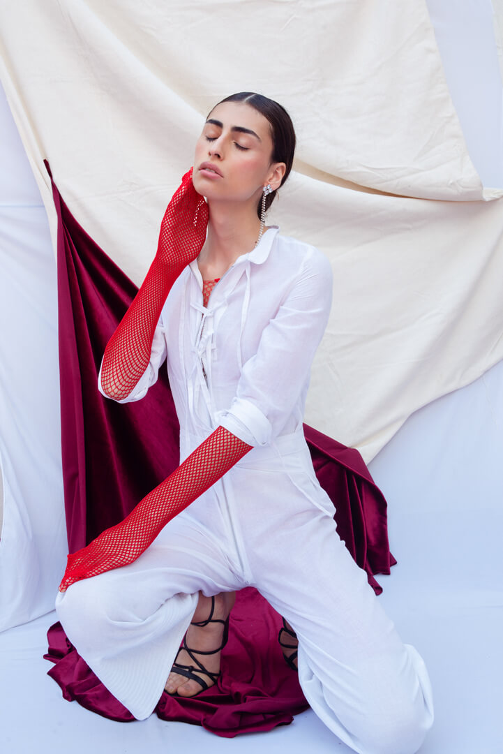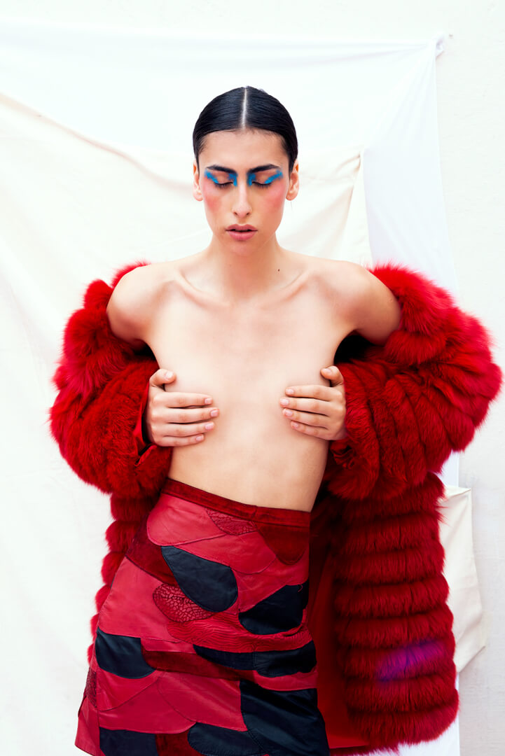 “My name is Florencia Valentini I am 28 years old and I am a fashion photographer and set designer based in Argentina. I am always trying to rethink fashion and move it from the place is supposed to be. Amuleto was thought as an editorial based in colour and texture, but in the making, it transformed into a part of a series based in the colours and the power we gave them. We use red around our wrist to protect us from envy. But what about our envy, our need to become “the other”.