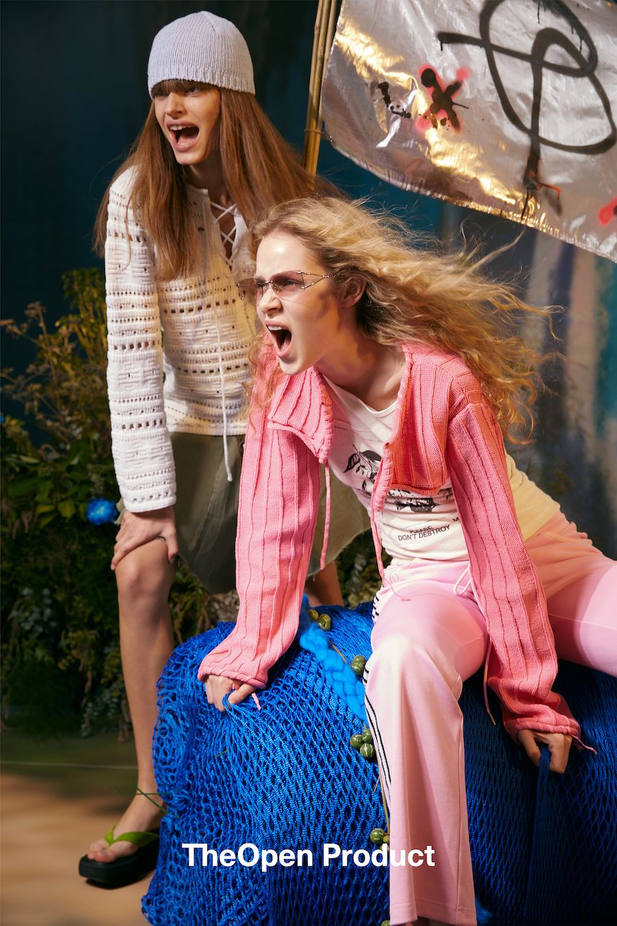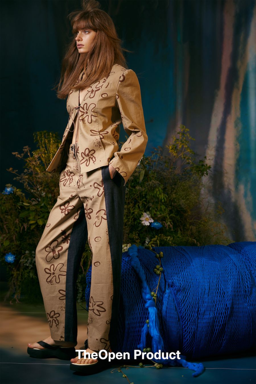 Gardening is considered to be a grandma’s pastime – patience-demanding, quiet, often even boring – but TheOpen Product reinvents the aesthetics of horticulture as something hot and modern, introducing the Garden Gang. The collection presents a witty and stylish way of being closer to nature by making gardening a new cool part of the Gen Z lifestyle: 90’s-inspired silhouettes, flared jeans, Panama hats and as much knitwear as you could imagine, including vests, sweaters and fringed cardigans – all polished with a modern-day stylish attitude. TheOpen Product proves that florals could be cool, not romantic: combined with washed denim, ultra-wide pants and athletic attire, the brand’s nature-inspired prints give off a hippie-ish, vintage-inspired vibe. The SS22 collection is the first time TheOpen Product devotes itself to sustainability by using organic cotton and recycled polyester in production. This way the brand is not only sourcing inspiration from nature’s ability to regenerate and bloom but giving back a favour to our planet.