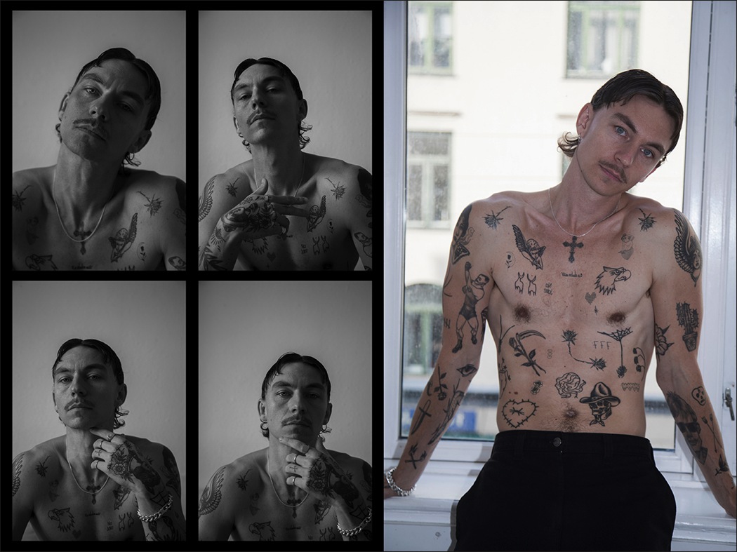 A KALTBLUT exclusive. The photographer Illa Bonany shoot the danish disciplinary creative Anders Bordinggaard in Copenhagen wearing InstaTattoo items. Founded in Seoul by Namsuk and Bora in 2018, Instant Tattoo is a fast-growing, digital-native K- beauty/fashion brand designed for individuals to express their multiple identities in the most instant way, without the pressure of life-time commitment.”