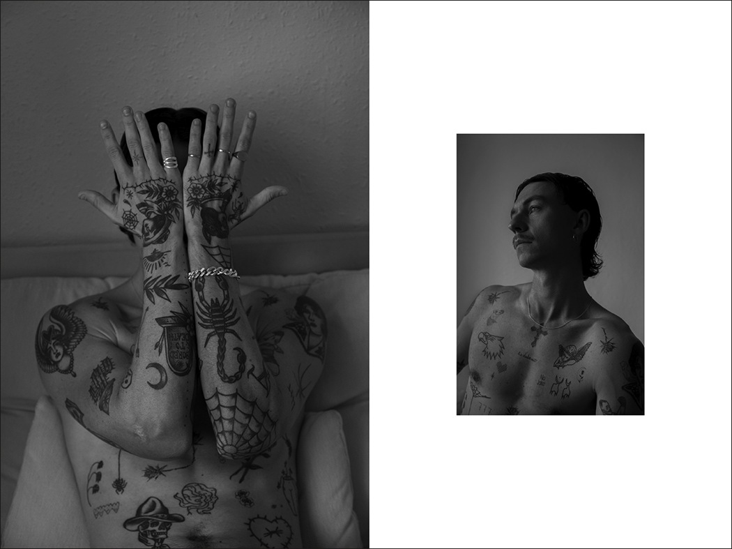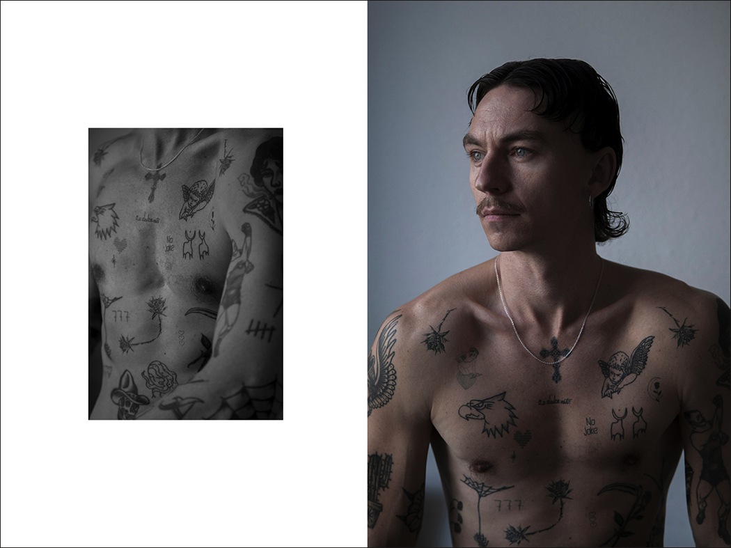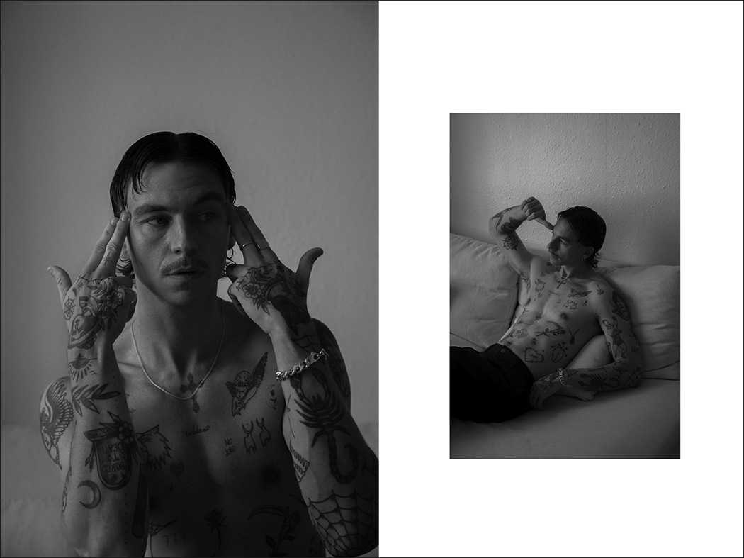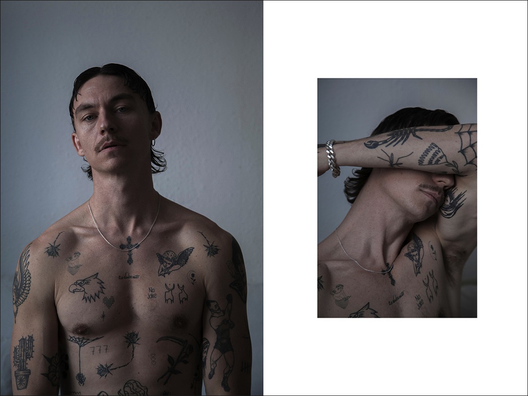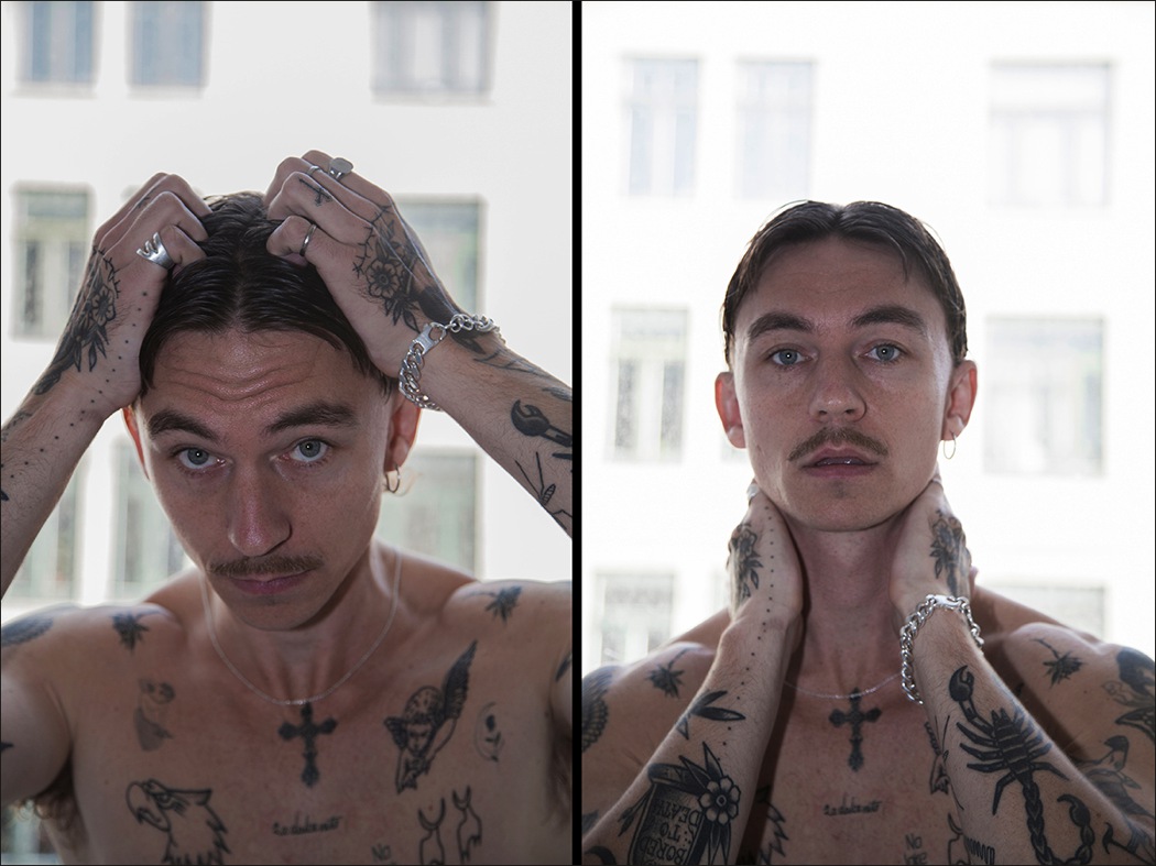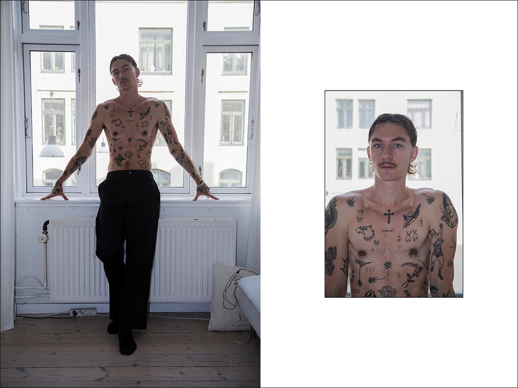 A KALTBLUT exclusive. The photographer Illa Bonany shoot the danish disciplinary creative Anders Bordinggaard in Copenhagen wearing InstaTattoo items. Founded in Seoul by Namsuk and Bora in 2018, Instant Tattoo is a fast-growing, digital-native K- beauty/fashion brand designed for individuals to express their multiple identities in the most instant way, without the pressure of life-time commitment.”