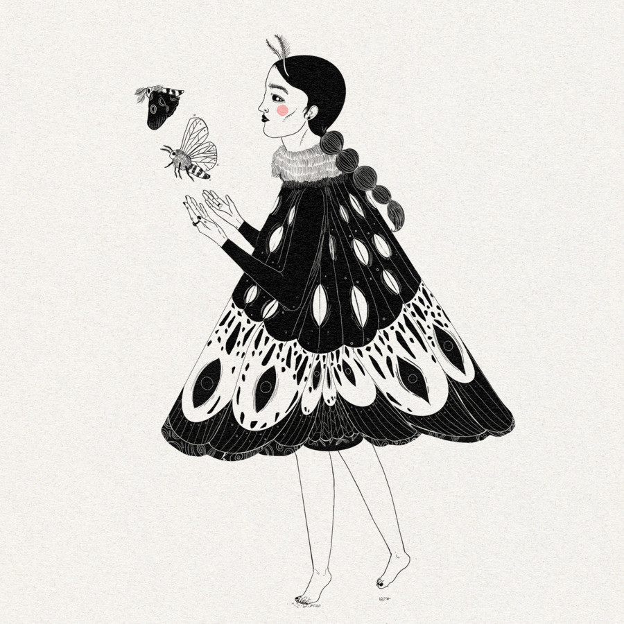 An example of this “wink” could be in my illustration “Fly” (“Vuelo”) where there is a moth girl who is letting butterflies fly away from her hands. It’s a metaphor for flying.