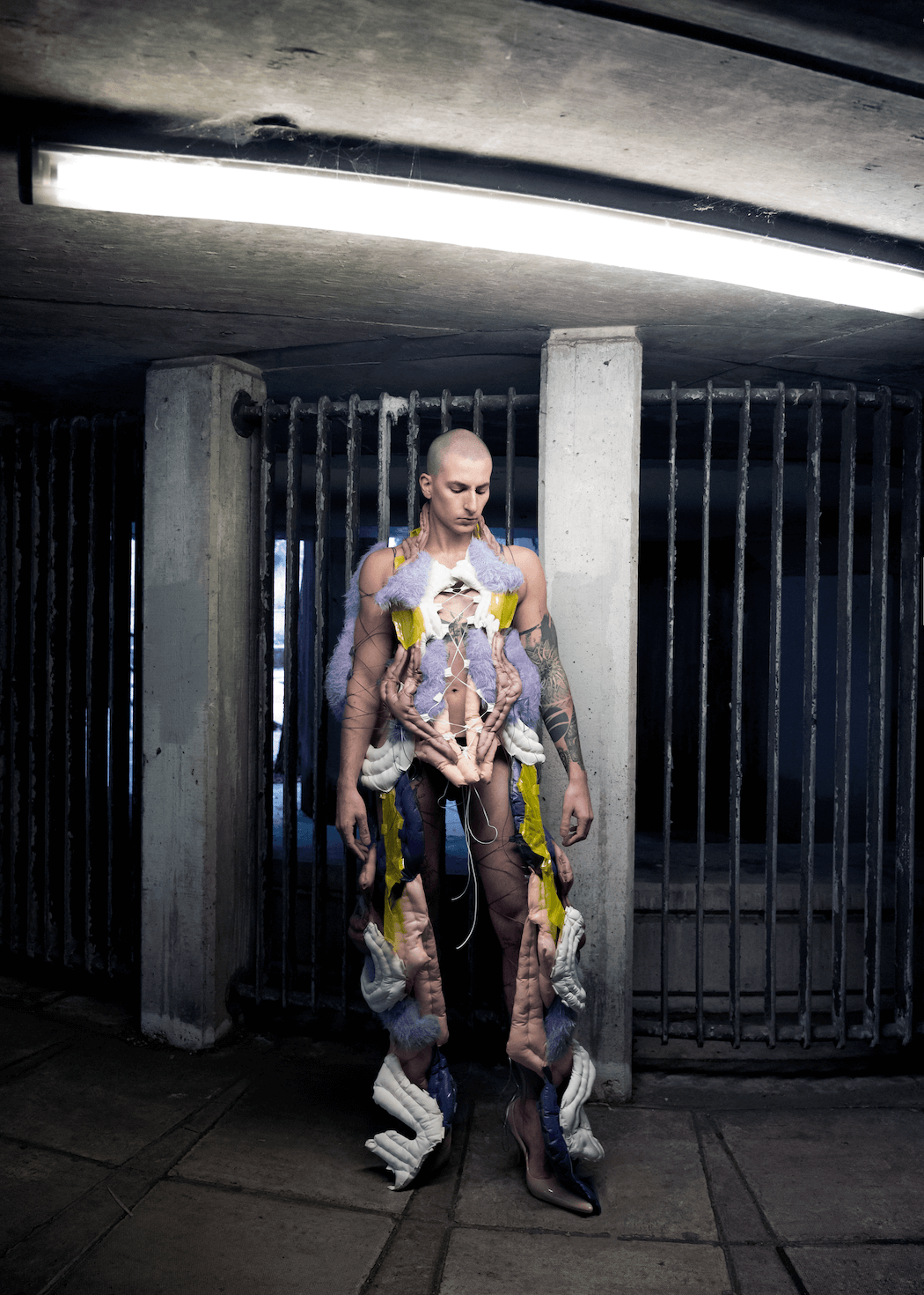 Stephanie Uharts’ collection ‘Altered Perceptions’, and FCLXs’ ‘Pandemic,’ are inspired by the designers’ experiences of collective consciousness. Birthed through Uharts’ personal experience with meditation and hypnotherapy, ‘Altered Perceptions’ is an attempt to unify the body by “giving form to things that are treated as conceptual, visualising what I have no image for (Uhart).” Although seemingly bizarre or unusual at first glance, the pieces can be realised as nuanced explorations of the emotional journey that an individual must go through to forge the mind/body connection, paving the way to a sense of universality.