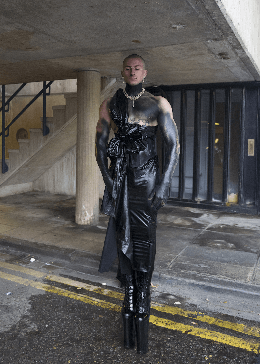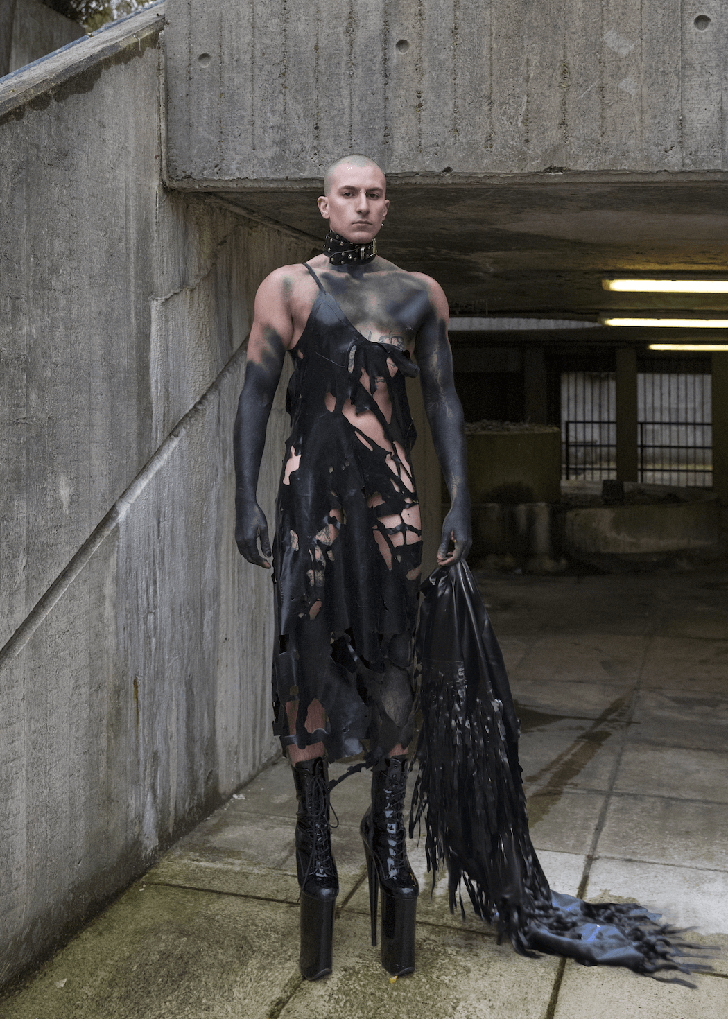 Working only with black latex, ‘Pandemic’ is inspired by the virus infecting routine life. Producing organic forms from industrial materials, FCLX questions the dark necessity of the clash with nature, brought by the unholy success of humanity. An attempt to be remedied by a synthetic skin, only to be torn by the threats created through deadly infection and overpopulation.