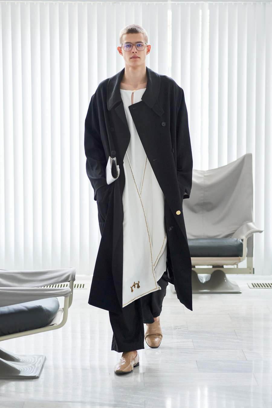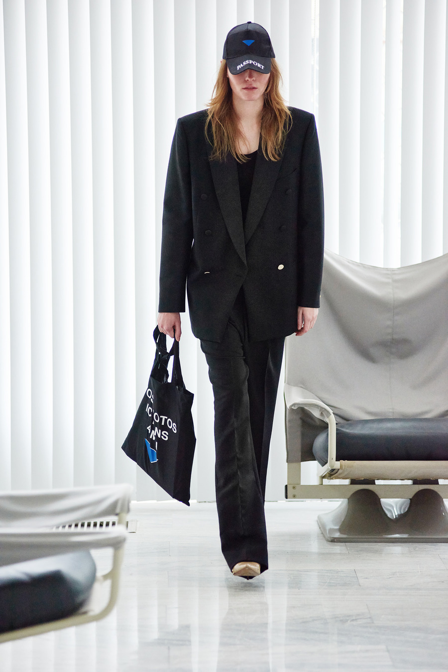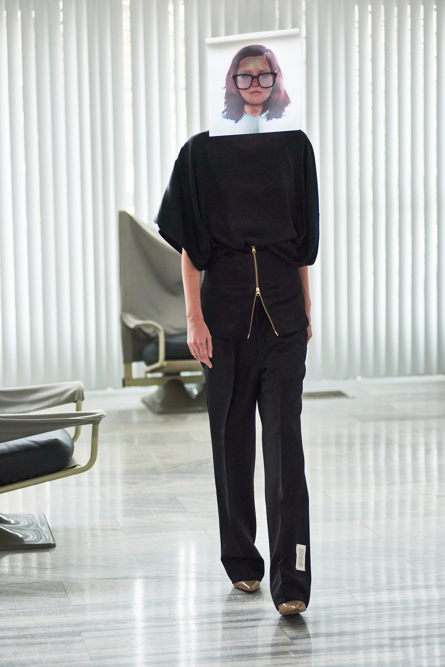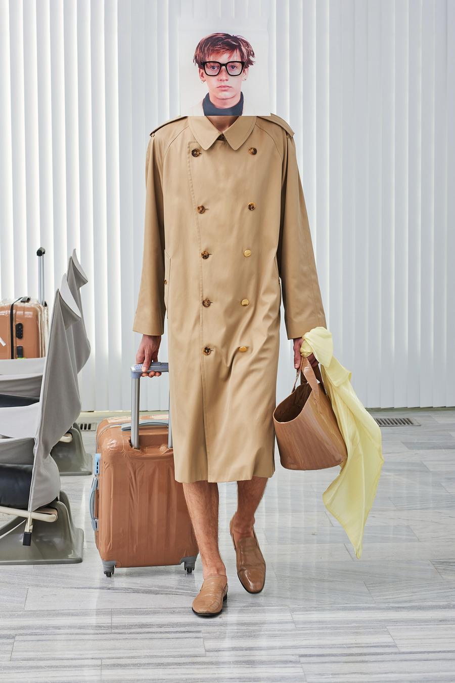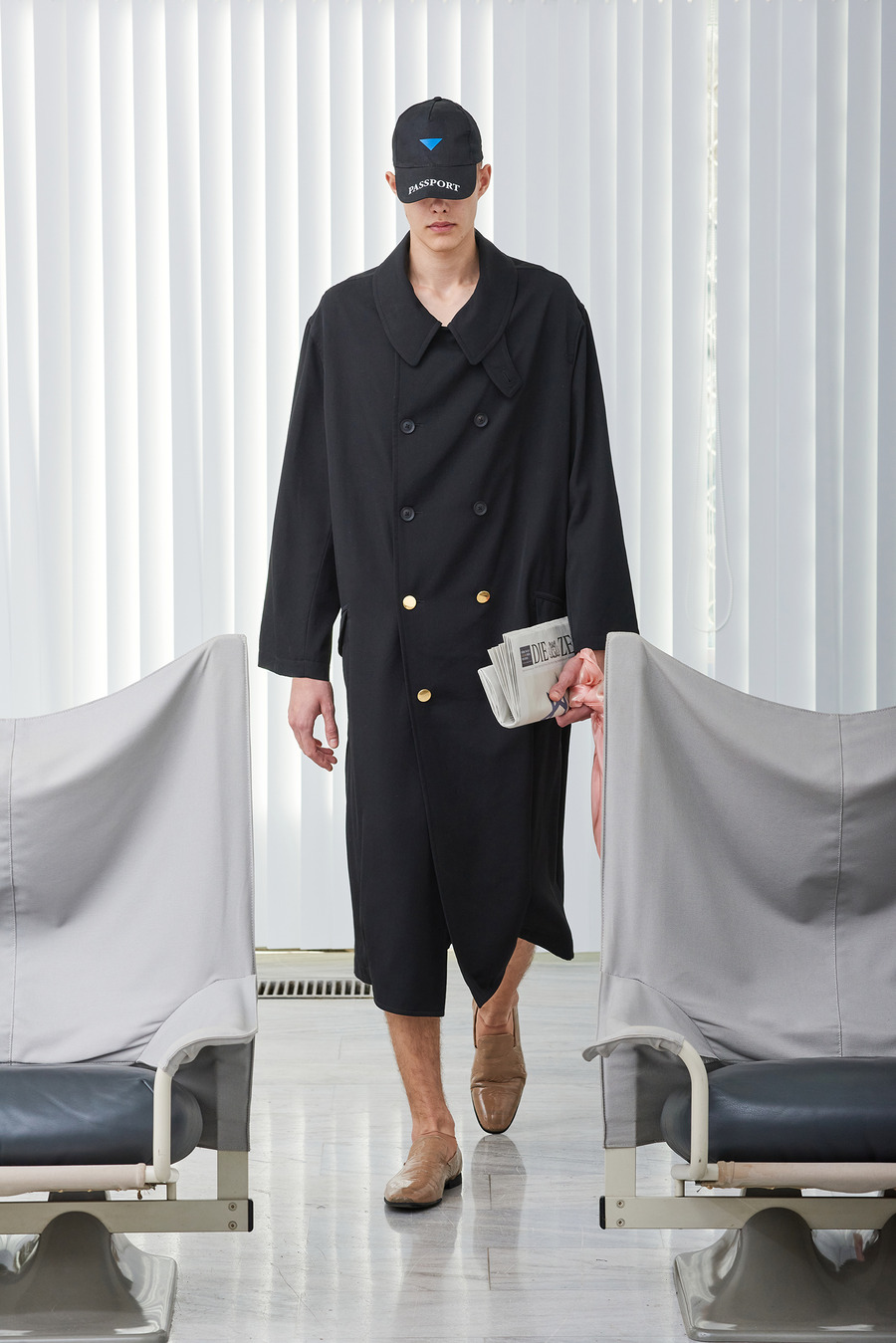 In a bold departure from traditional norms, the collection embraces elements reminiscent of passport photo booths. With striking stripes and captivating prints, Frentzos infuses a clear graphic mood into his designs, creating a visual spectacle that demands attention.