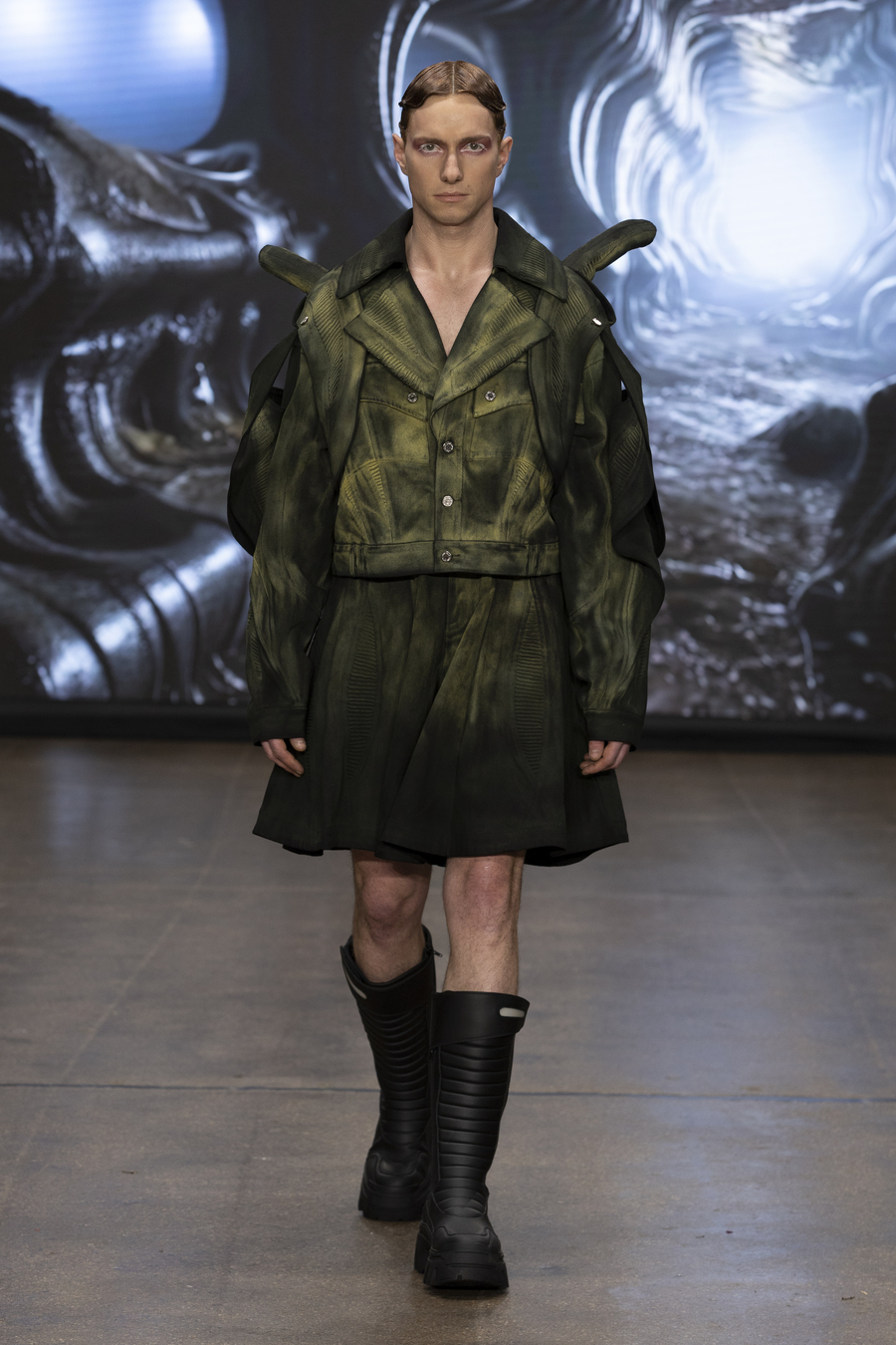 Fashion enthusiasts witnessed a fashion experience that was out of this world! Hong Kong’s very own design visionary, Angus Tsui, debuted his latest collection, “GIGER Vol. 2,” at London Fashion Week F/W25. As part of the Fashion Hong Kong showcase, Tsui served up a jaw-dropping mix of sustainability, sci-fi aesthetics, and cutting-edge innovation—all while paying homage to the legendary H.R. Giger.