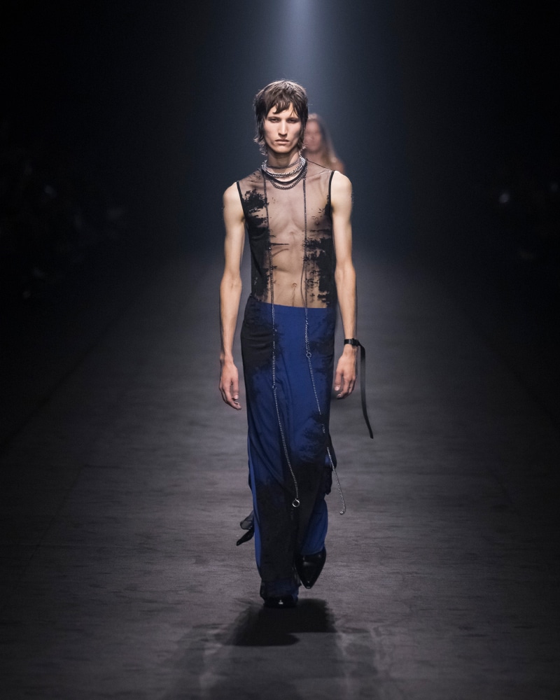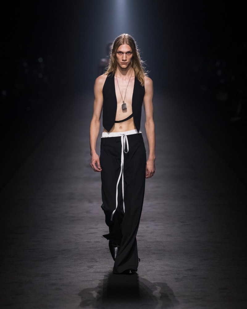 Through captivating visuals, one could perceive how Stefano Gallici meticulously delved into Ann Demeulemeester’s rich heritage, unravelling its codes and reimagining them with his unique touch, all while preserving their essence. The intertwining identities of both designers were harmoniously discernible—a truly commendable feat.