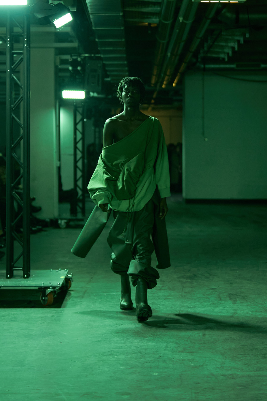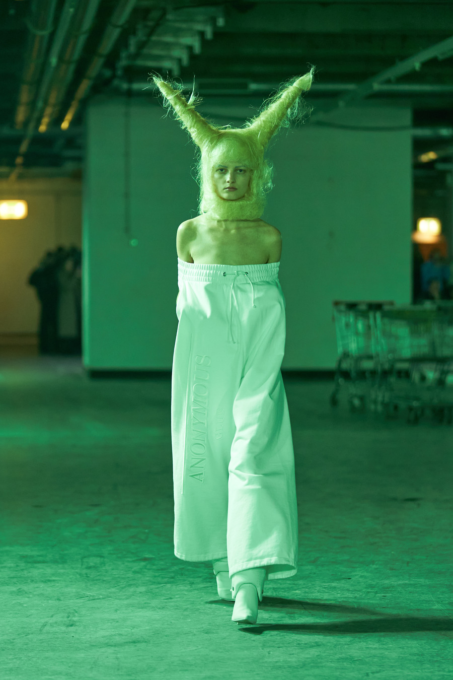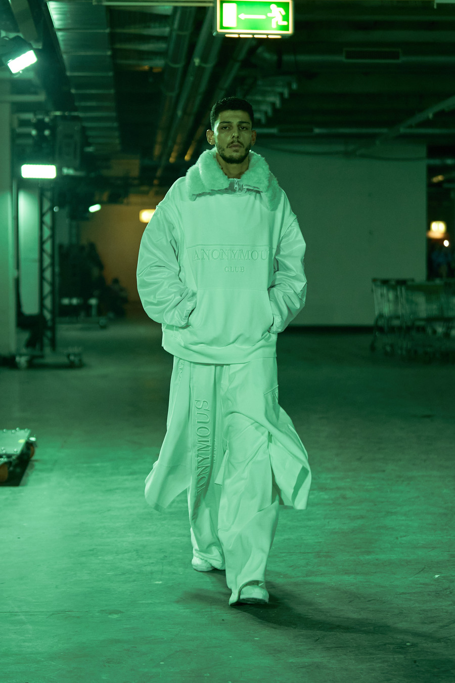 In an electrifying showcase that stood out as our top pick from the Intervention section by Reference Studios during Berlin Fashion Week, the New York powerhouse Anonymous Club seized Monday night with a spectacle of sartorial rebellion. As with Gerrit Jacob and back2back, this show was part of the pioneering new Intervention lineup. Anonymous Club, the brainchild of Shayne Oliver and the cutting-edge innovation arm of the Shayne Oliver Group®, delivered a masterclass in unfettered creativity.