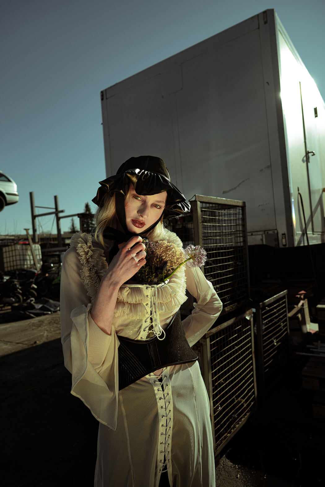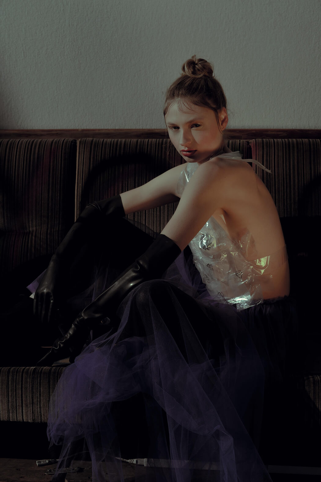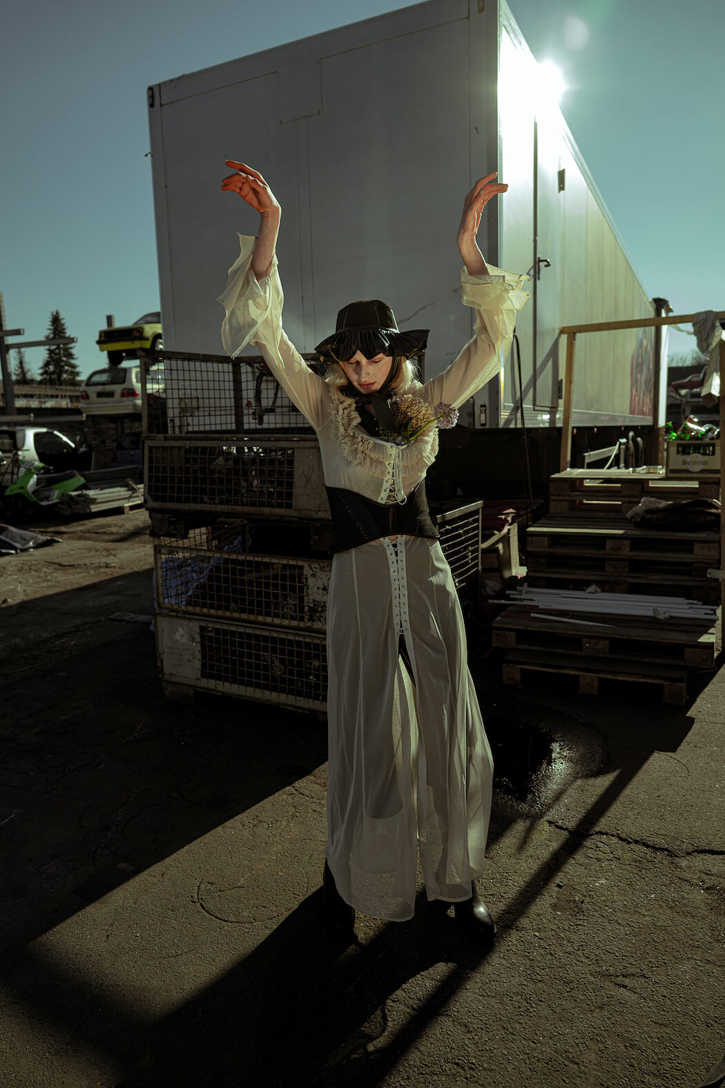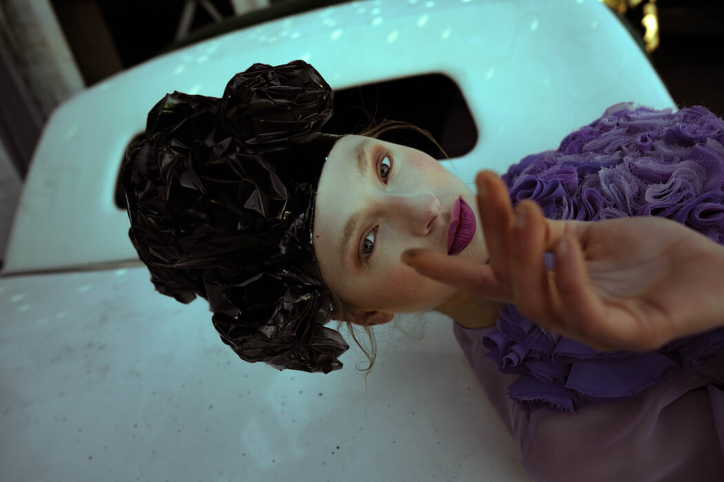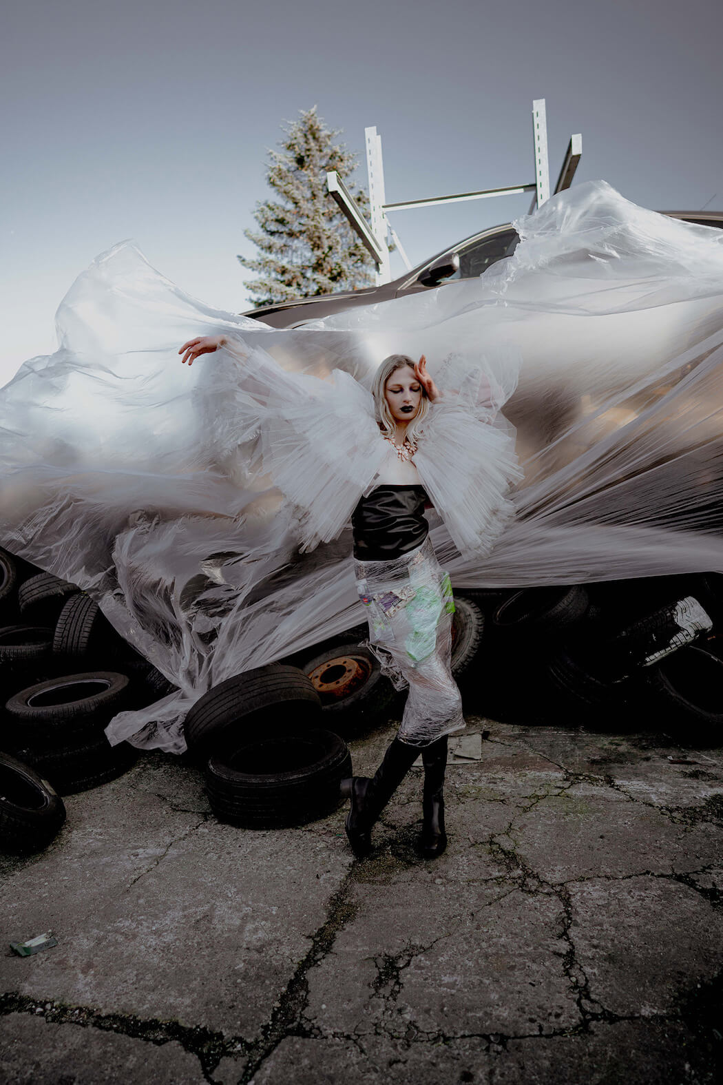 A KALTBLUT exclusive. Photography by Mona Morali. Model is Alwine Vogel signed at Her Management. Styling by Chiara Bottin. Hair and Make up by Anna Müllers. Brands are Ariana Krasniqi, Laura Marterer, Manilowa, Miu Miu, Nanushka, Off White, Prada, Zara .
