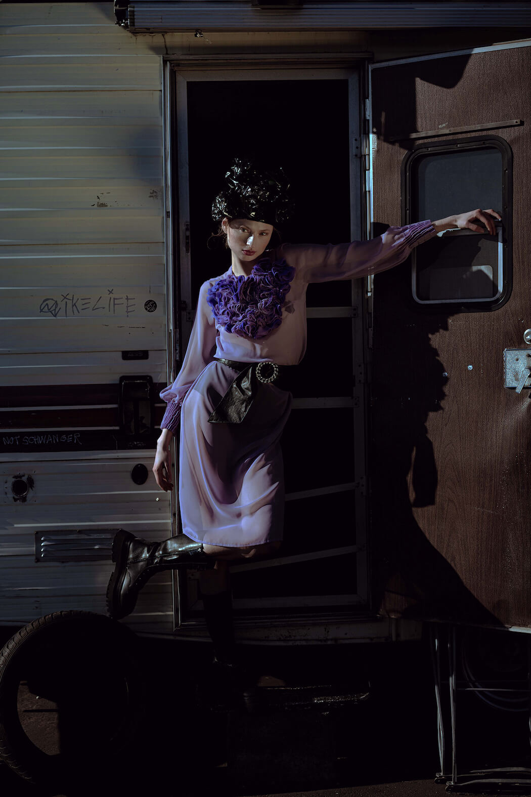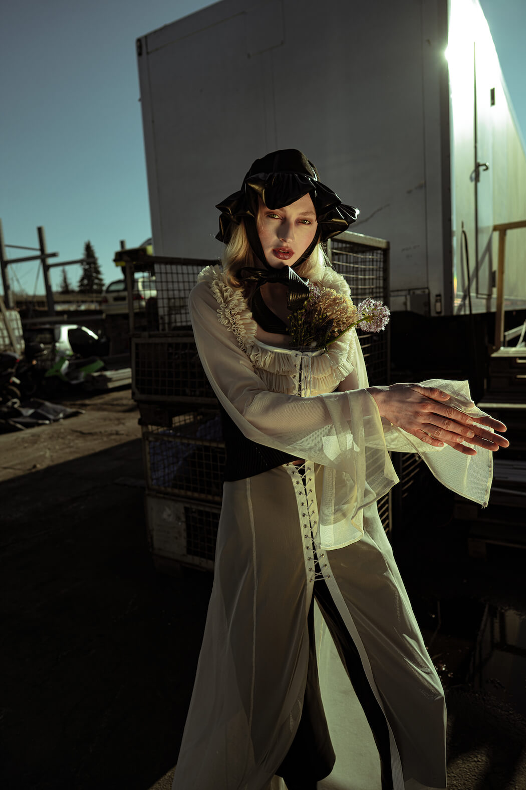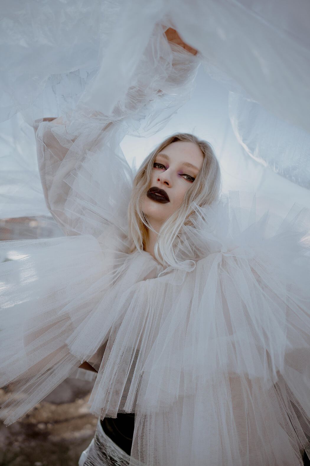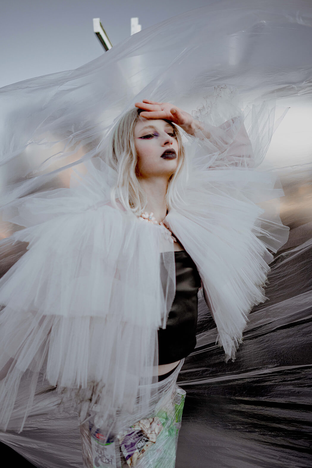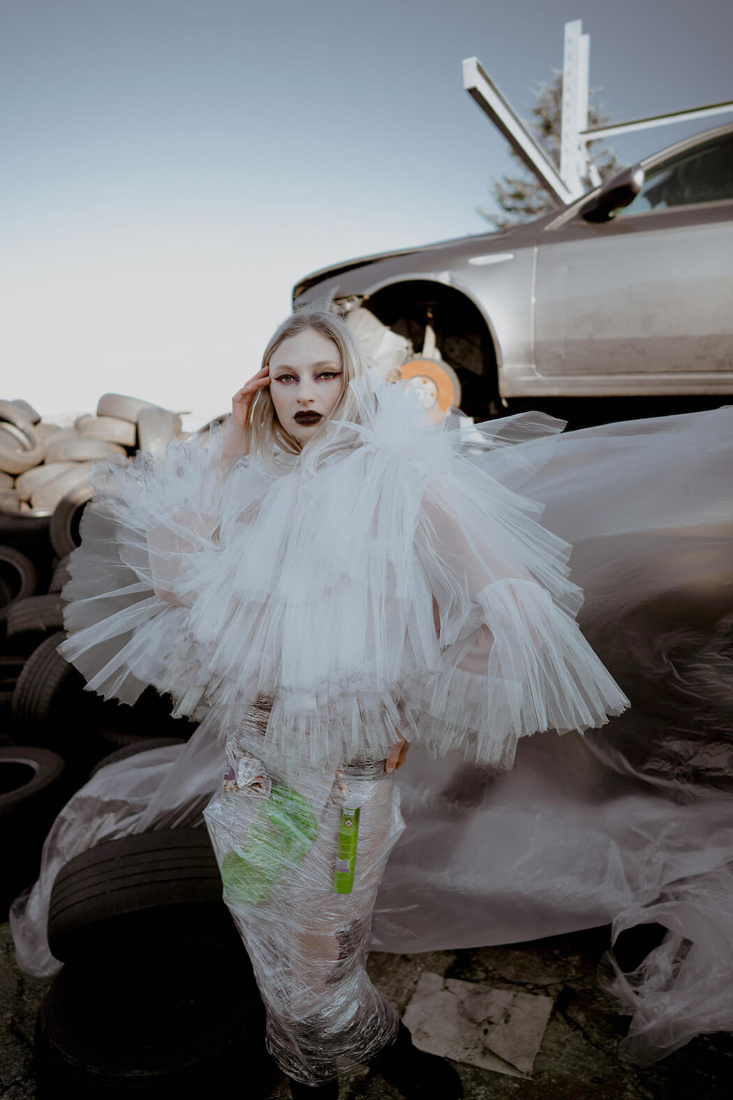 A KALTBLUT exclusive. Photography by Mona Morali. Model is Alwine Vogel signed at Her Management. Styling by Chiara Bottin. Hair and Make up by Anna Müllers. Brands are Ariana Krasniqi, Laura Marterer, Manilowa, Miu Miu, Nanushka, Off White, Prada, Zara .