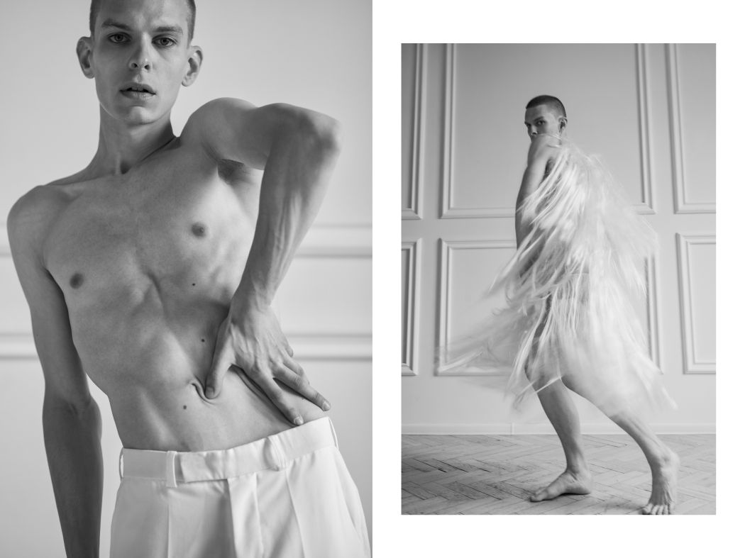 A KALTBLUT exclusive. Photography and styling by Mikołaj Perełkiewicz. Model is Anton Sluka. All fashion by Magdalena Wilk – Dryło. “A photo series I made with my beautiful friend Anton. He is a model and dancer. He posed for this story about masculinity, about having a strong feminine part and about being proud of having it.” says the photographer.