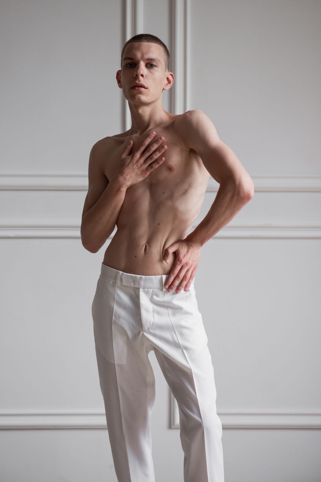 A KALTBLUT exclusive. Photography and styling by Mikołaj Perełkiewicz. Model is Anton Sluka. All fashion by Magdalena Wilk – Dryło. “A photo series I made with my beautiful friend Anton. He is a model and dancer. He posed for this story about masculinity, about having a strong feminine part and about being proud of having it.” says the photographer.