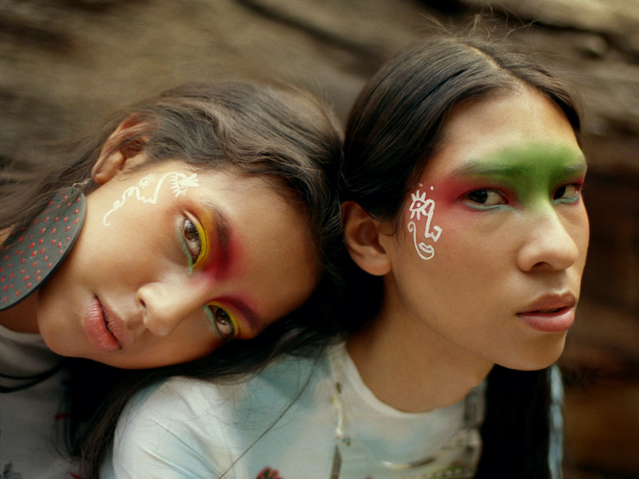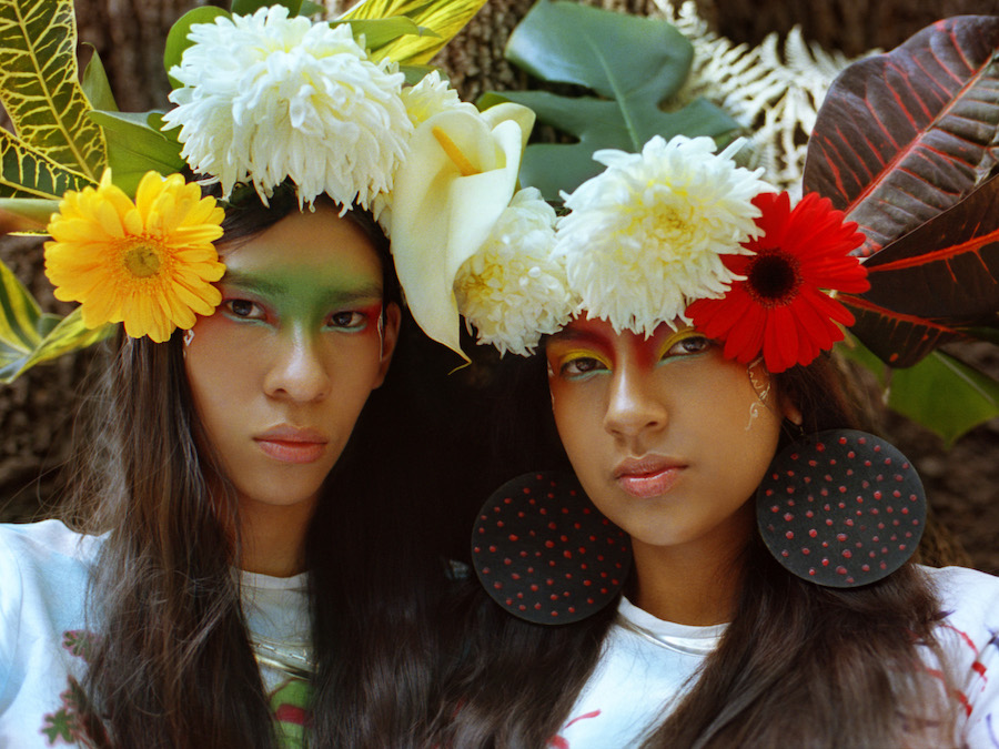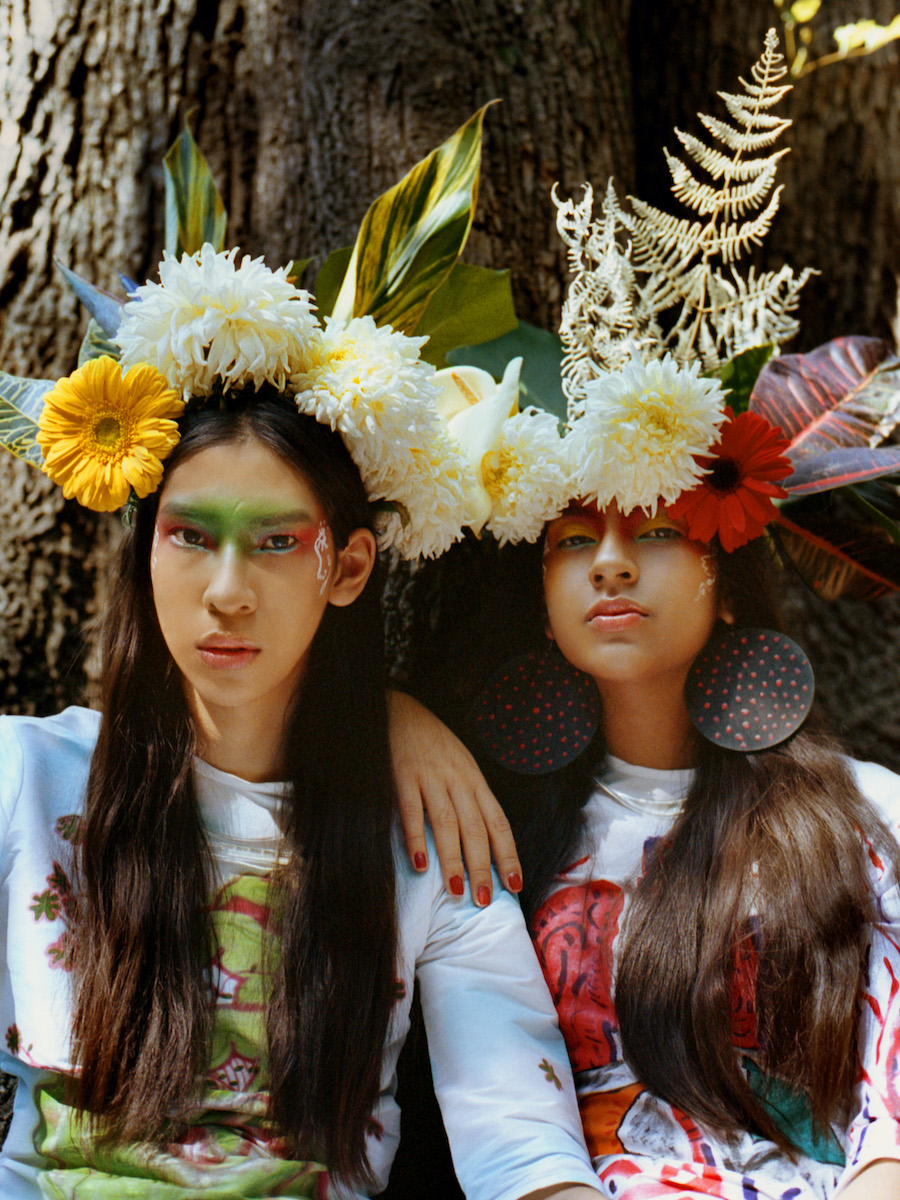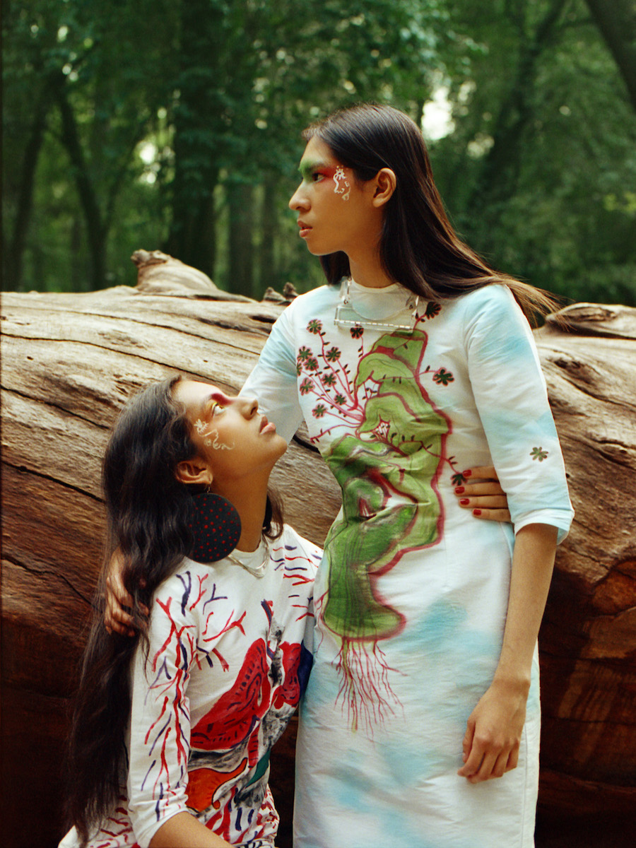 Dresses designed by El Llamafante / Instagram: @elllamafante and painted by Banquer / Instagram: @banquer_ & Elisa Malo / Instagram: @_elisamalo_ as part of Las Costumistas collective / Instagram: @las_costumistas / Accessories by Vintage HOE / Instagram: @vintagehoestore