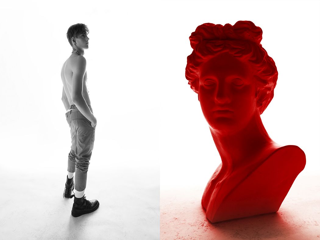 A KALTBLUT exclusive menswear editorial from Chile. Photography by Carlos Saavedra. Styling by Enzo Santi. Fashion by Eduardo Galleguillos, Dinamarca, Londress Wendy Pozo, Nein Werkstatt, Paco Rabanne, Mango, Forever 21, H&M, Calvin Klein, Zara, Dr. Martens. Model is Edu Rusakov @New Models Chile. Make up and hair by Cote Jorquera. “I’m Carlos Saavedra, a 21 years old fashion photographer based in Santiago de Chile, former student of Central Saint Martins London and Fotodesign Chile. I like to express about my personality through the fashion photography, i consider my self as a sensitive person and i think that people can see that in my photos. In this opportunity, we worked with a russian model, Edu Rusakov of New Models Chile, with Cote Jorquera at make up and hair and Enzo Santi at styling.”