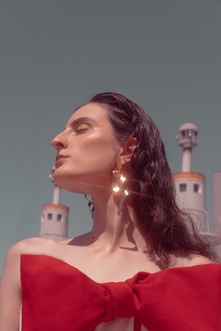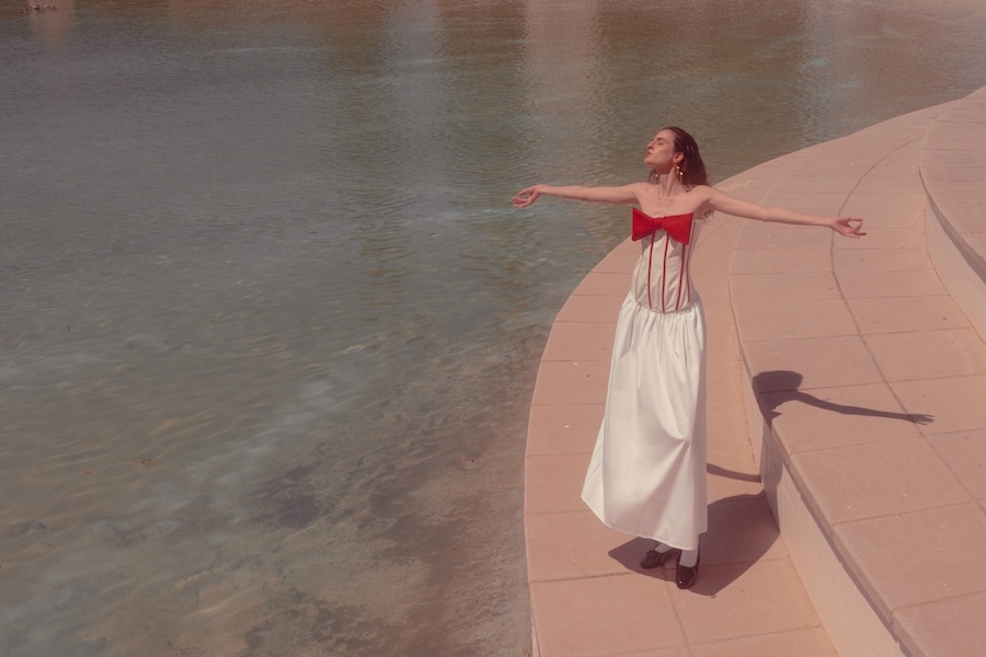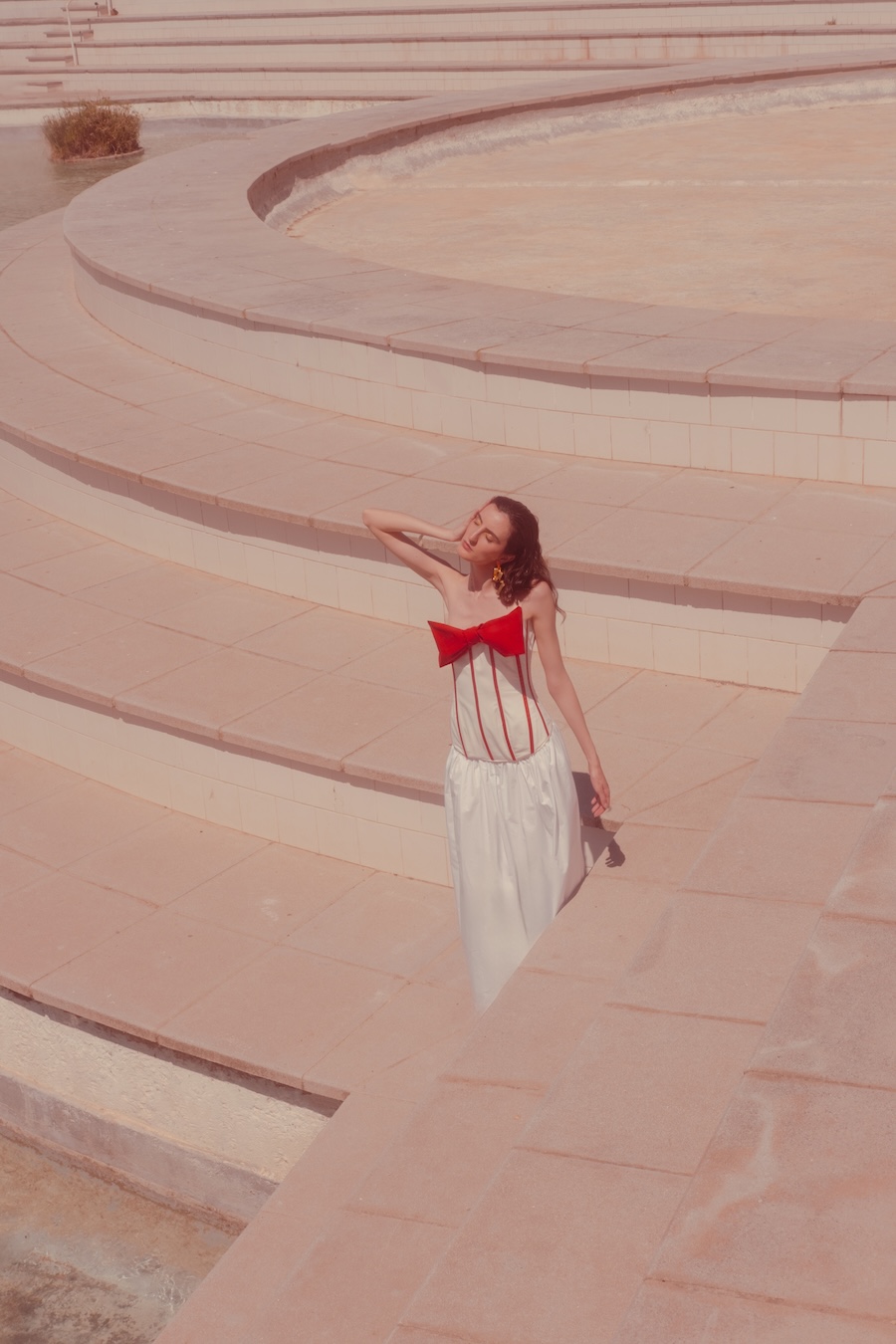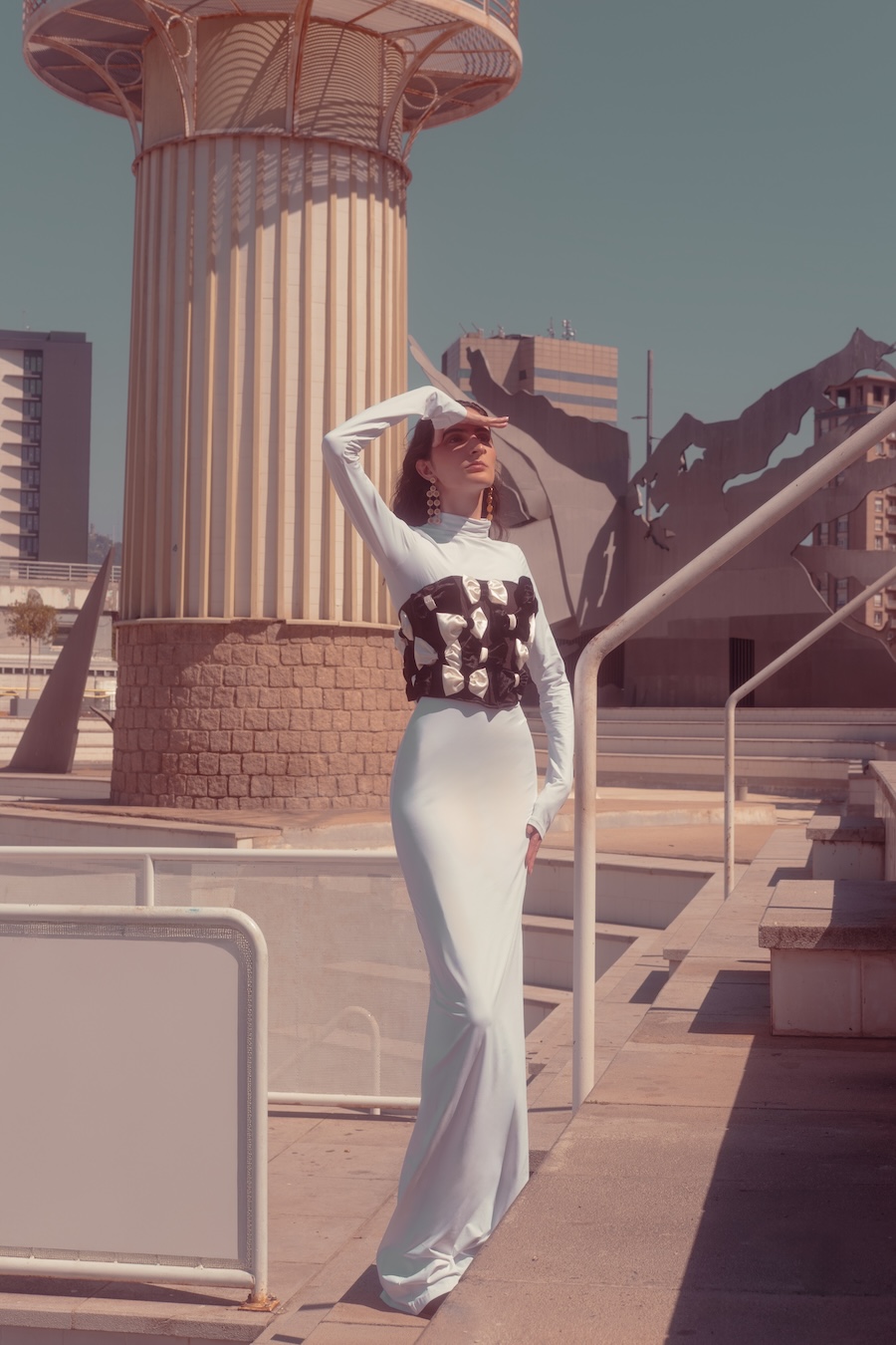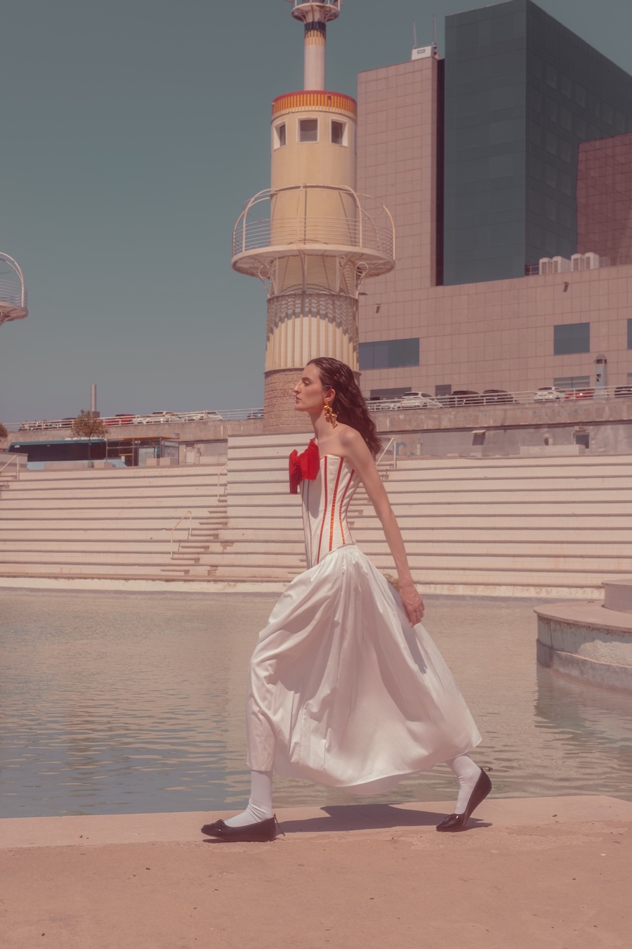 The concept is built around bold, extravagant silhouettes and experimental layering, opening a visual dialogue between fluidity and structure. Each look plays with volume, texture, and proportion, inviting the viewer to reimagine everyday spaces as stages for expressive fashion narratives. The series strikes a balance between whimsy and strength, presenting clothing not merely as garments but as sculptural forms that interact with water, stone, and greenery. It is a celebration of fashion as both art and performance—where each piece transforms into an ephemeral monument that inhabits and redefines its surroundings.