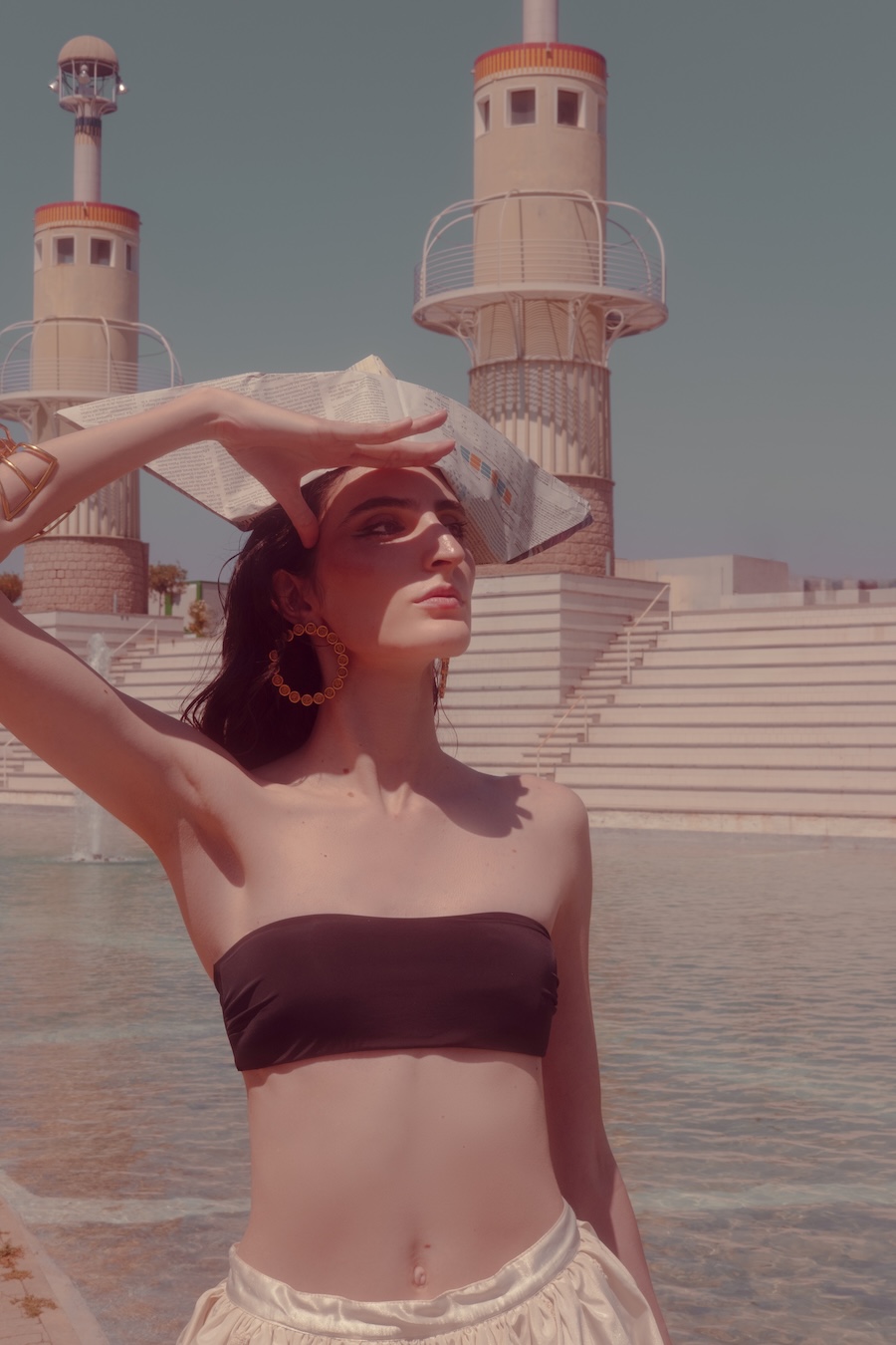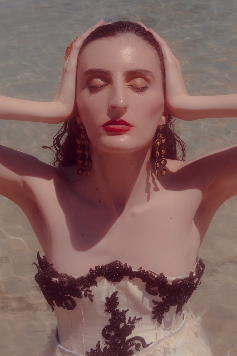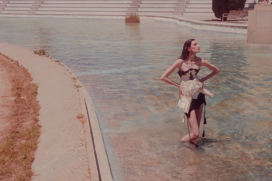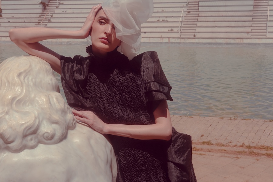 A KALTBLUT exclusive. Photography by Jose Luis Sanchez. Styling by Fernanda Garcia and Carlos Baños. The model is Aina Recolons. Makeup and hair by Chris. Fashion by Bibian Blue, Daniela Millán, Black book the label, Ingrid Mako, Najjat Harb. Refers to a utopian place, idealised and full of natural beauty. Often used in art and literature to convey aesthetic perfection and an almost dreamlike world.