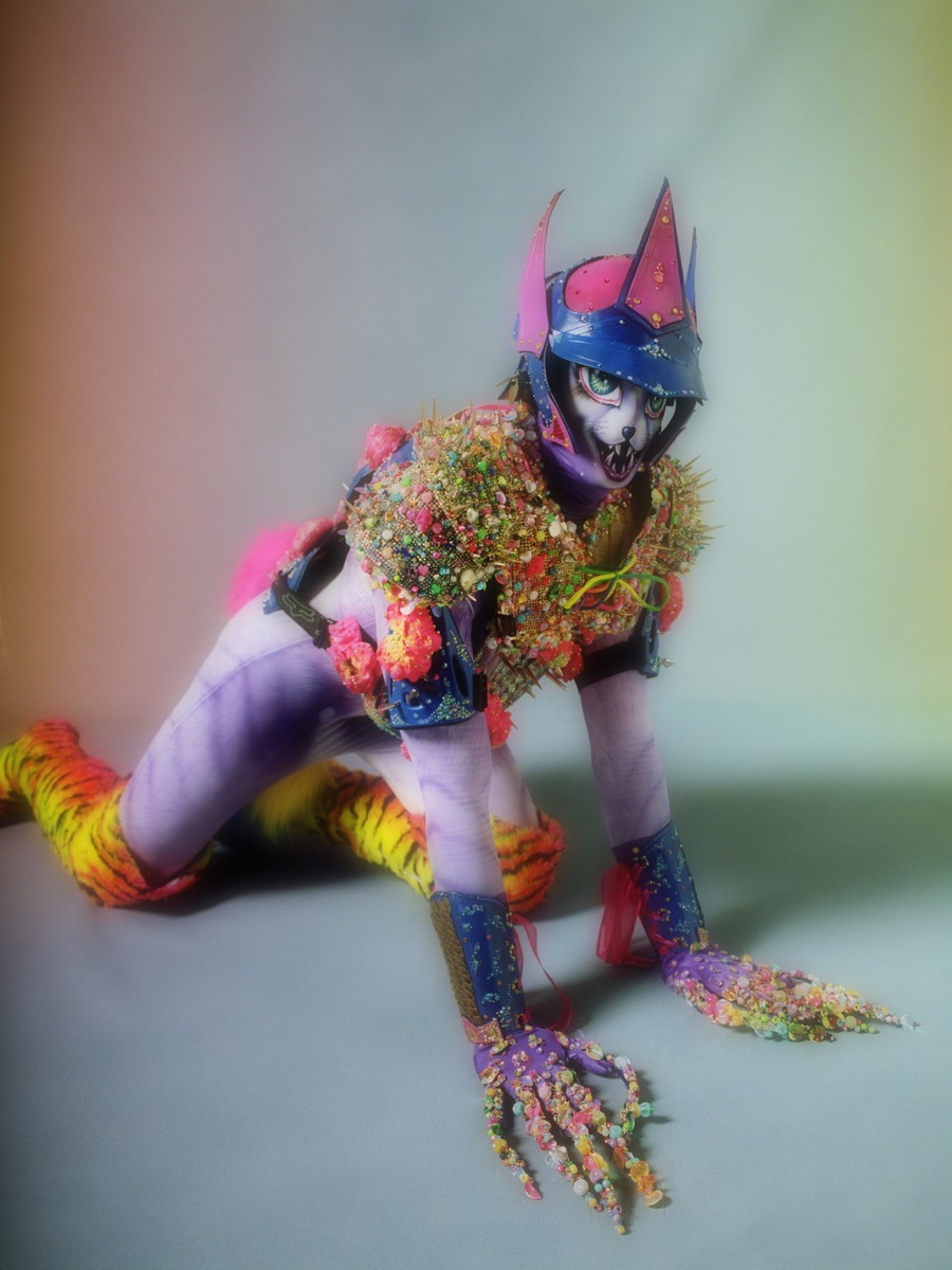 A KALTBLUT exclusive. Photography by Katie Burdon. All clothing and props are designed, conceptualized, and styled by Jonni Boi. “The images and characters I create express a sense of freedom. They not only allow me to share my own narrative but also tell the stories of those who helped me along the way. My work is rooted in my struggles as a queer person and the inspirations I draw from my community. My sole aim is to share that freedom with as many people as possible. The essence of Jonni Boi lies in a desire to spread joy, rebel, and live authentically and unapologetically. Jonni Boi is a platform that encourages fantastical self-expression.