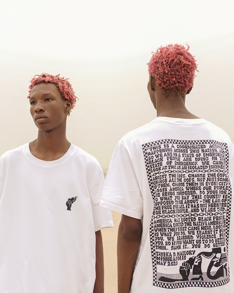 With our clothes, our action and our voice. Our Solidarity Series is an ongoing series of charity T-Shirts to fund those on the frontlines of the fight for a better world, bring activists together, and spread their messages. This first edition is a collaboration with US Activist, Tamika D Mallory, featuring the ‘Speech of a generation’ she gave after the killing of George Floyd. 100% of the funds raised to support her charity, Until Freedom. Lawyers, Activists and Organizers fighting against systemic racial injustice throughout America.”