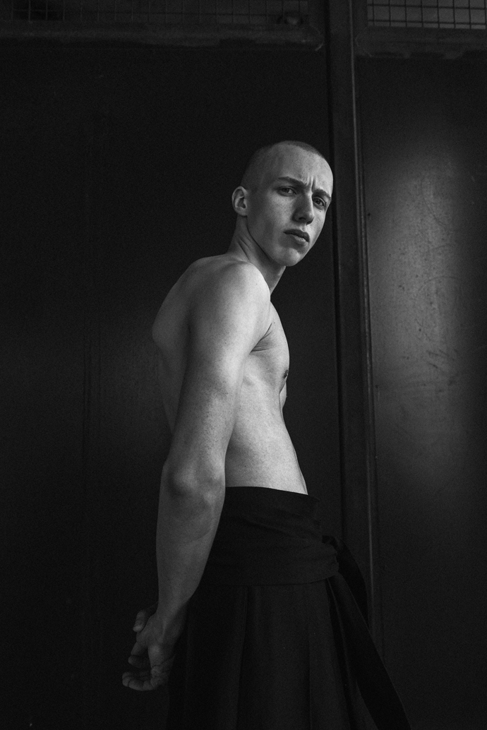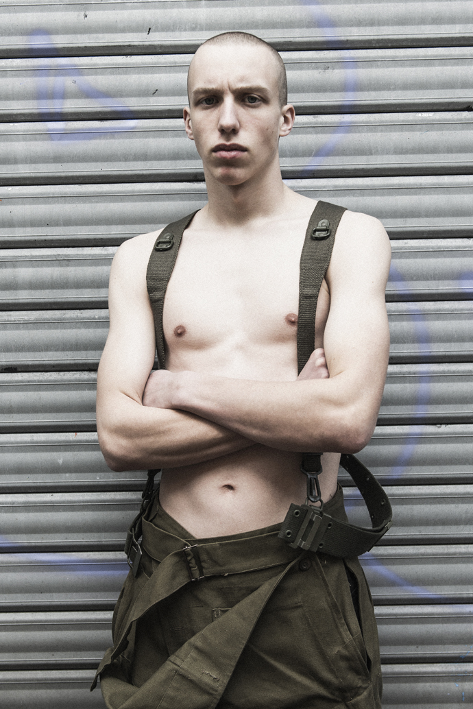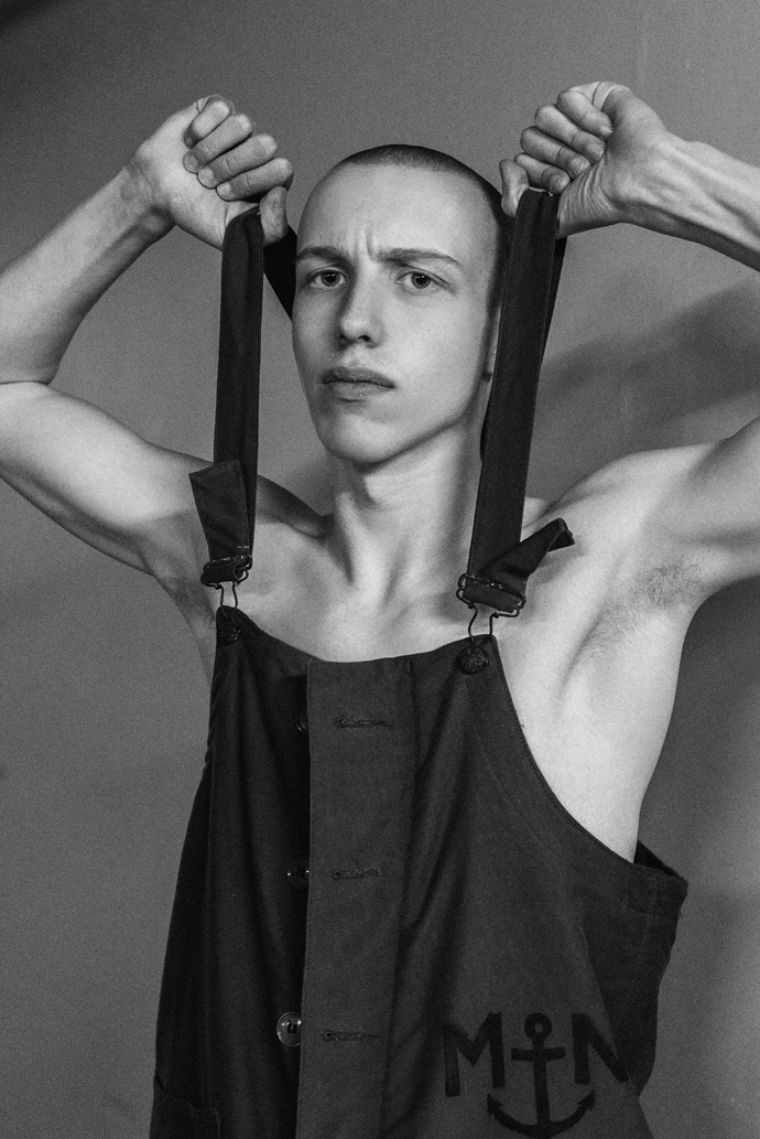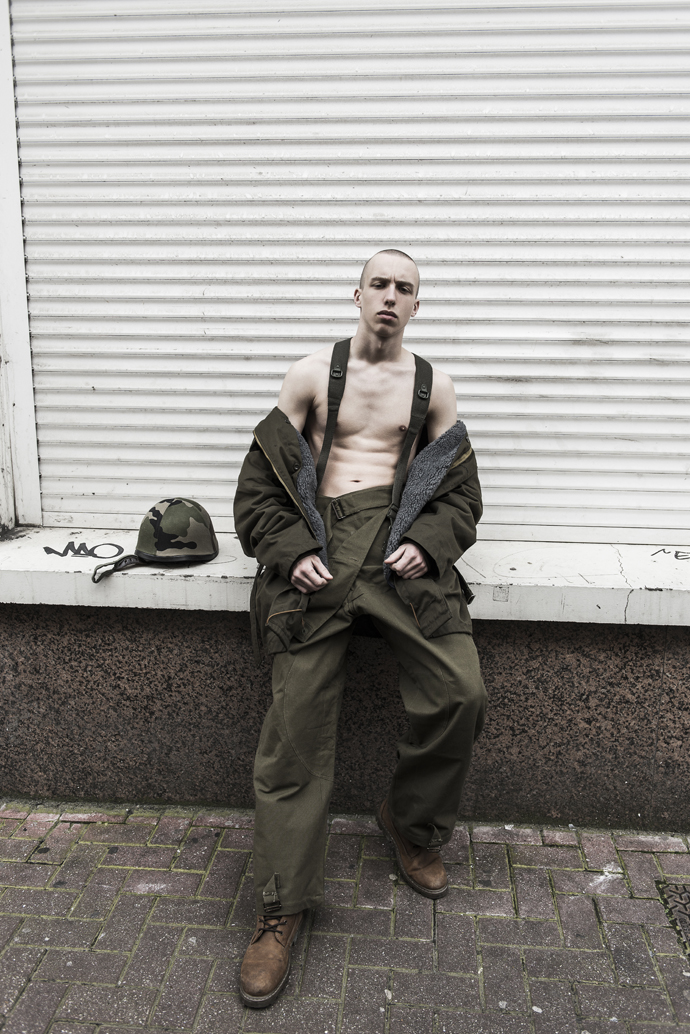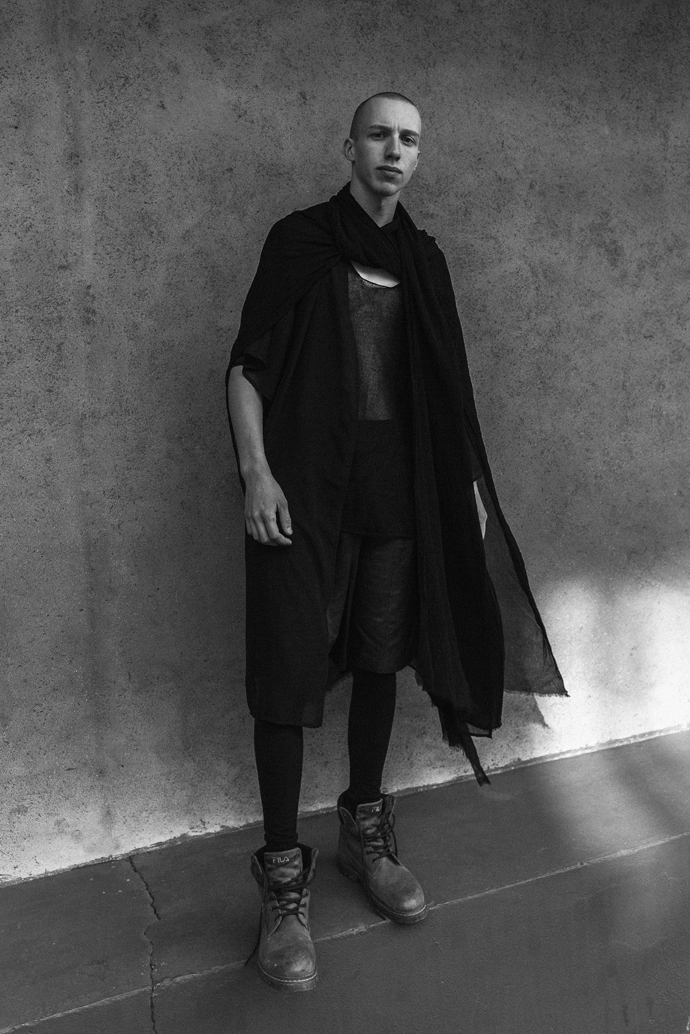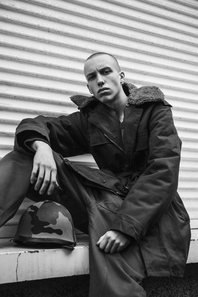 A KALTBLUT exclusive menswear editorial. Photography by Clément Decoster. Model is new face Arthur B. Styling by Geoffrey Delchambre. A designer of haute couture and make everyday classics clothes, he created all the look & on others he bought used clothes that he modified on his side, there is no brand of clothing these are all these personal creations. “My name is Clément Decoster, I live in Lille, in the north of France, near Lille. I am freelance photographer for 5 years. I have an artistic school career in drawing, painting, art history, the entire graphic chain leading from image to print. it’s a common set that serves me in my work. I find my inspirations through different worlds such as fashion, skateboarding, streetwear, rap, sports, cinema and music. My photo activity is the image of my inspirations, I have the chance to live my hobby and my passions every day. I have always had an attraction for originality, through less common styles such as medium hardcore, which is my source of inspiration and motivation to date. With time, the fashion picture is my favorite activity, it appeared to me and I find a source of inspiration, a creativity constantly that allows me to have fun. I also enjoy the lifestyle with models and concert photography. These different environments meet, each environment has its audience and it allows me to continually meet new people, new heads to fill my pokedex.”