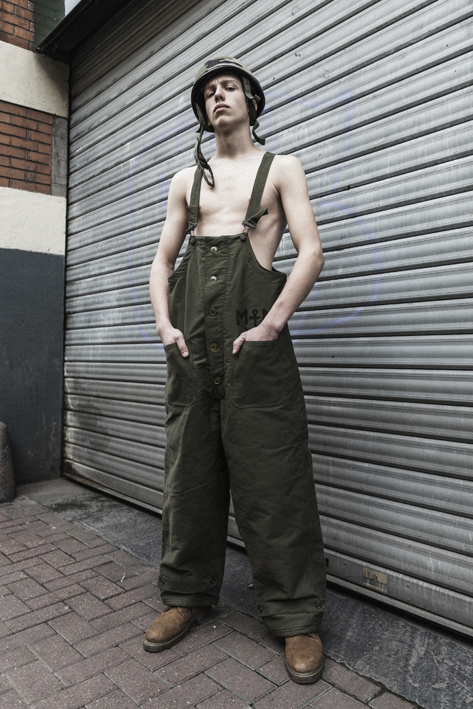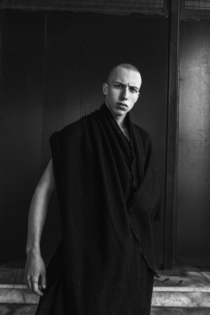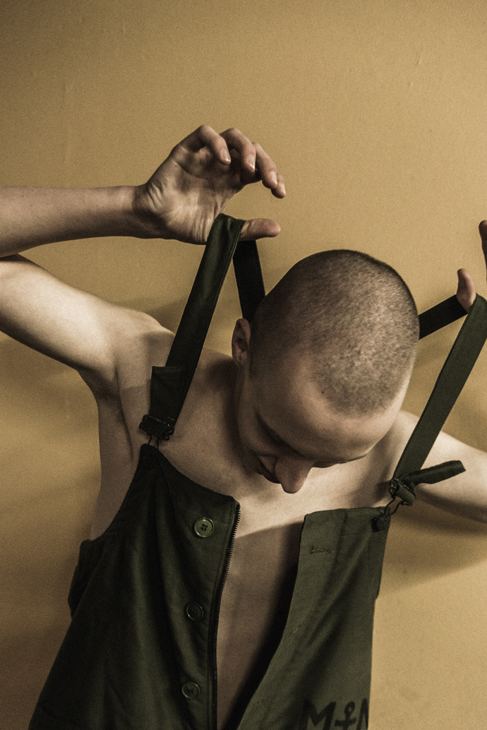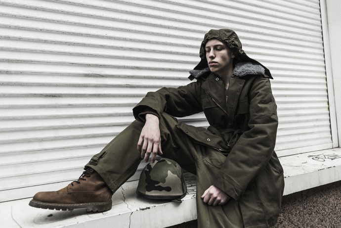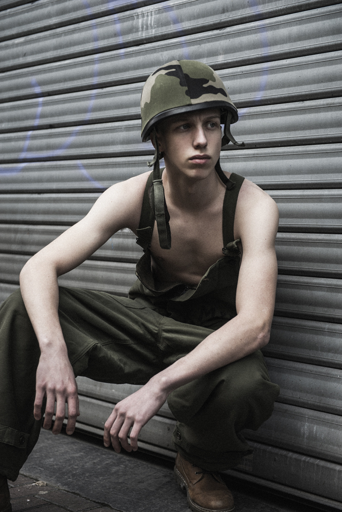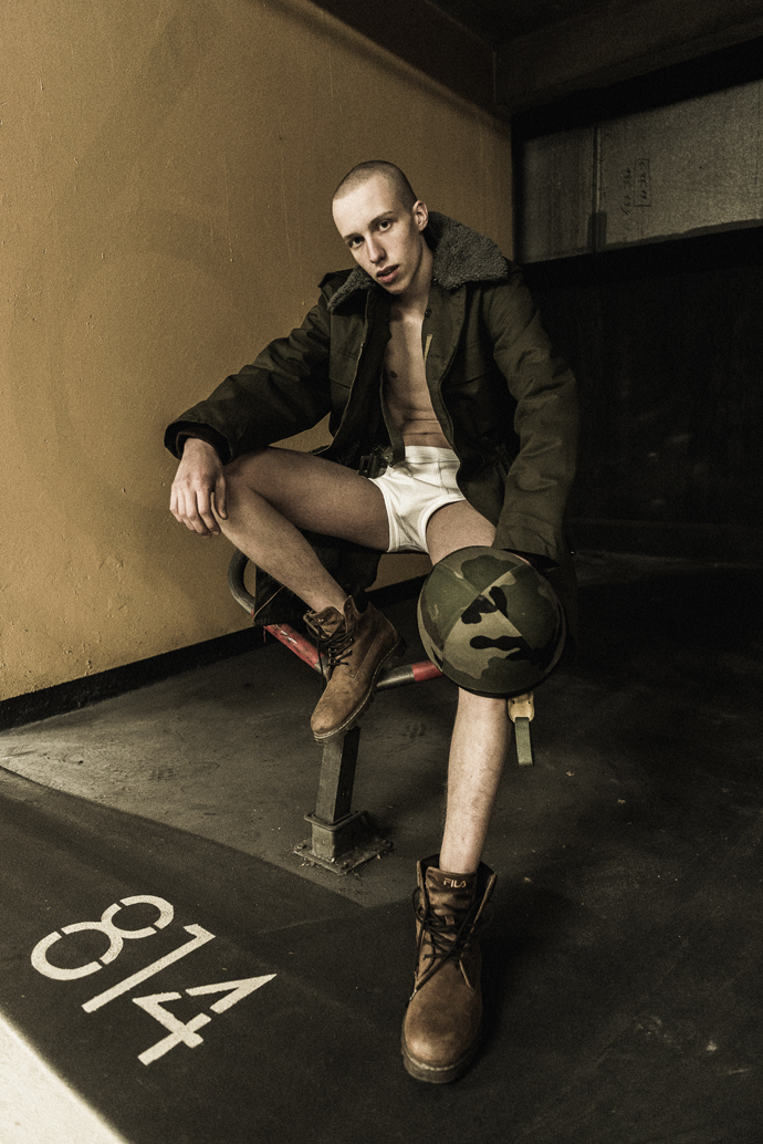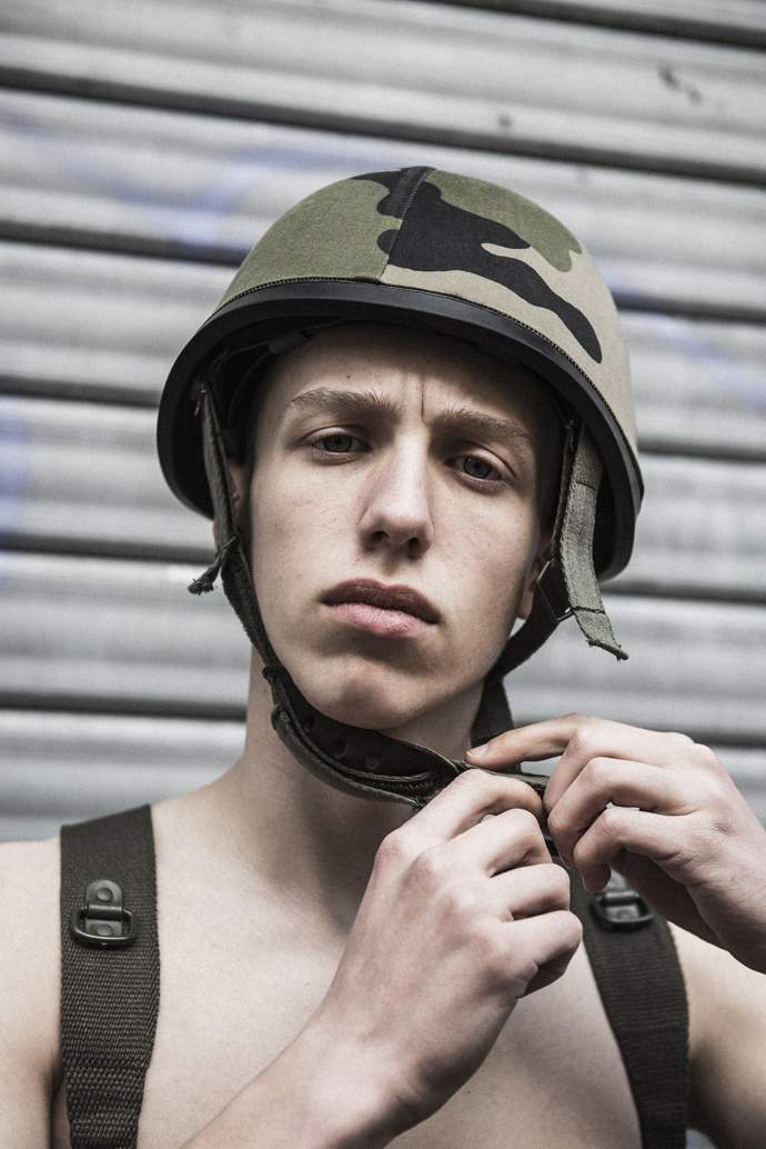 A KALTBLUT exclusive menswear editorial. Photography by Clément Decoster. Model is new face Arthur B. Styling by Geoffrey Delchambre. A designer of haute couture and make everyday classics clothes, he created all the look & on others he bought used clothes that he modified on his side, there is no brand of clothing these are all these personal creations. “My name is Clément Decoster, I live in Lille, in the north of France, near Lille. I am freelance photographer for 5 years. I have an artistic school career in drawing, painting, art history, the entire graphic chain leading from image to print. it’s a common set that serves me in my work. I find my inspirations through different worlds such as fashion, skateboarding, streetwear, rap, sports, cinema and music. My photo activity is the image of my inspirations, I have the chance to live my hobby and my passions every day. I have always had an attraction for originality, through less common styles such as medium hardcore, which is my source of inspiration and motivation to date. With time, the fashion picture is my favorite activity, it appeared to me and I find a source of inspiration, a creativity constantly that allows me to have fun. I also enjoy the lifestyle with models and concert photography. These different environments meet, each environment has its audience and it allows me to continually meet new people, new heads to fill my pokedex.”