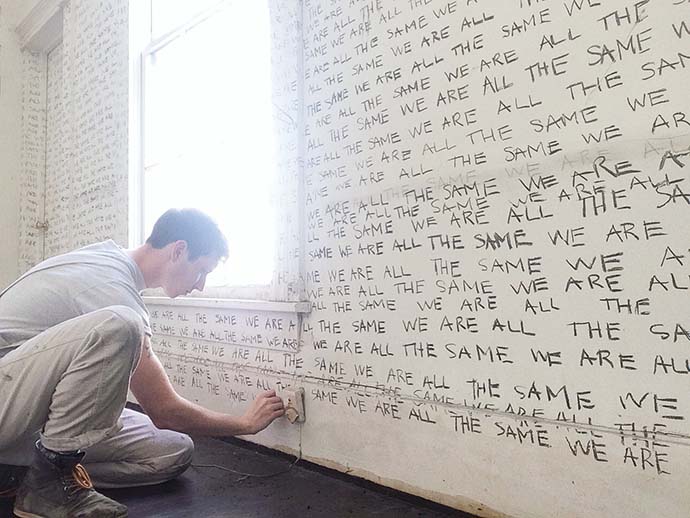Most of my work develops from a place of self-acceptance. As a child, I developed a relationship with God. I was curious and full of wonder. God was my escape. My safe place. I felt alone and isolated knowing that I was attracted to other guys growing up, so God was someone I told my secrets and still felt love and acceptance. I came out in college. I started to be rejected by other people who believed in God. The tension and uncertainty that came from this divide is often a place I go to make my work. Recently, I am drawn to the land. I am from Mississippi in America. The land is so beautiful here. The land has become like God to me. It provides an escape from the division that is growing politically over here. I am interested in how art can set the artist and others free even if it’s only for a few seconds. I am hoping that at the end of my life, people will see someone who struggled honestly with what it means to be human. An artist that inspires me is Lesley Dill. I love her installation, Faith and the Devil.